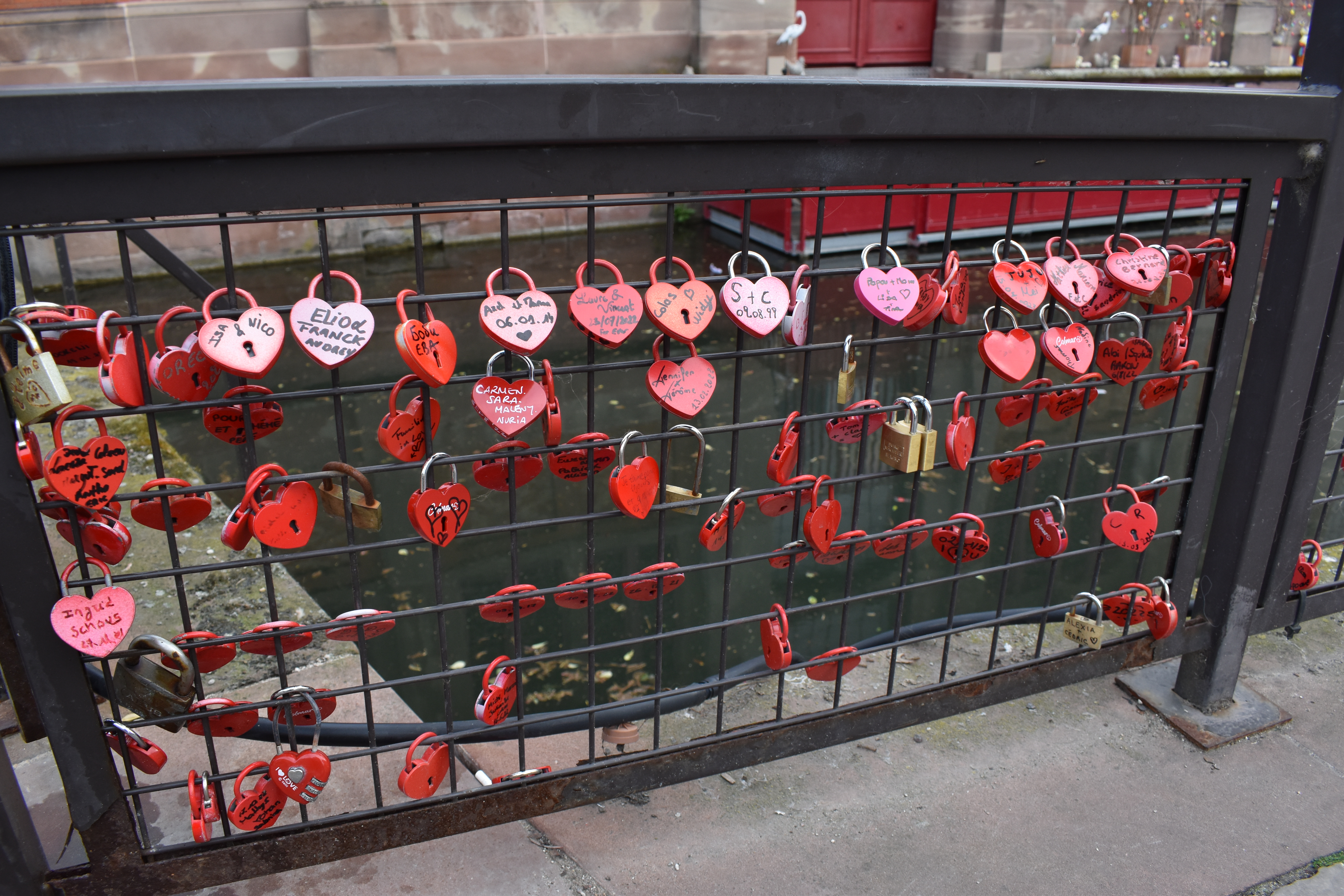 川のへりにある柵にはハート型の錠がたくさんついている。 多分ここは恋愛スポットなのだろう。