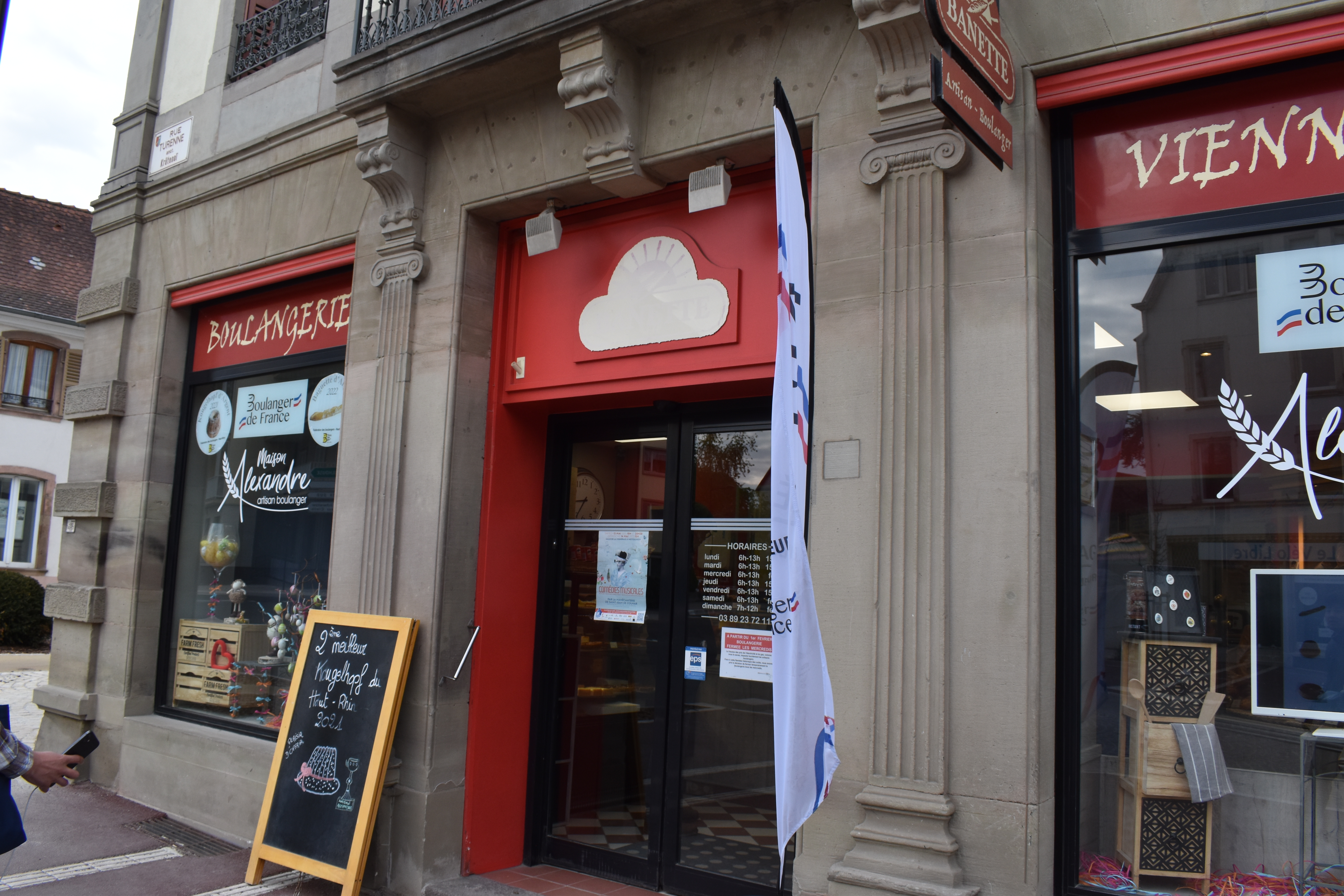 テュレンヌ通りの店を見ていると、道を歩いてきた地元のおじさんが「あそこのパン屋が開いているよ!」と話しかけてきてくれた。 というのも、フランスでは日曜日は店が閉まっていることが多く、とはいえ全て閉まっていては住民のご飯がなくなってしまうので、持ち回りで少数の店舗が営業するシステムらしいのだ。 私たちは親切なおじさんのおかげで、開いているパン屋を知ることができた。
