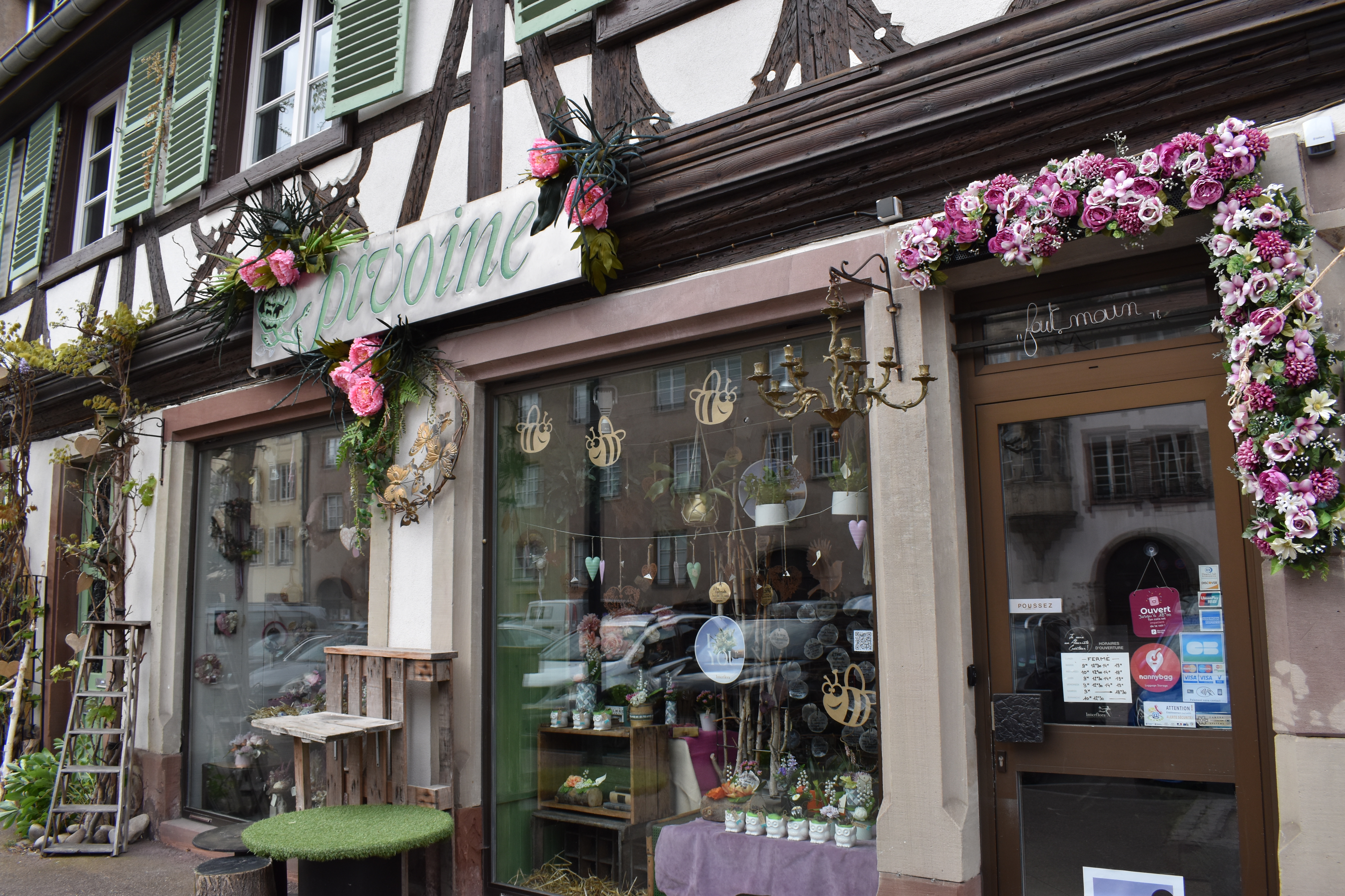帰りに通った道の脇には、窓枠に綺麗に花が飾られた家があった。
