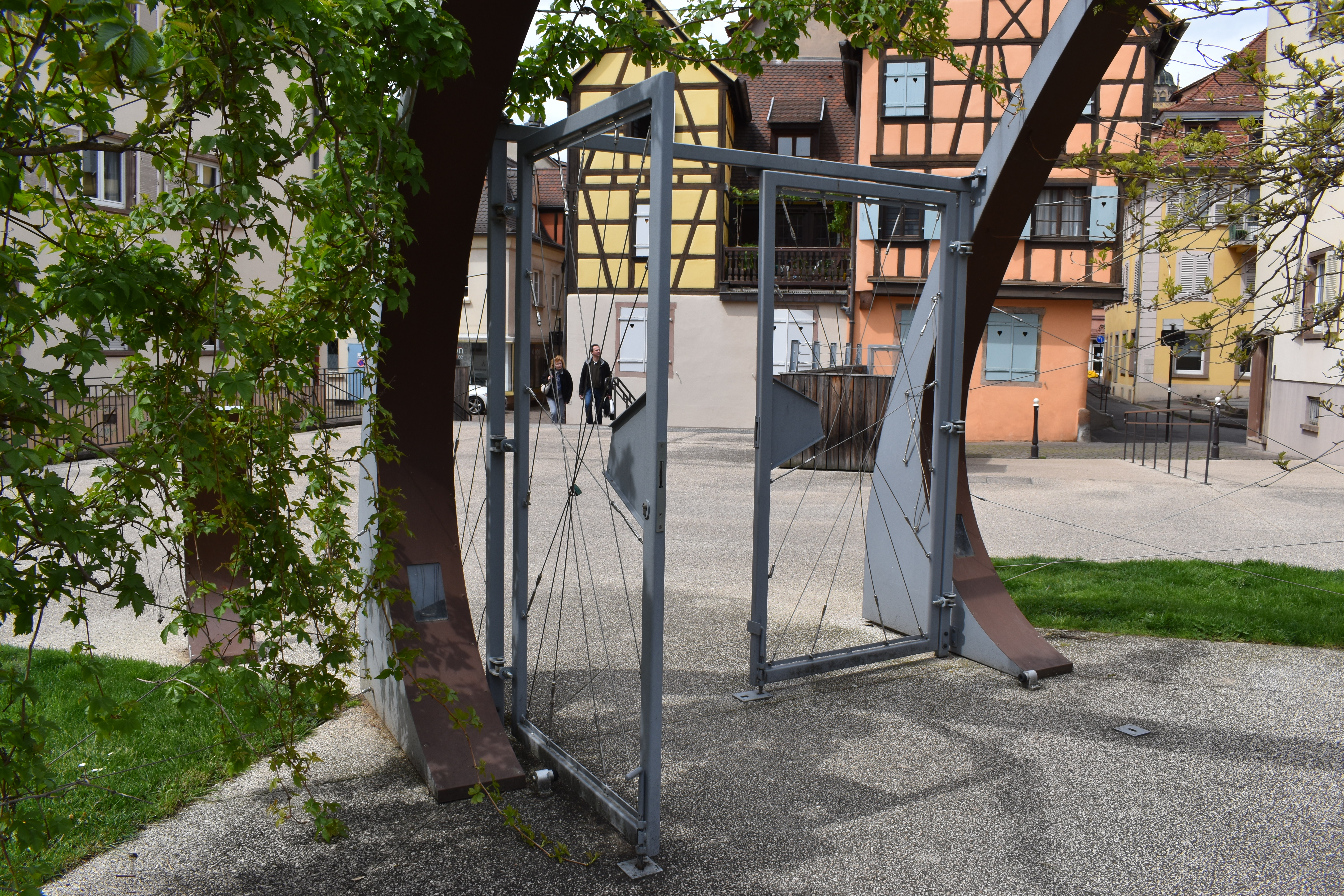 不規則にワイヤーが貼ってあるこちらの扉を私は非常に気に入った。 普通だったら格子状の網目になっているところだが、不規則にすることでまるで通り抜けられるような感覚になる。 もし豪邸を建てるようなことがあれば、入り口にこちらを設置したい。