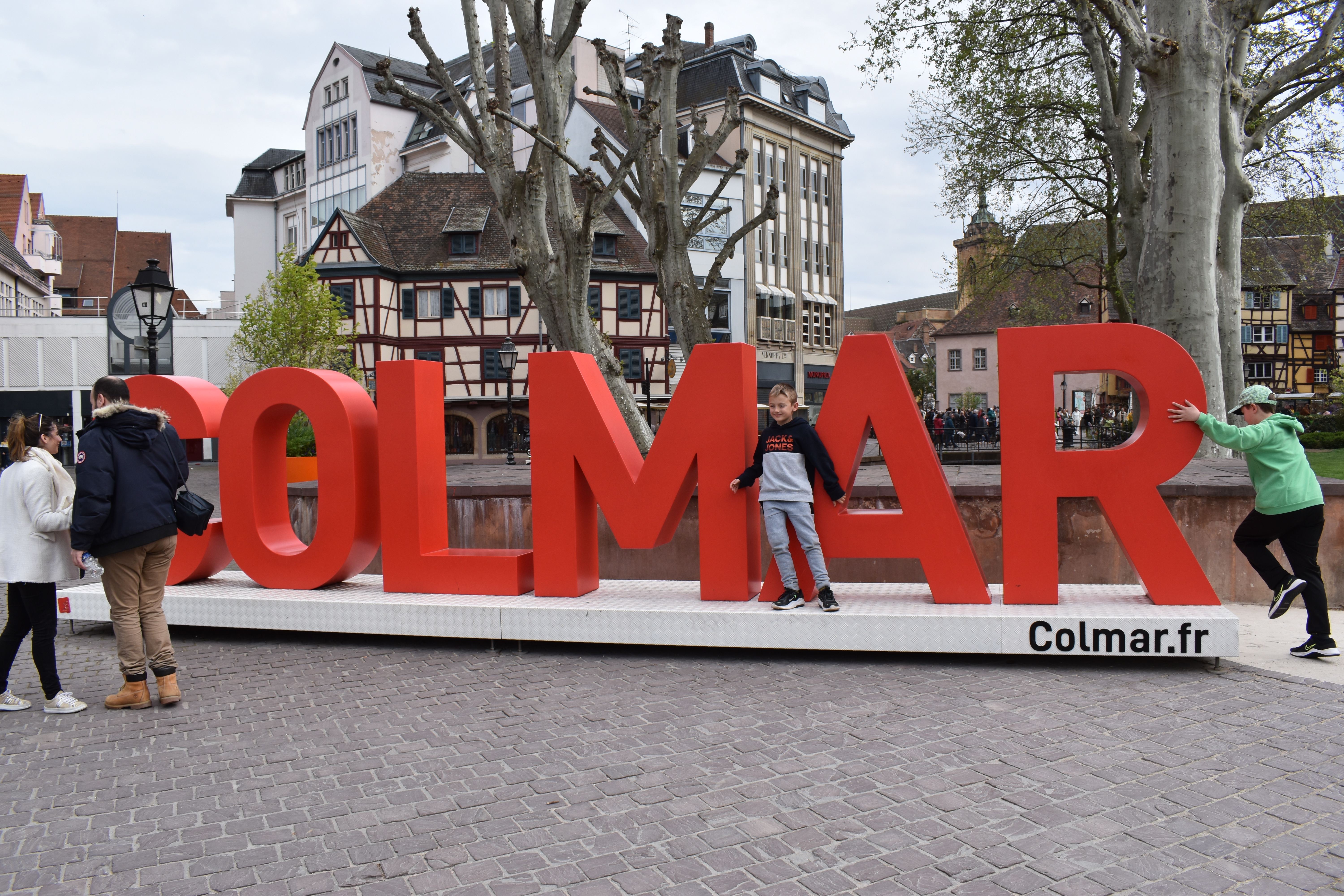 芝生エリアの横には大きなコルマールという文字のオブジェが置かれており、人々が記念撮影を行なっていた。