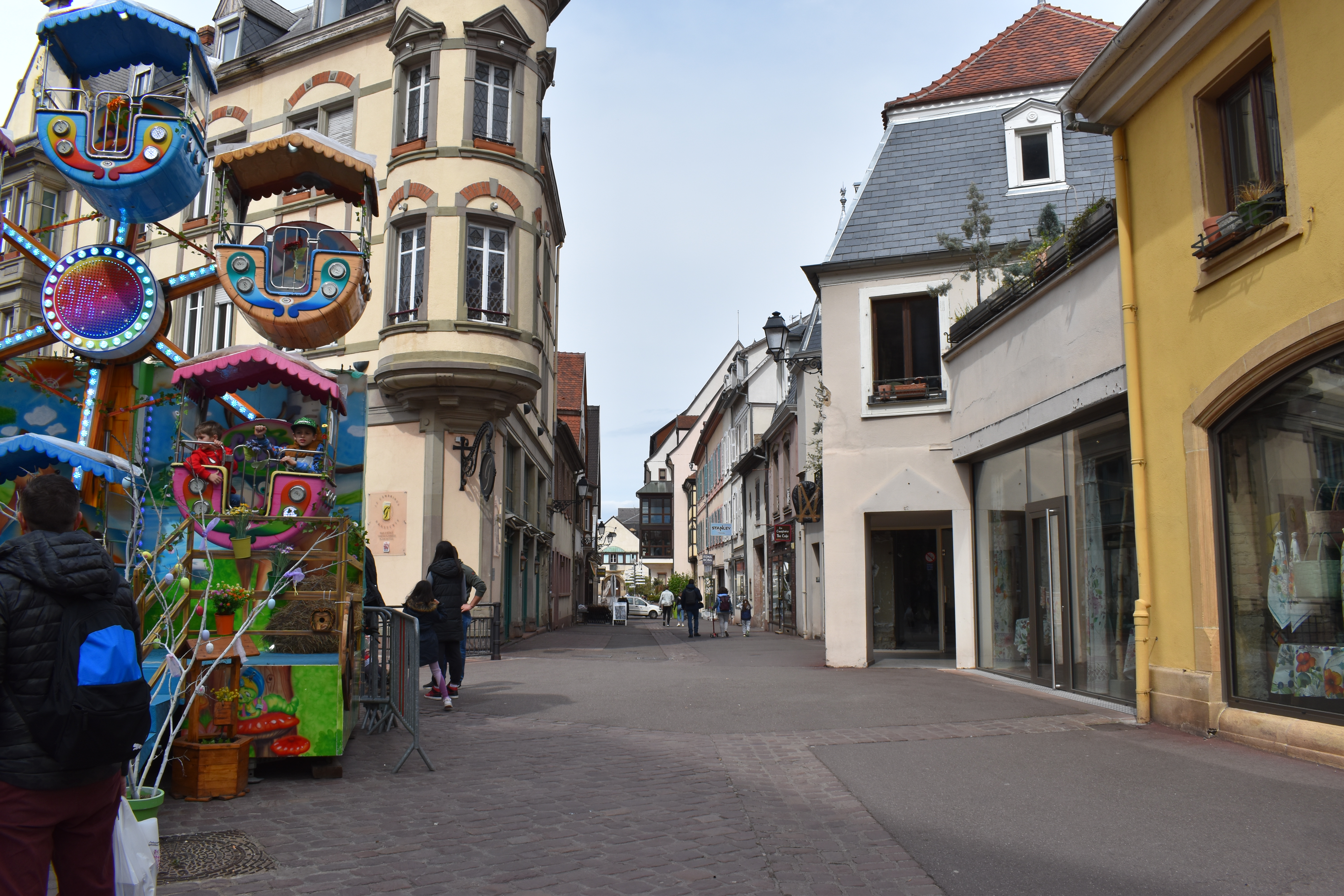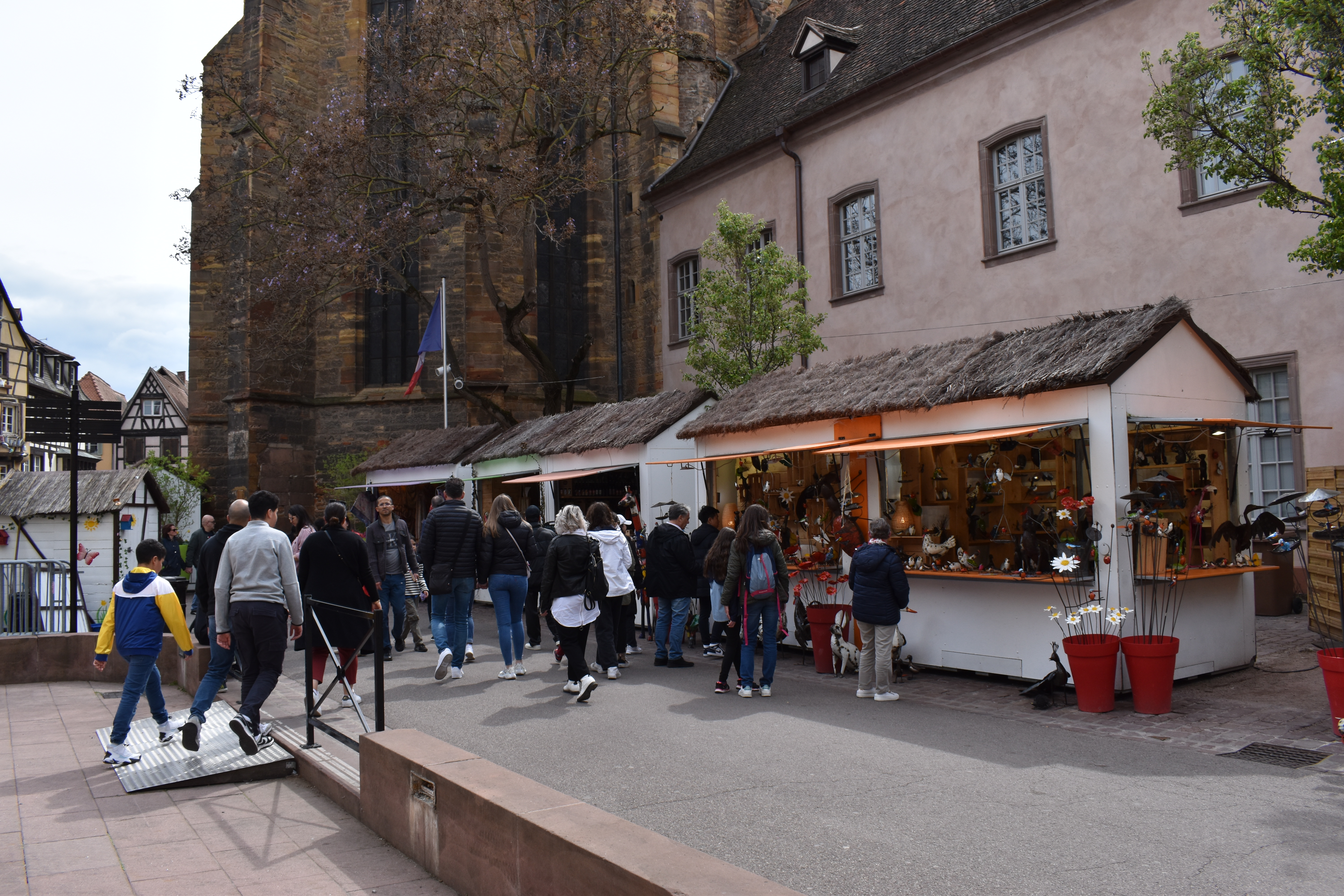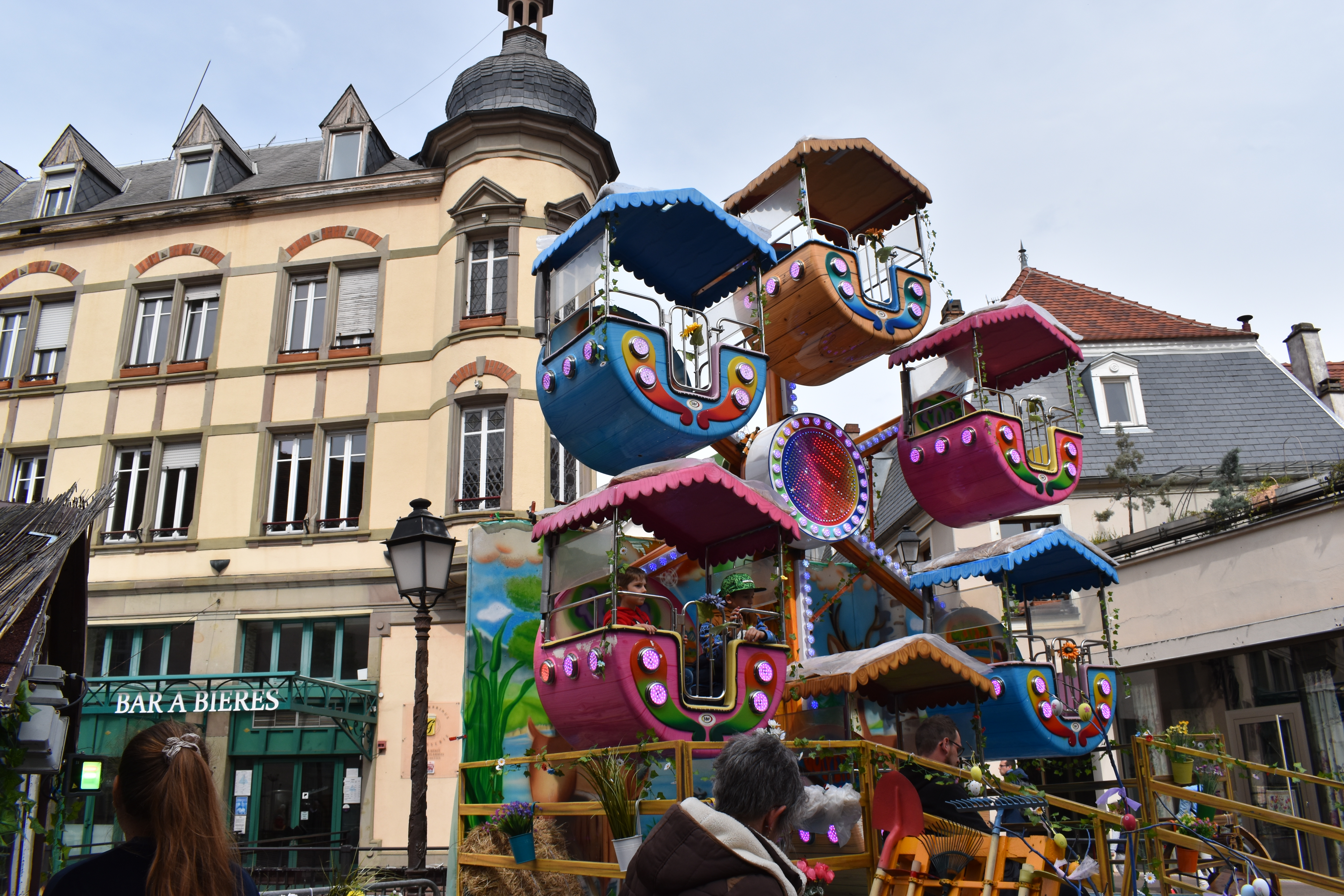 広場の中央には仮設の観覧車が設置されており、子どもたちが楽しんでいた。 観覧車まで設置するなんて、コルマールの人々が春祭りにかける想いの強さを感じる。