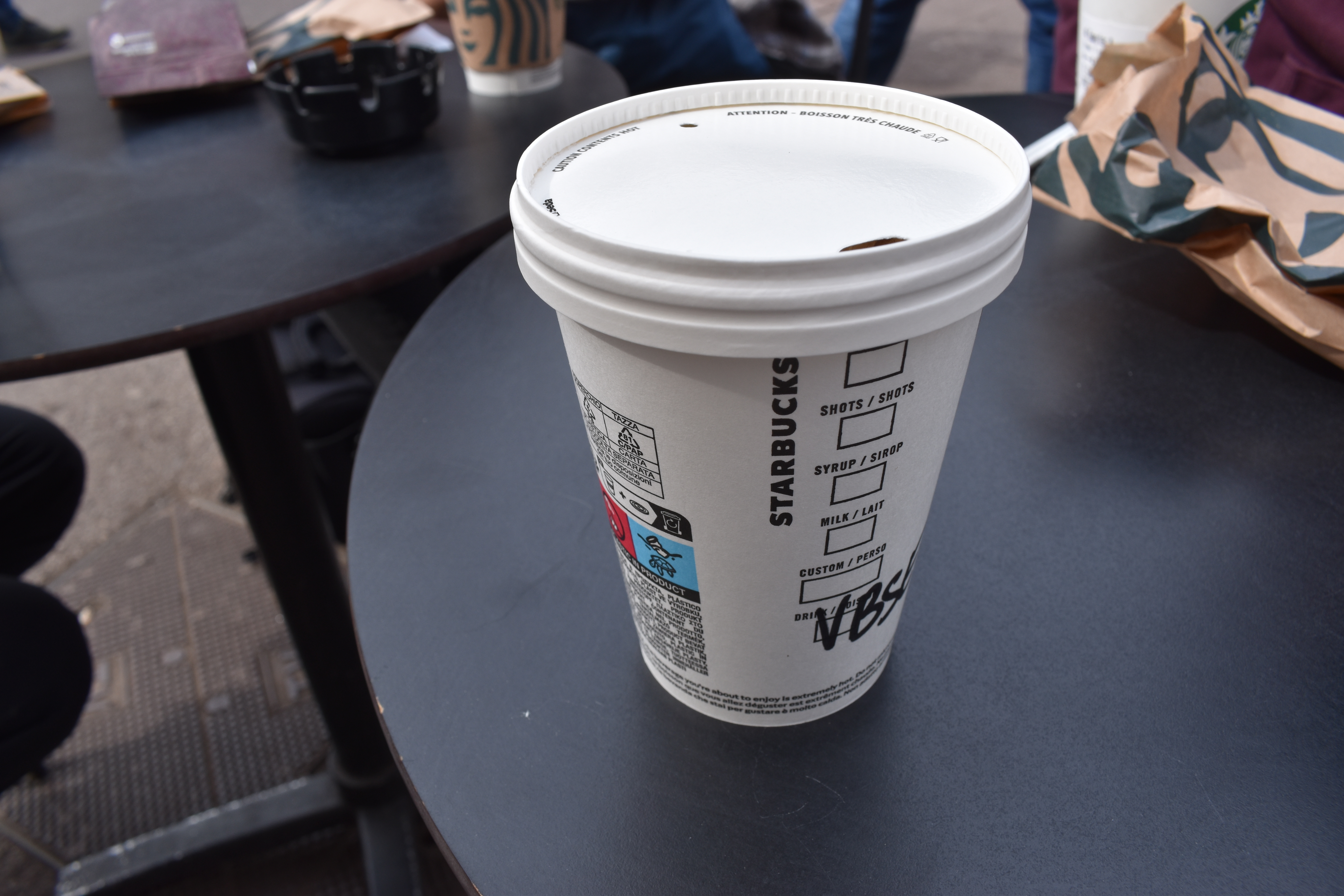 容器はふたまで全て紙製で、環境に対する意識の高さがさすがヨーロッパと言ったところだ。 コーヒーの味はとても美味しく、バニラの味付けがされているものの、コーヒー本来の味をしっかり感じることができる。 コーヒー通の仲間もフランスのコーヒーの美味しさに感激し、コーヒー豆を買って帰っていた。