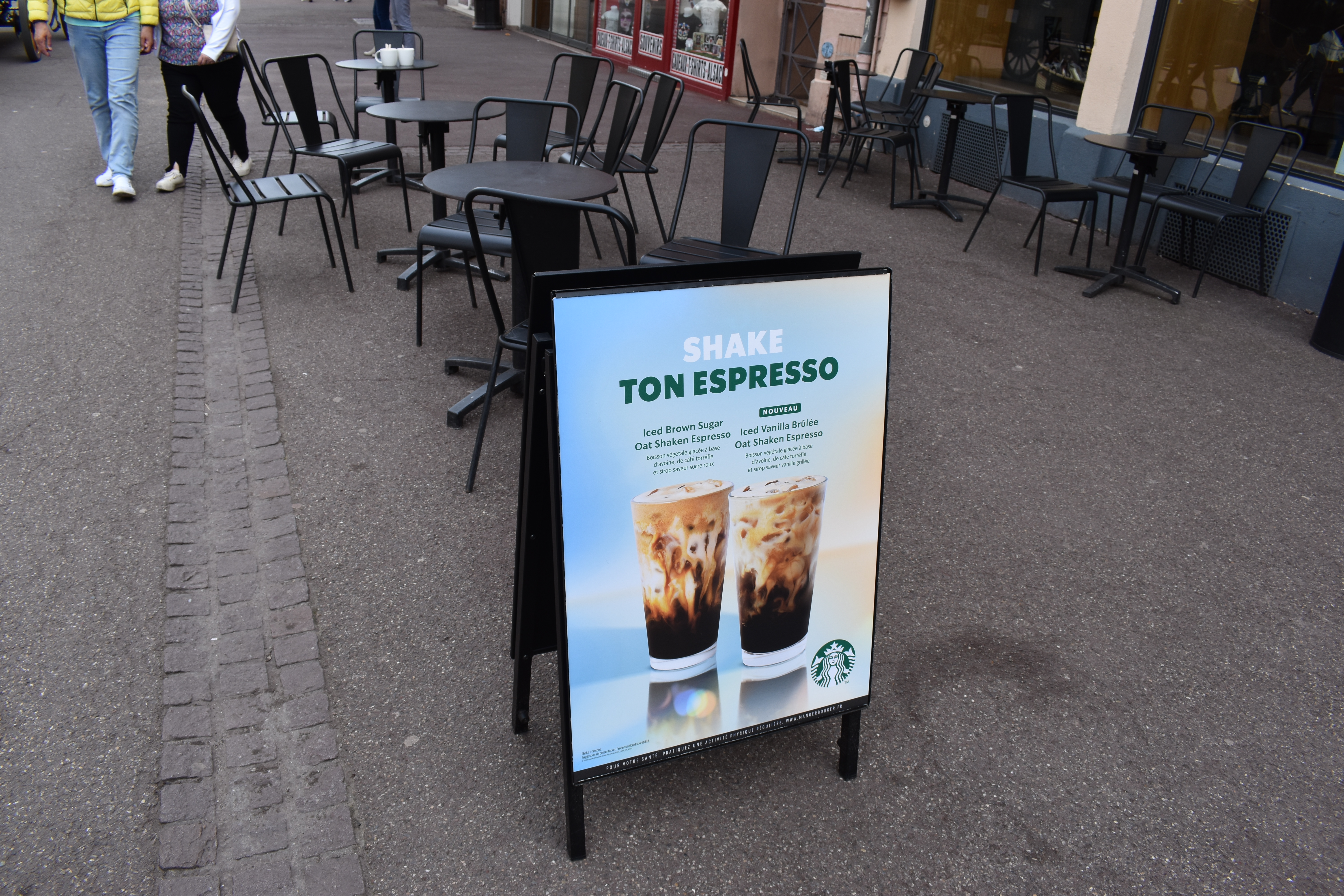 プチ・トラン (Petit Train) に乗ってコルマールを一周した私たちだが、近くにスタバがあるということで寄ってみることにした。 というのも、ごちうさの作中に出てくるブライト・バニーという喫茶店は、飲み物の種類といい看板の形といい、明らかにスタバを意識しているように見えるのだが、コルマールのスタバに寄れば木組みの街のブラバ気分を味わえると思ったからだ。