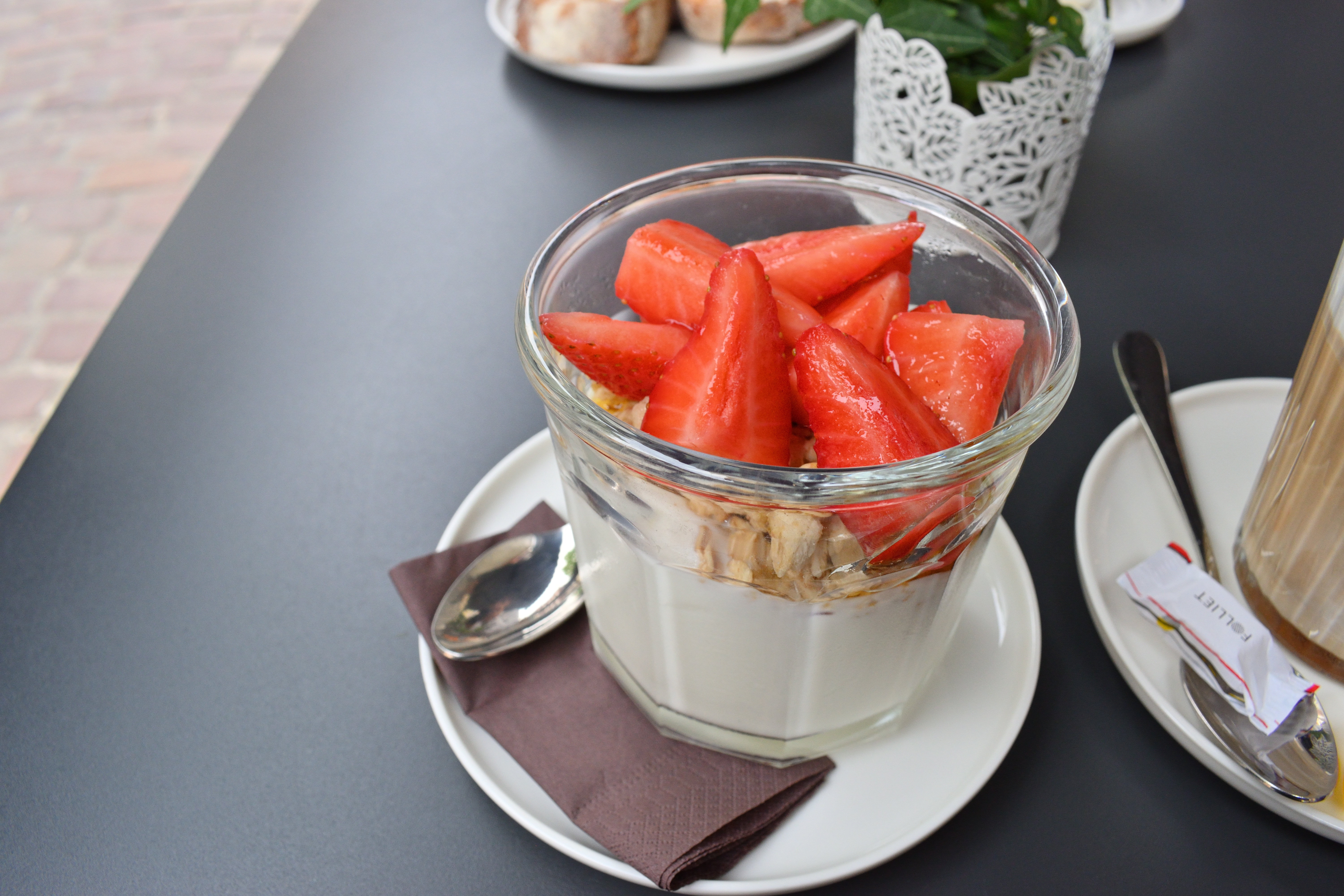 私はこの店の看板メニューである、お店と同じ名前のMOKKAと、フルーツグラノーラを注文した。 グラノーラの上にはヨーグルトと苺が乗っており、非常に美味しかった。 MOKKAはカフェモカで、やはりコーヒーの味が美味しかった。