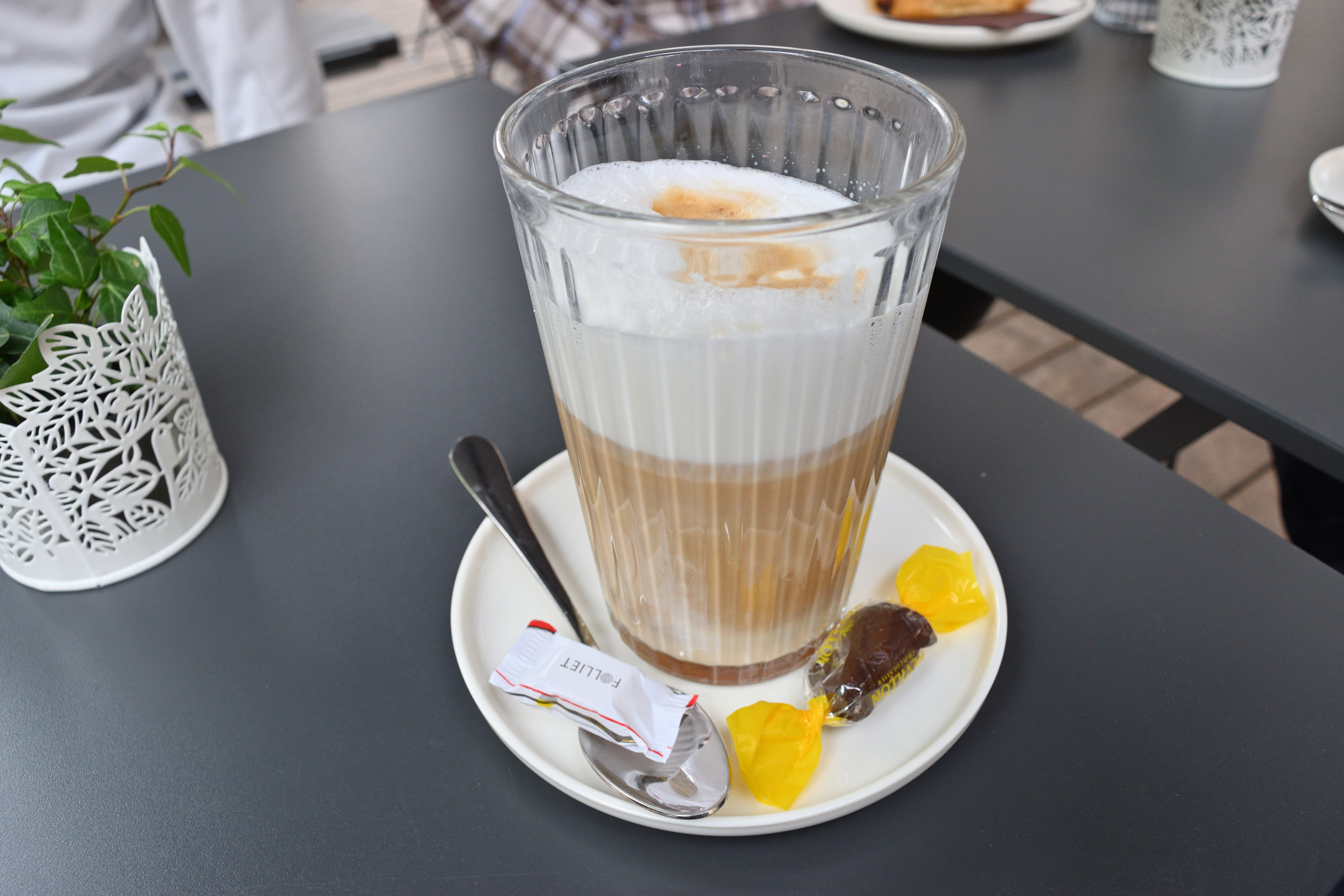 どこでもいいから開いている店でパンを持ち帰ろうということで、大通りを進んでいくと、MOKKAというカフェが開いているようだったので、入ってみることにした。 店員にパンの持ち帰りはできるかと聞いてみたところ、持ち帰りはやっておらず、店内での飲食のみだということだった。 店内で食べたいと伝えたところ、あいにく店内は満席でテラス席のみだと言われたので、テラス席で食事をすることにした。 ちょうど大通り沿いのおしゃれなテラス席に座りたいと思っていたので好都合だ。