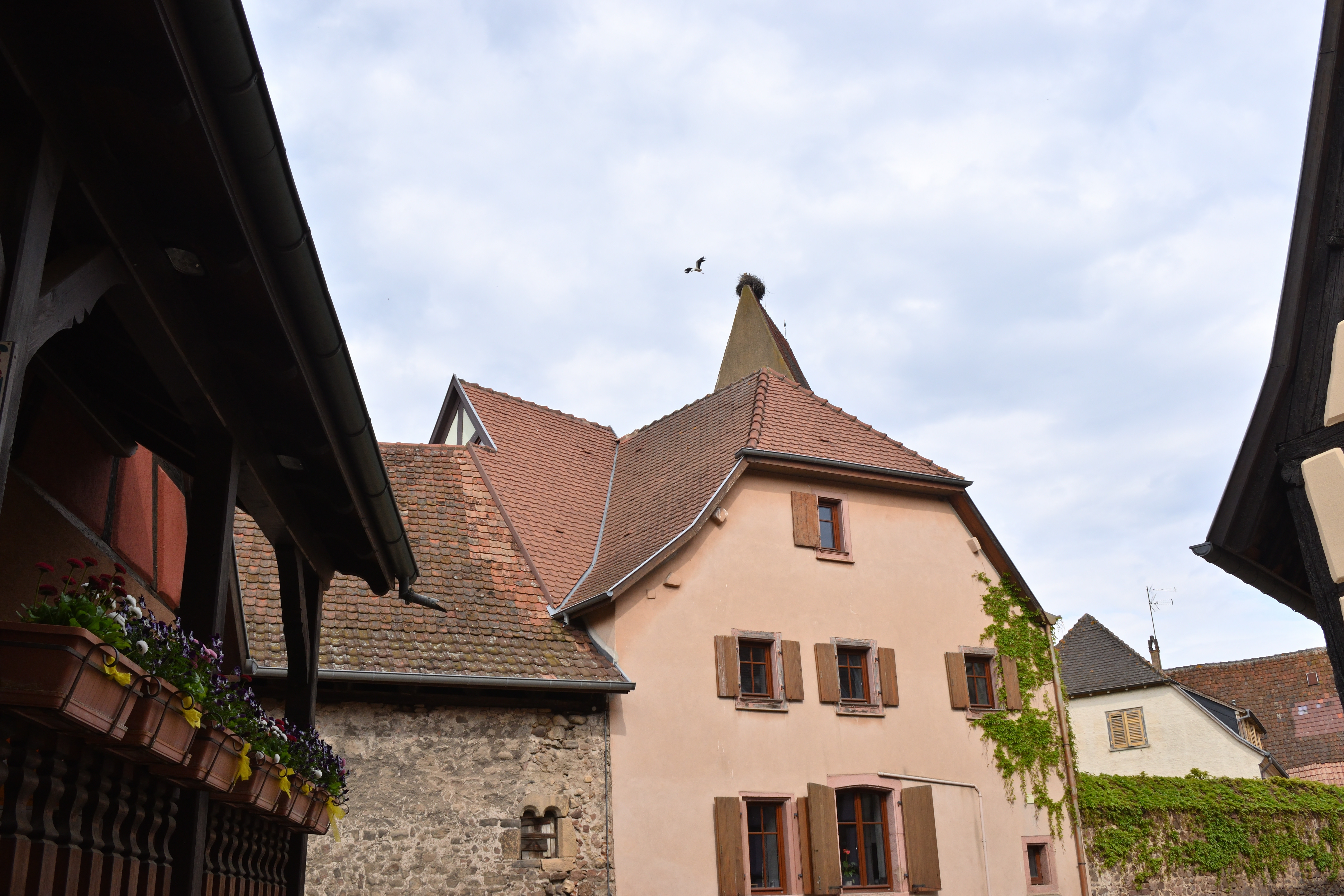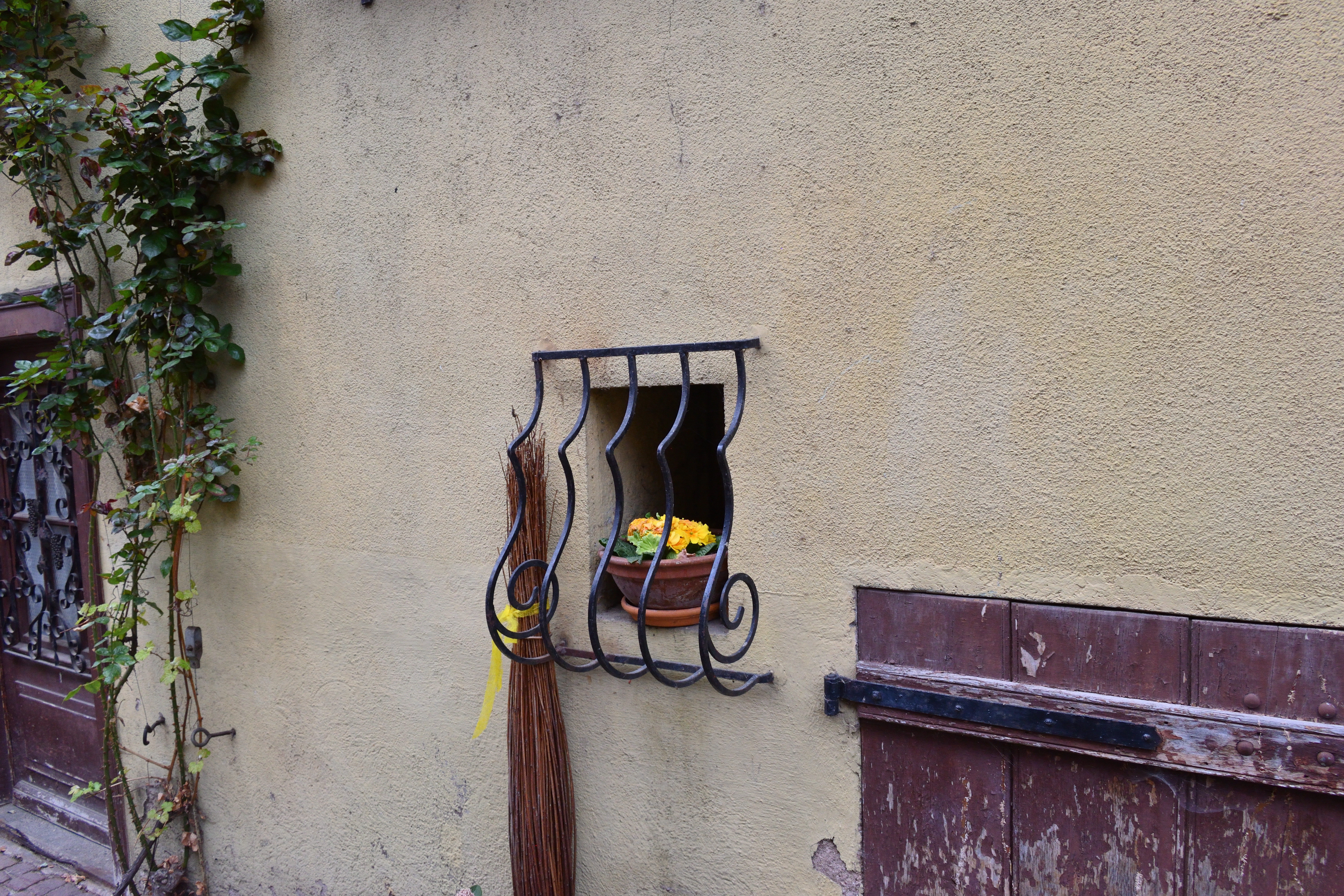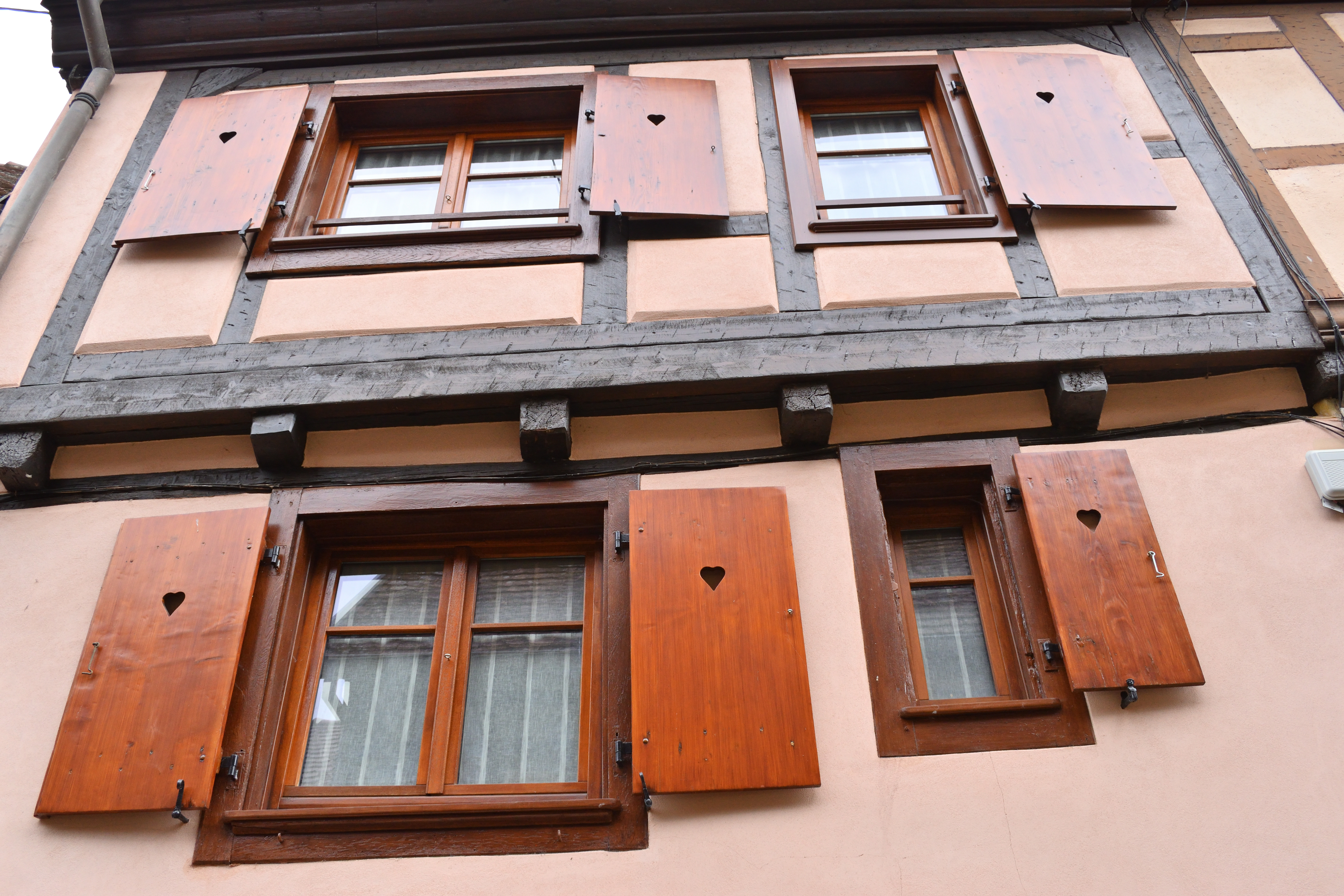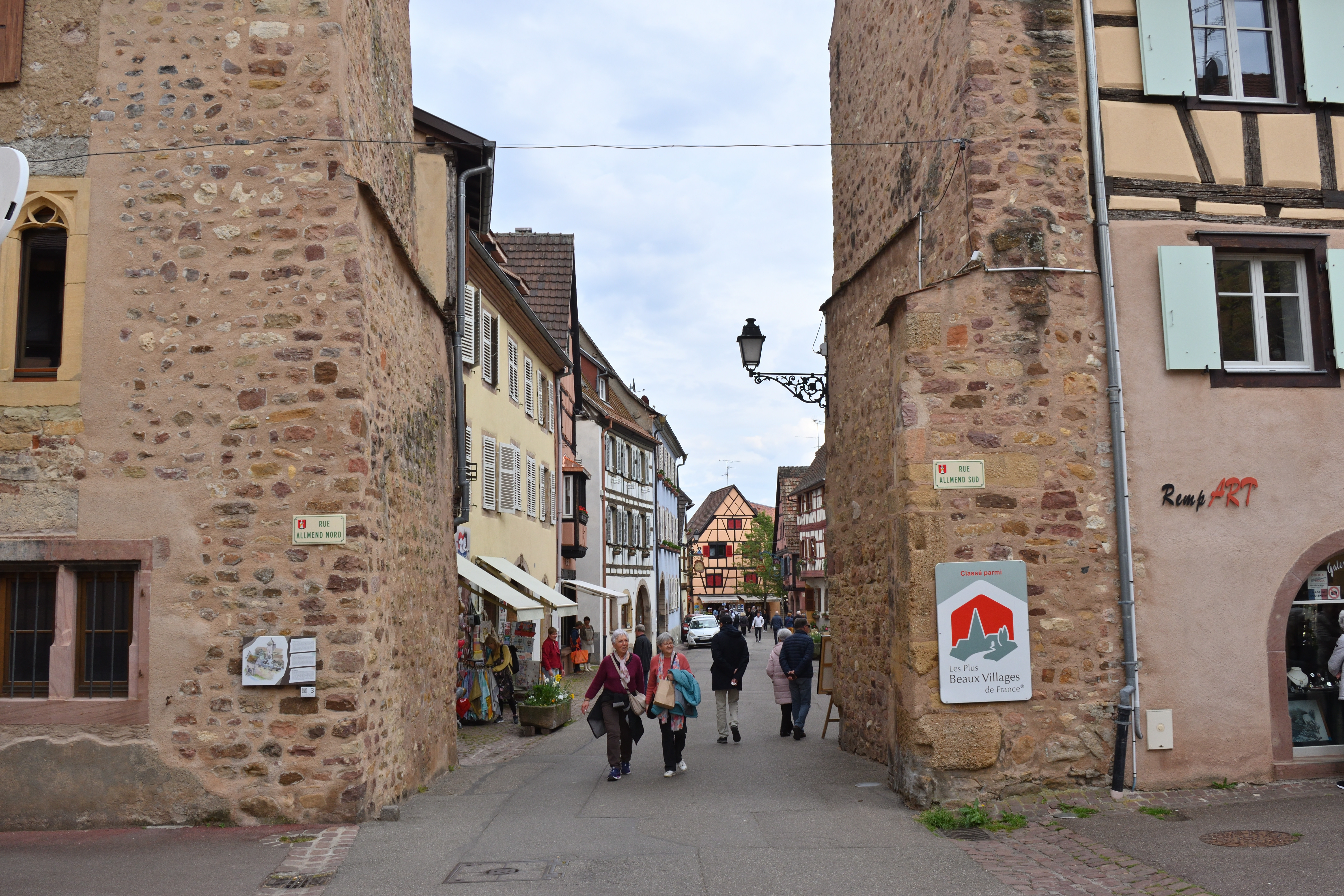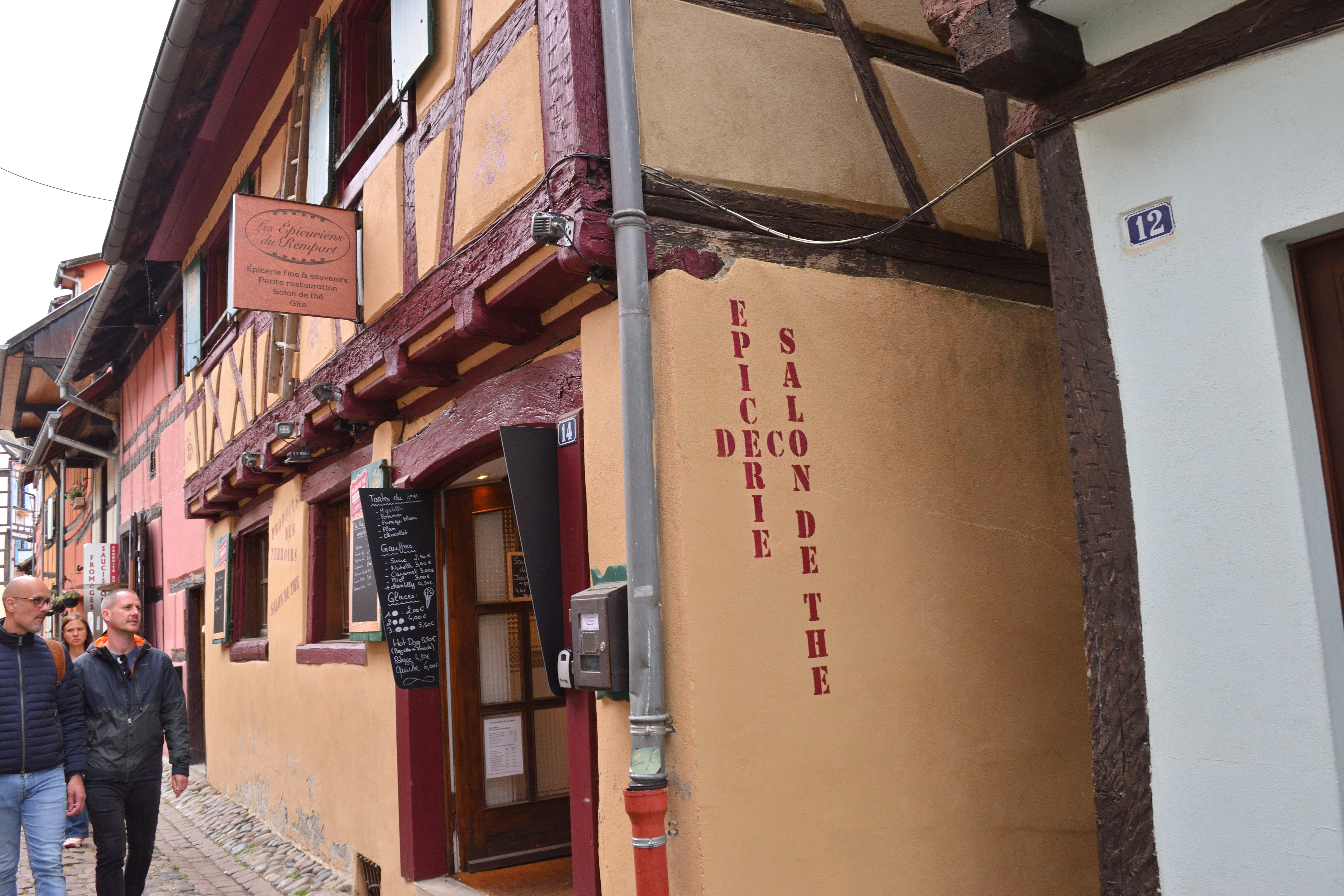 細い道の両側には色とりどりの木組みの家が建っており、とても可愛らしい雰囲気だ。 家の形や色はコルマールのポワソヌリ通りに並んでいる家と似ているが、こちらの方が少し古さを感じる。