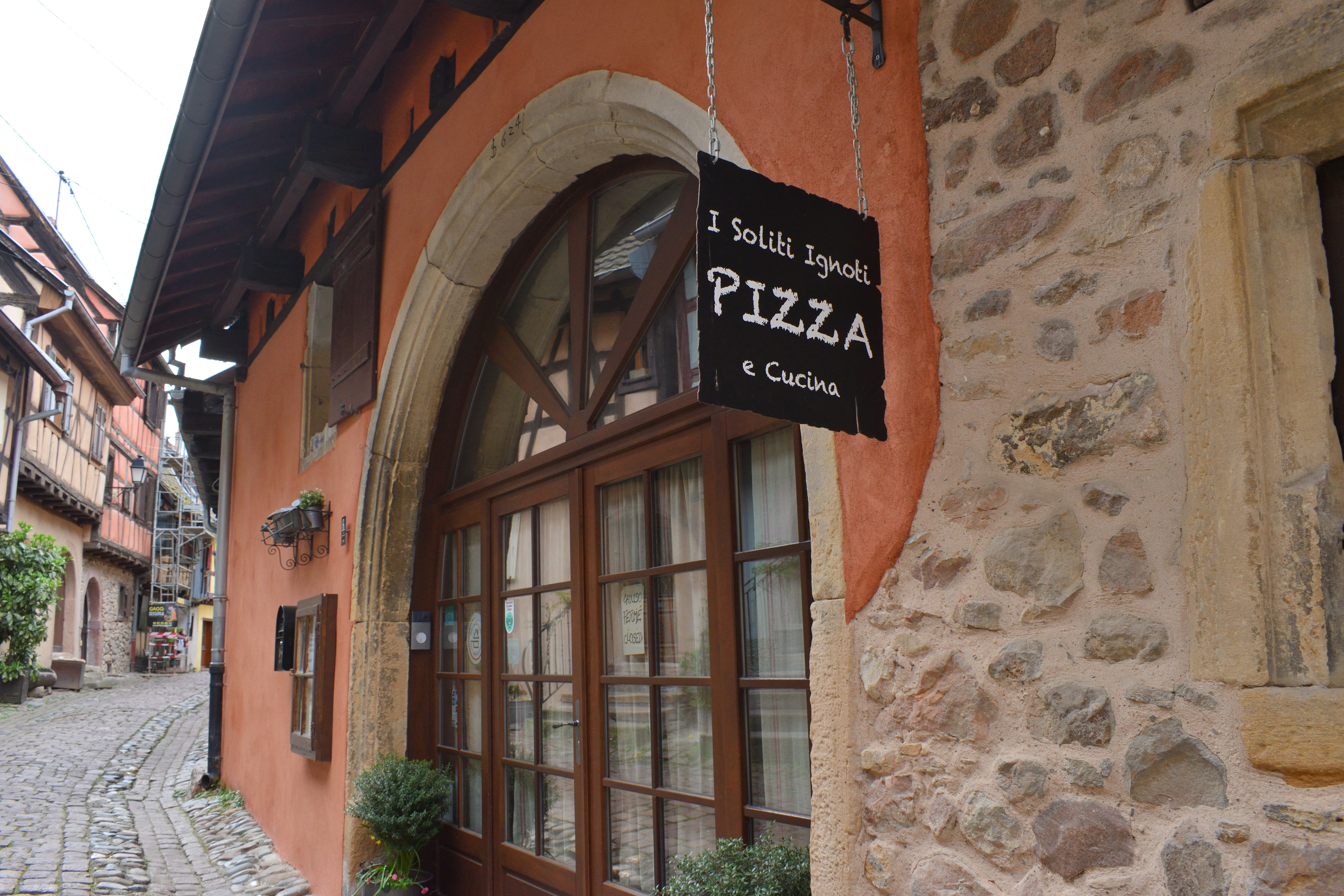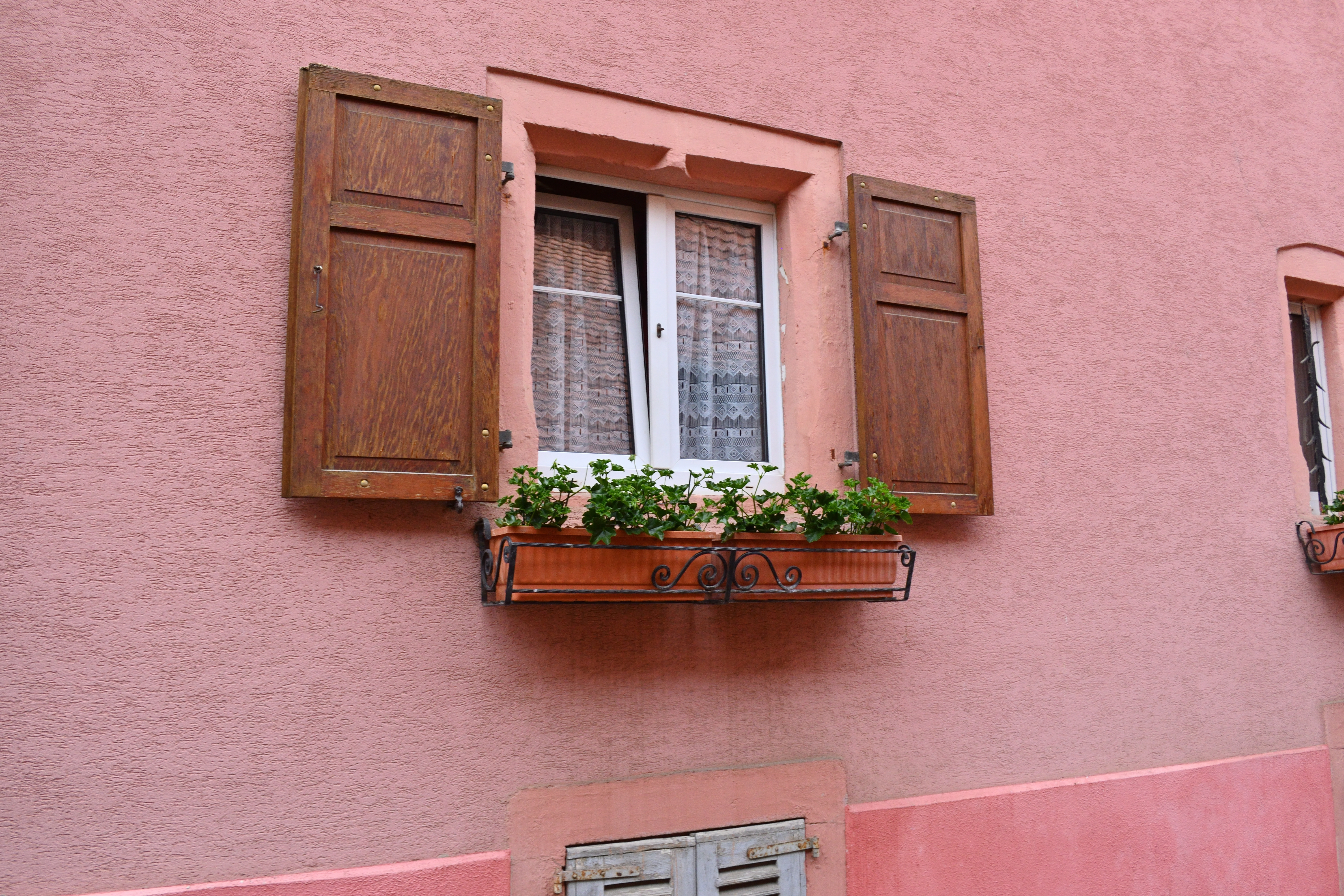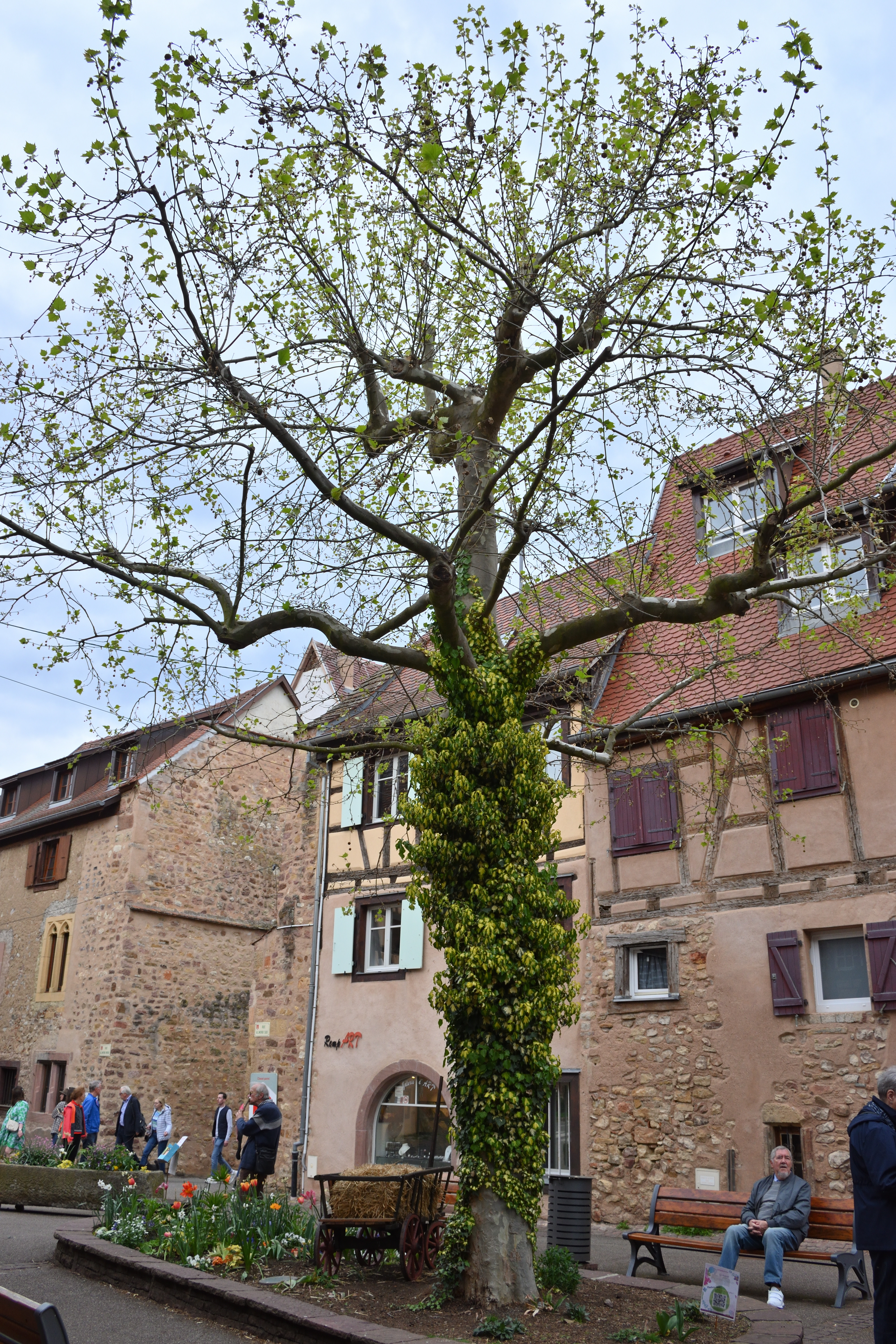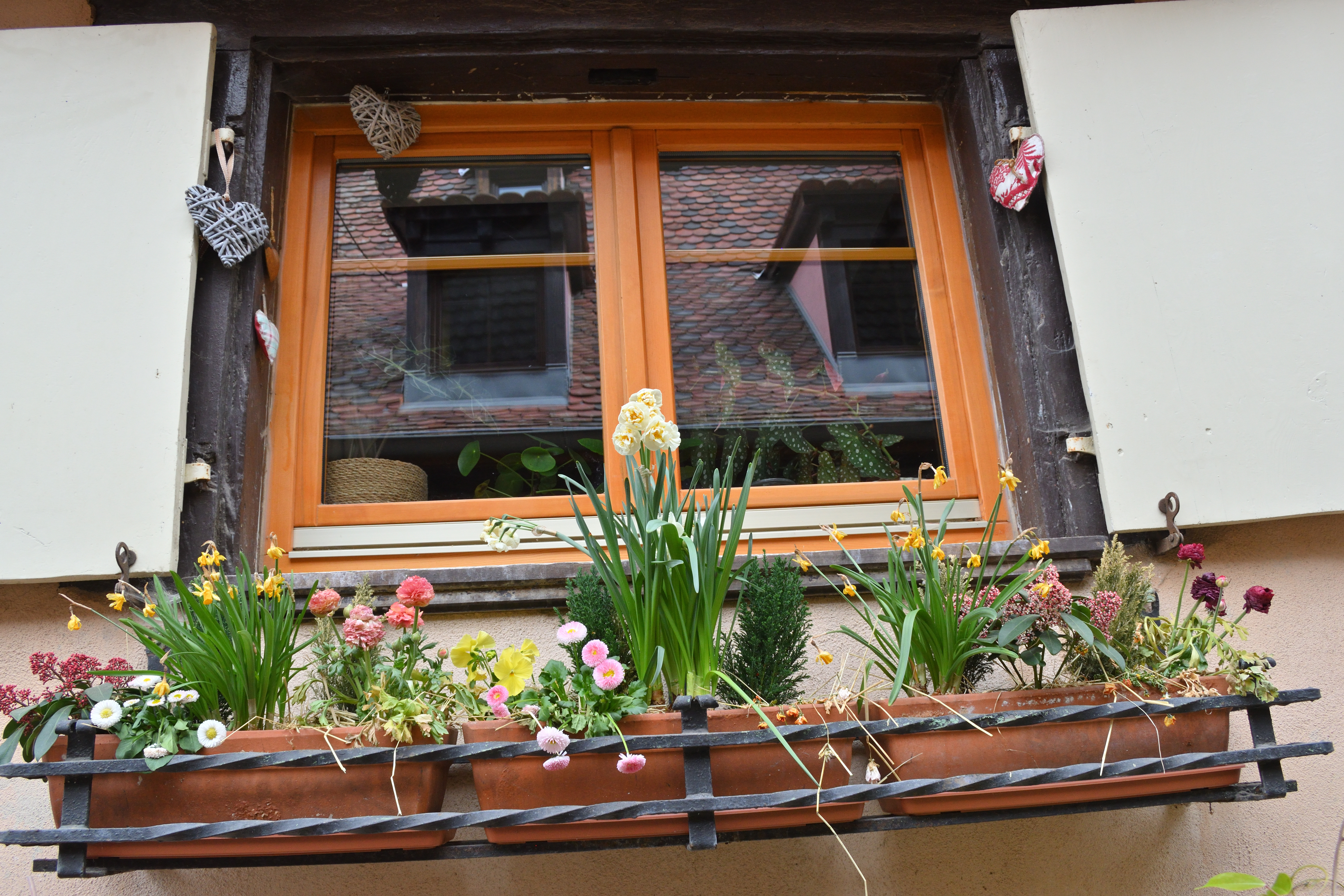 細い道の両側には色とりどりの木組みの家が建っており、とても可愛らしい雰囲気だ。 家の形や色はコルマールのポワソヌリ通りに並んでいる家と似ているが、こちらの方が少し古さを感じる。