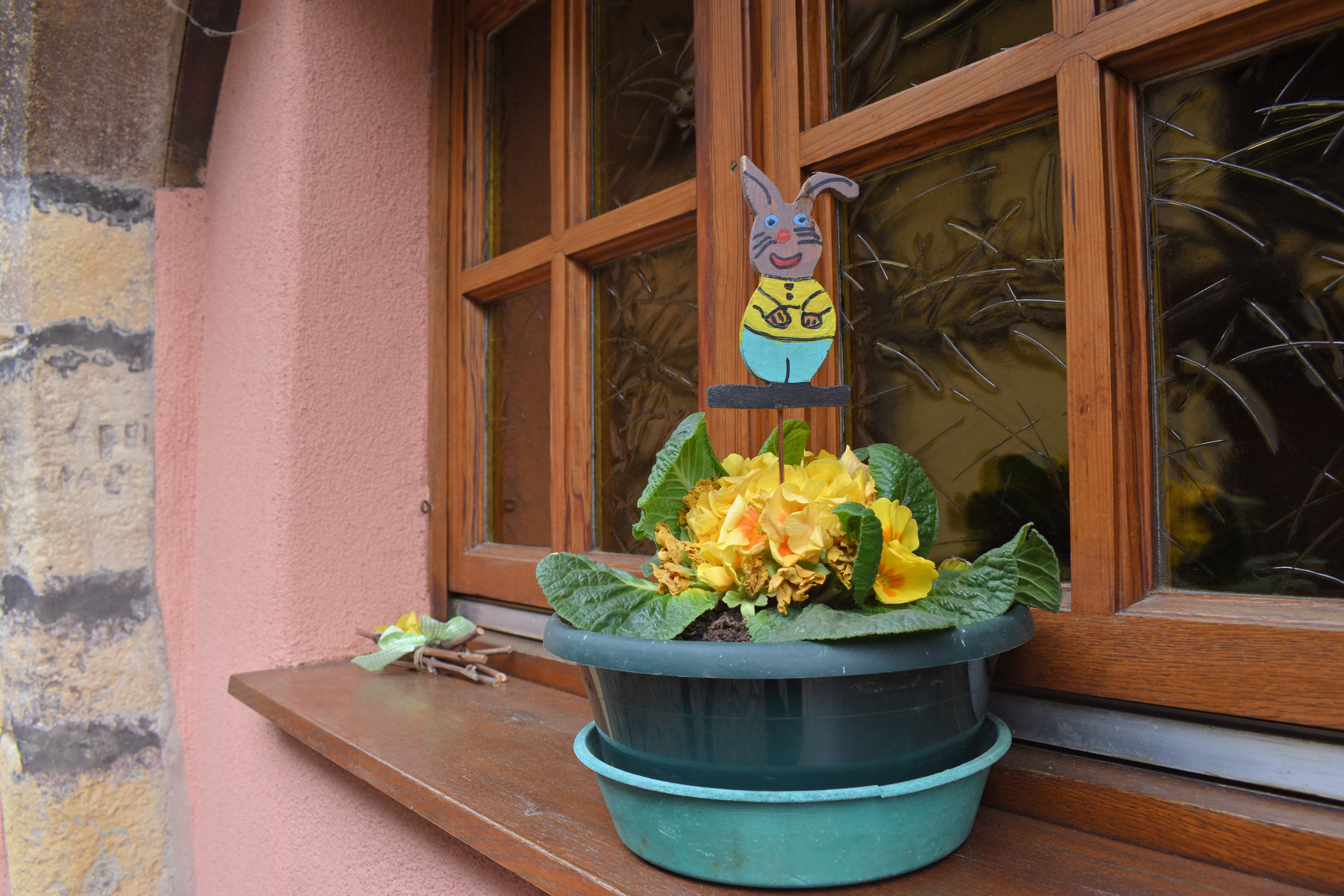 愛嬌のある表情をしたうさぎが可愛い。 手作り感あふれるイースターの飾り付けのようだ。