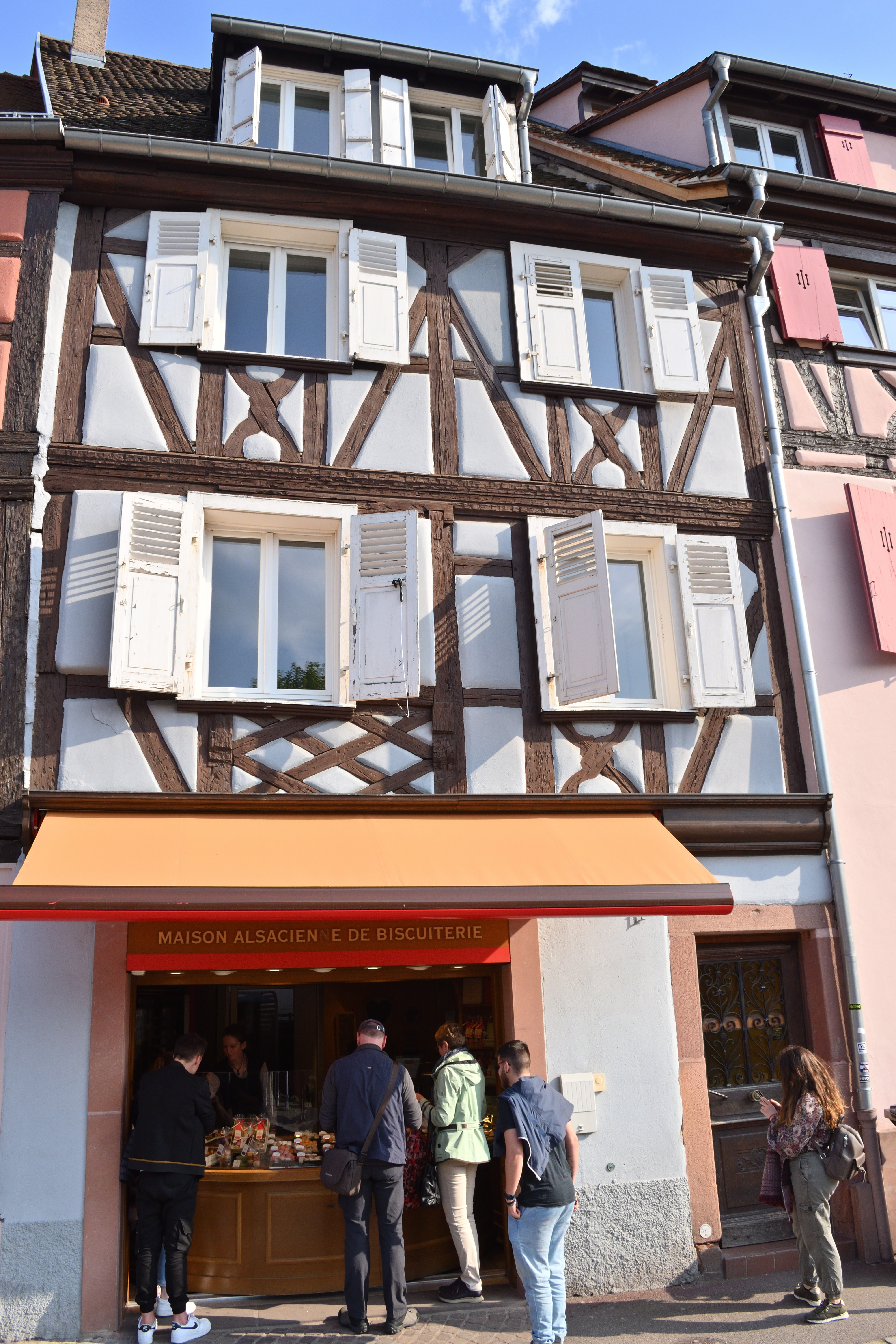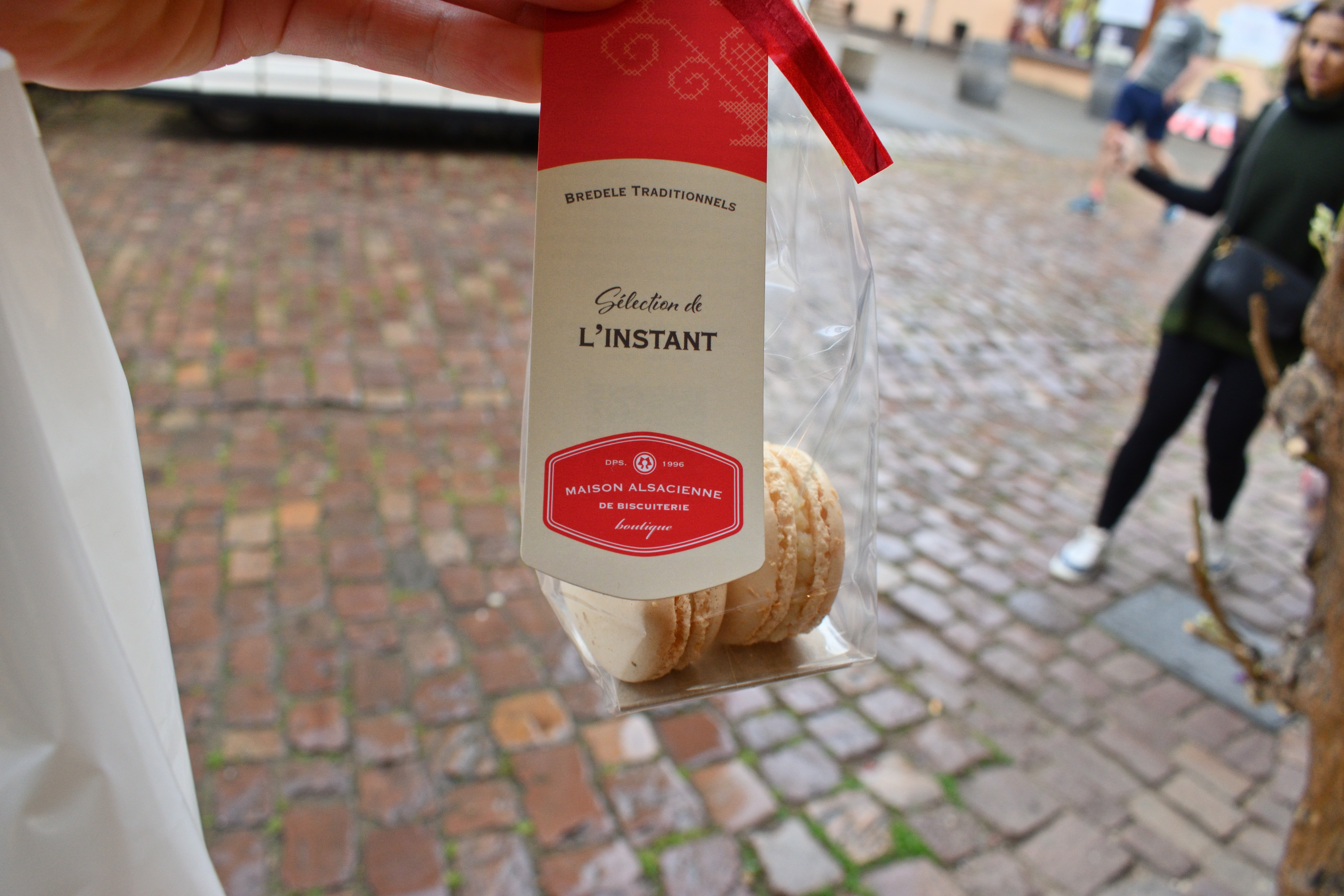 のんびりコルマールを散策していたのだが、今後の予定について考えたところ、ちょうどこの自由時間しかコルマールのお土産を買う時間がないことに気づいた私は、急いで街の中心部へと向かった。 お土産としてはブドウの柄が彫られたワイングラスと、私たちのアパートの1階に入っているビスケット屋さんと同じ店がコルマールの街の中に数店舗あったので、そこでリクヴィール・マカロンと通常のマカロンとクッキーを買った。 日本に帰ってから食べた感想としては、買って帰ったどのお菓子も美味しかったのだが、特にこのお店のリクヴィール・マカロンが美味しかった。 (リクヴィールで買ったリクヴィール・マカロンより、時間が経ってからも風味が落ちていなくて美味しくいただくことができた。) リクヴィール・マカロンはアルザス地方でしか買えないので、コルマールに来た人のお土産としておすすめだ。