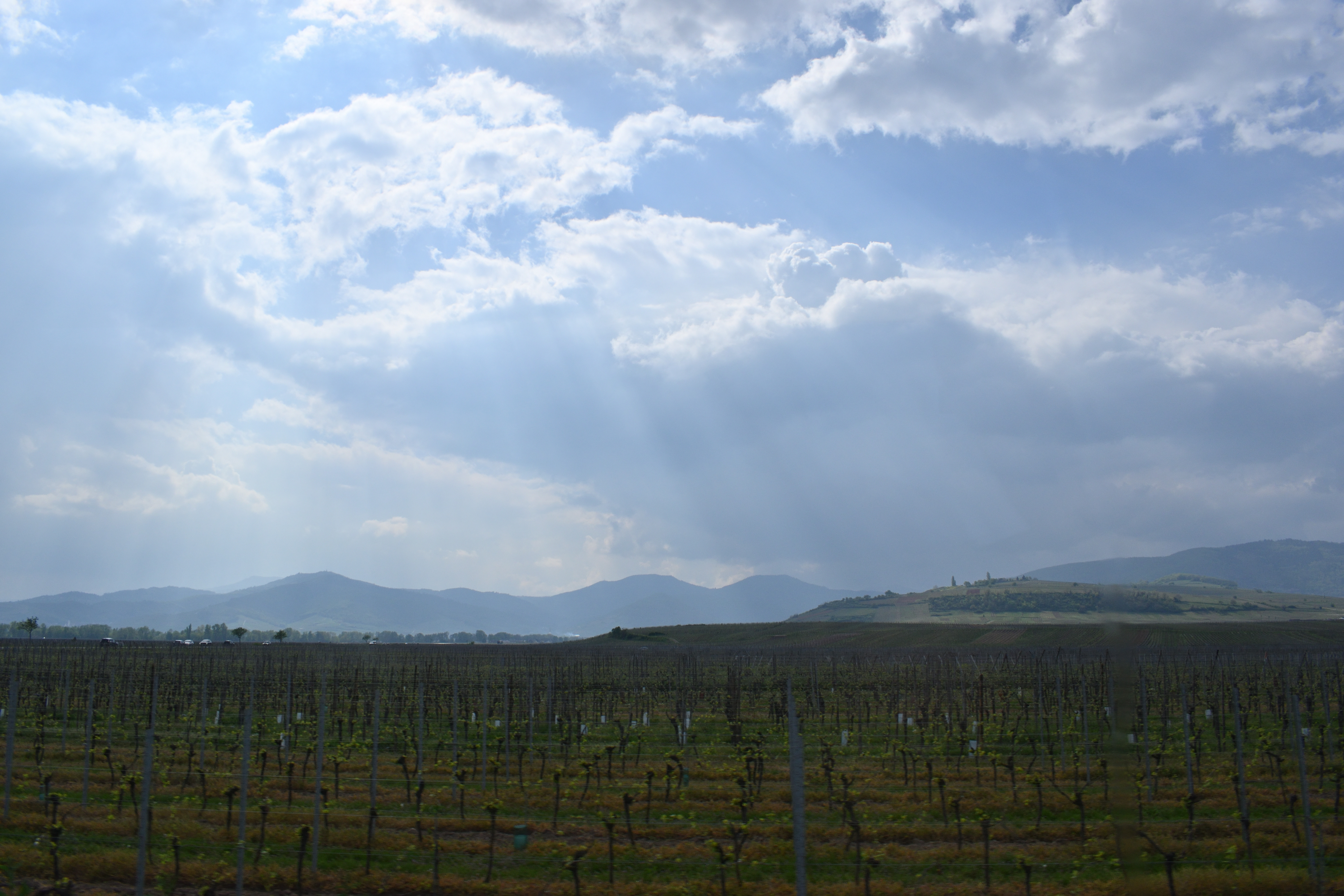 帰りのバスも一面のブドウ畑の中を進んでいく。 一体これほどの広さの畑をどうやって管理しているのだろうか。 きっと多くの人手が必要なのだろう。