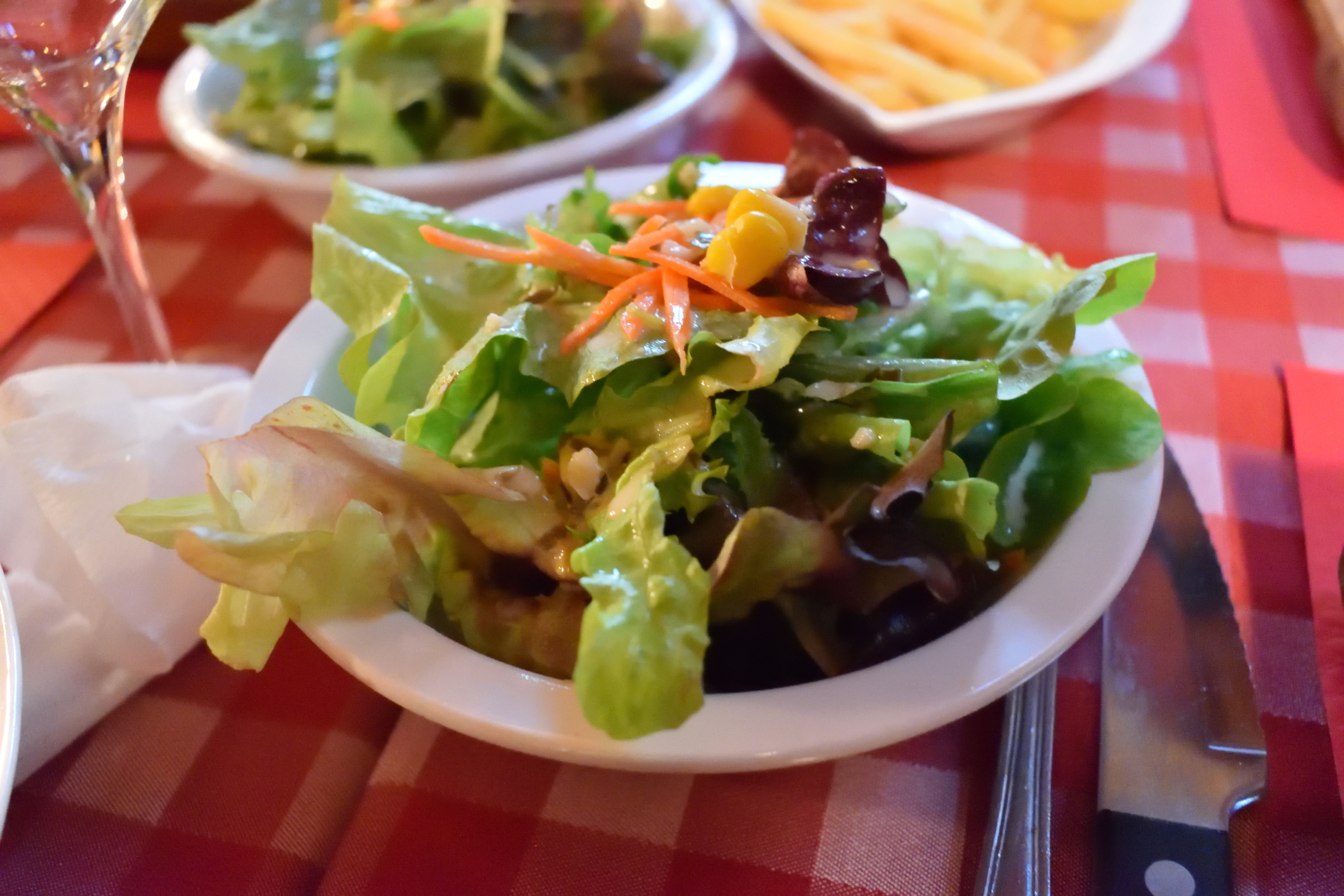肉にはサラダとフライドポテトもついていた。
