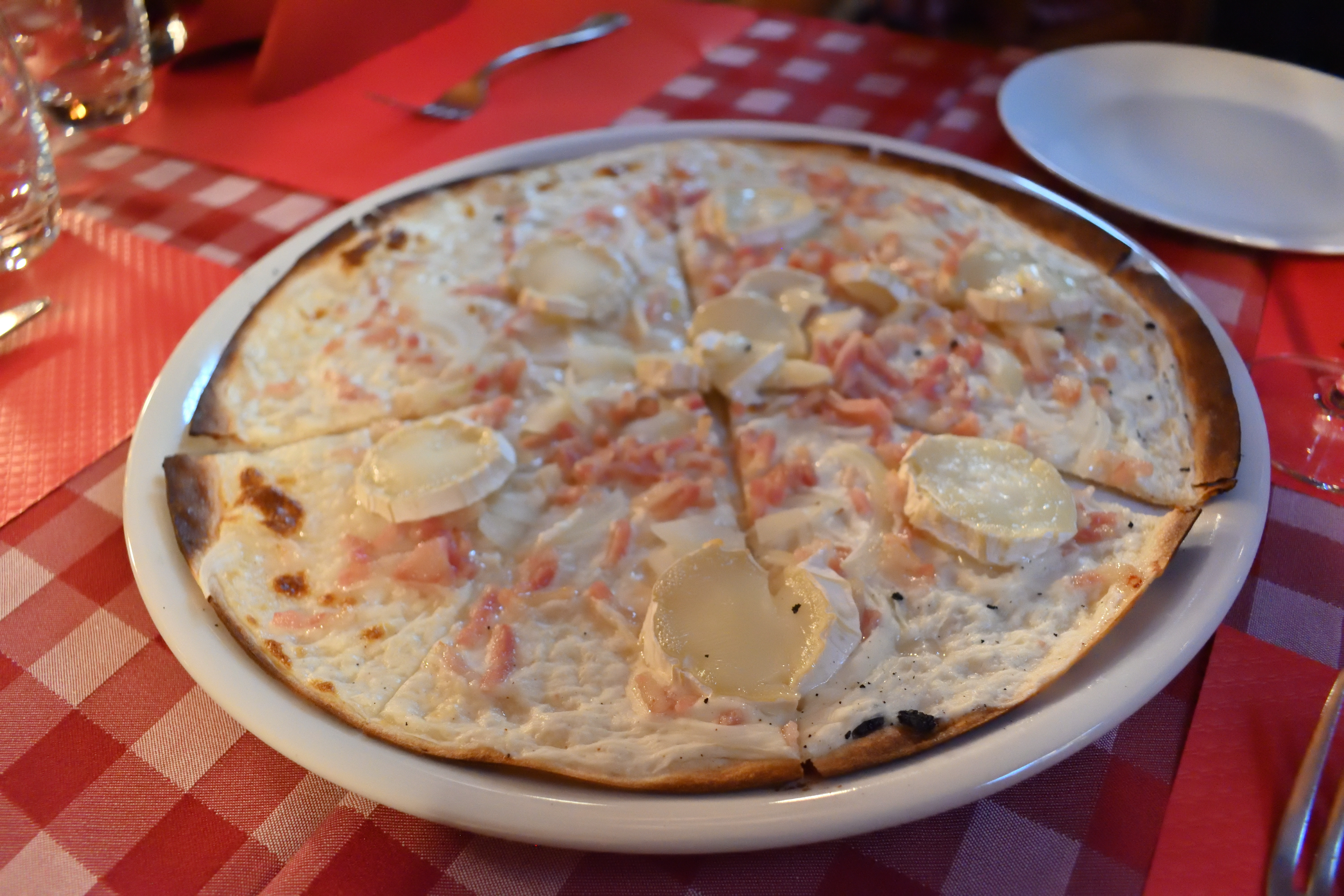 タルトフランベも外せない。 今回はマンステールチーズのタルトフランベを注文した。