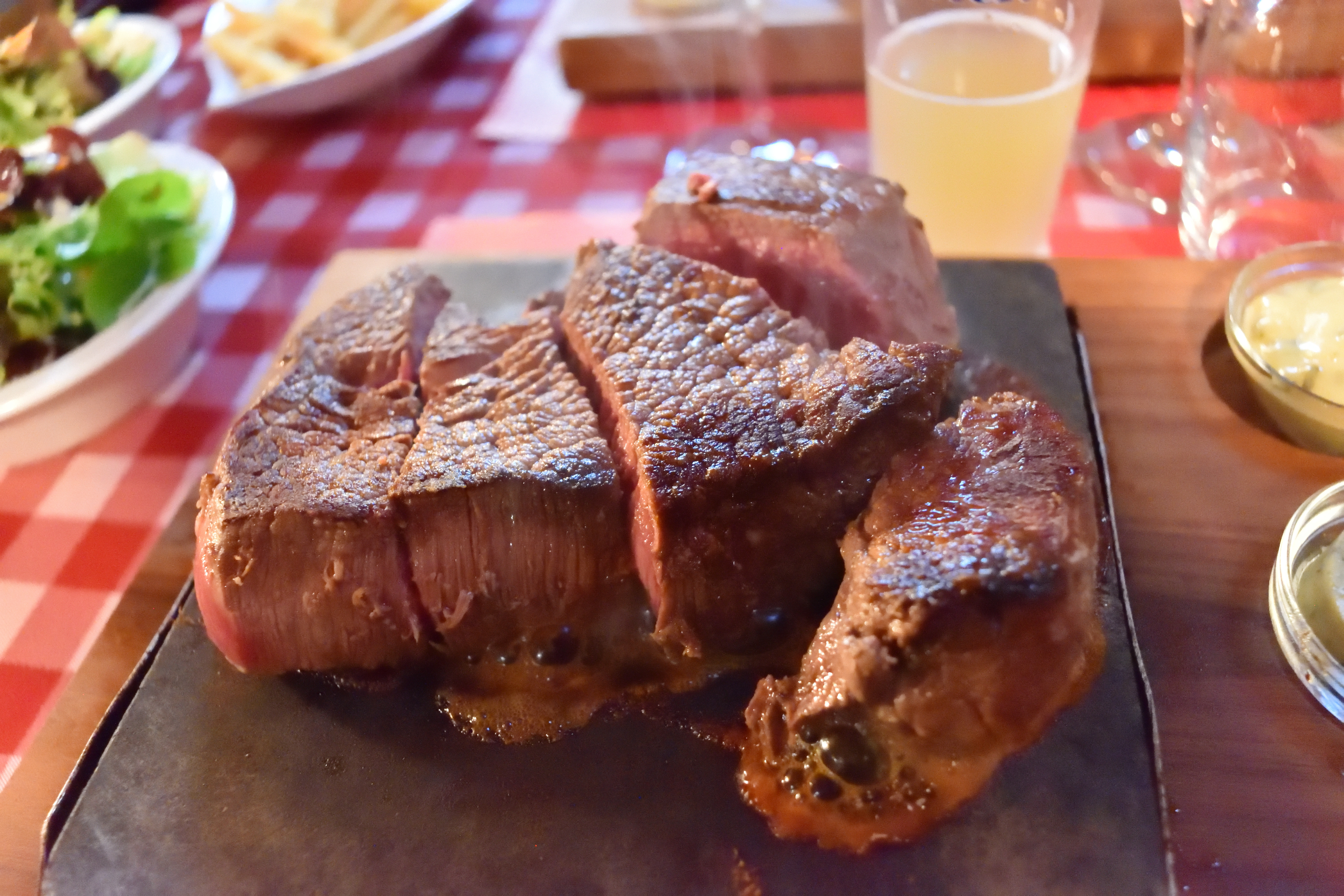 ナイフで切ってミディアムくらいで食べたのだが、とても質の良い赤味肉で、結構量があるのに全く胃がもたれる感覚がない。 肉が柔らかく、味ももちろん絶品だった。