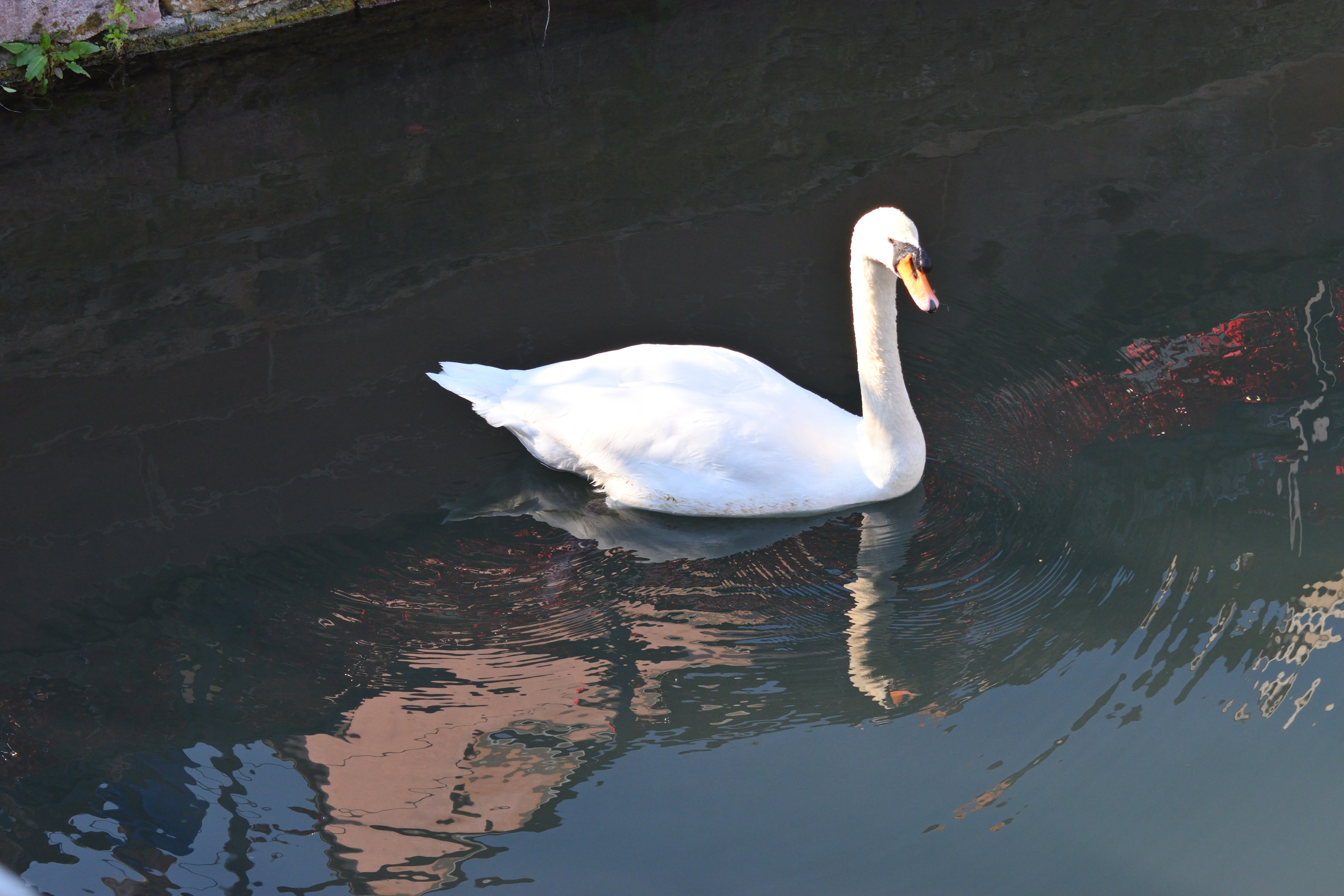橋のすぐ近くにはめずらしく白い鳥が泳いでおり、私たちを見送ってくれた。