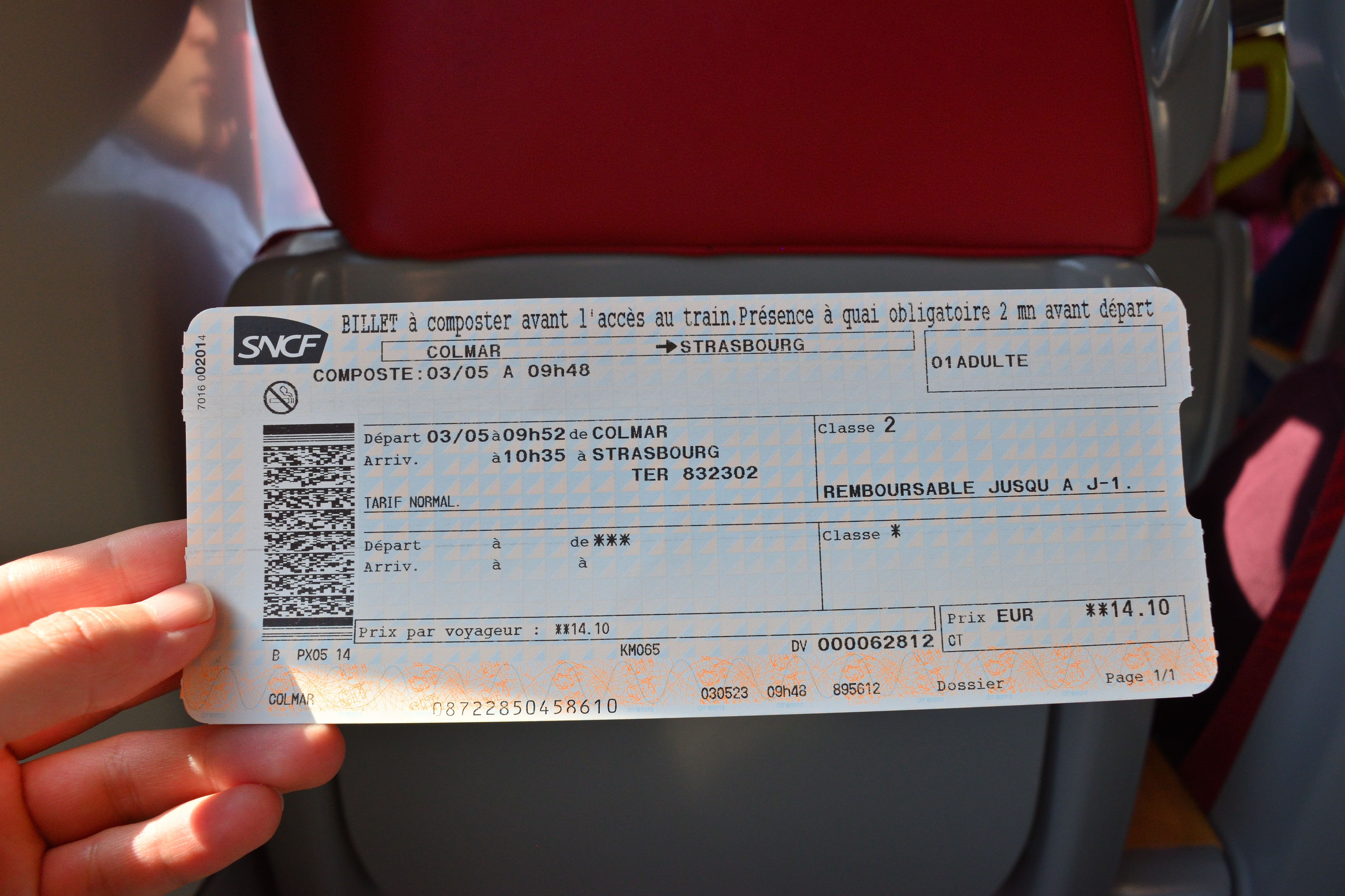 後で仲間がコルマールに詳しい有識者に確認してくれたところ、今年の初めあたりに改札機にチケットを通す義務が廃止されたということだった。 このサイトによると、スマホの普及によってQRコードの利用が主流になったためだということらしい。 かつては刻印を押していないと車掌さんから80ユーロの罰金を要求されたということだが、これからは罰金を支払う心配がなくなるということで、フランスの列車に乗りやすくなったと言えるだろう。
