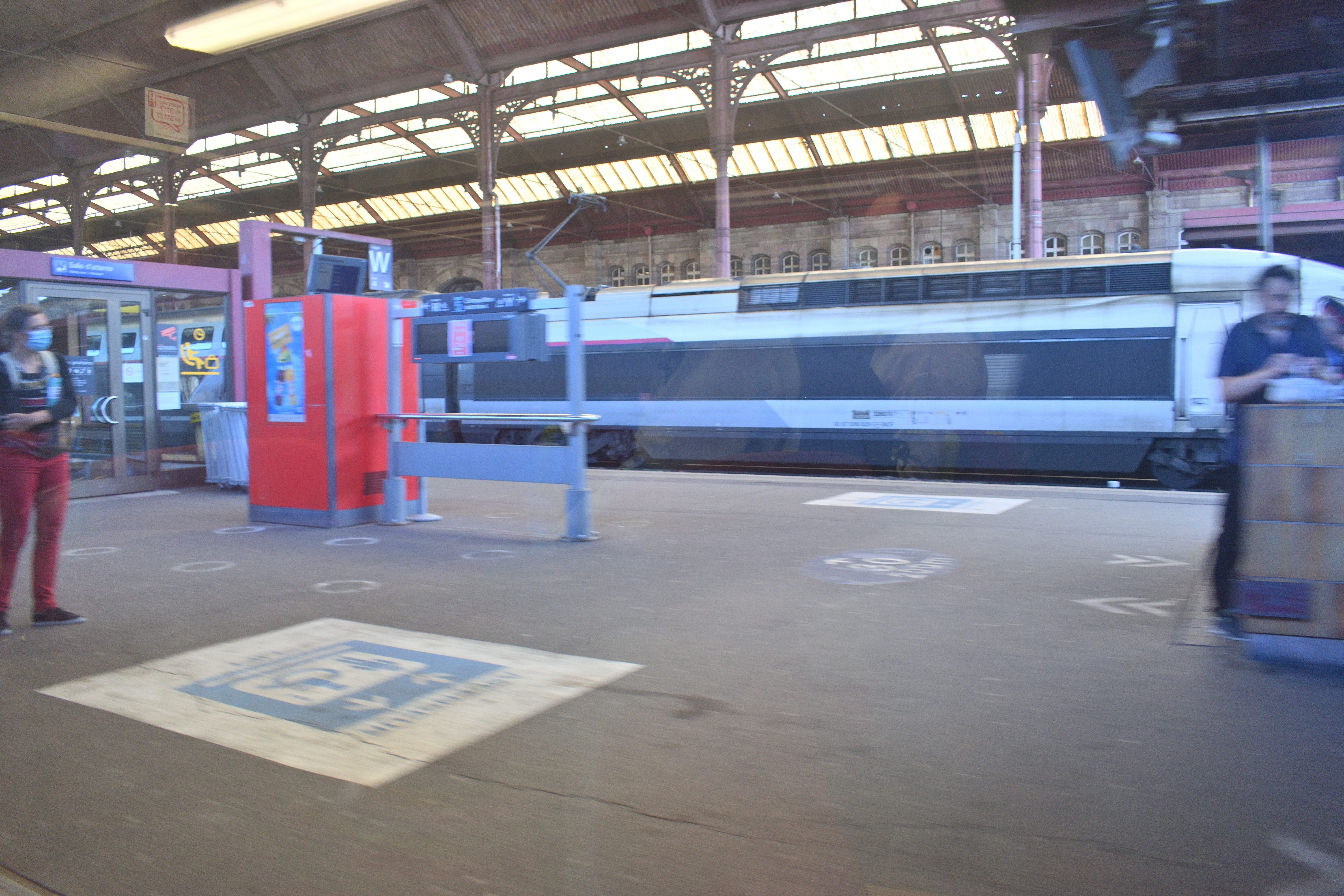 駅のホールでチケットを買い、私たちはホームへと向かった。 ホームには乗る予定の TER がもう到着していた。 急いでチケットをホームにある改札の機械に通そうとしたのだが、機械の入り口がガムテープで塞がれており、チケットを通せなくなっていた。 他の使える機械があるのだろうかと思い、周囲を確認してみたものの、それらしい機械は見当たらない。 チケットを改札に通していない不安はあるものの、列車に乗り遅れたらどうしようもないので、とりあ えず列車に飛び乗ることにしたのだった。