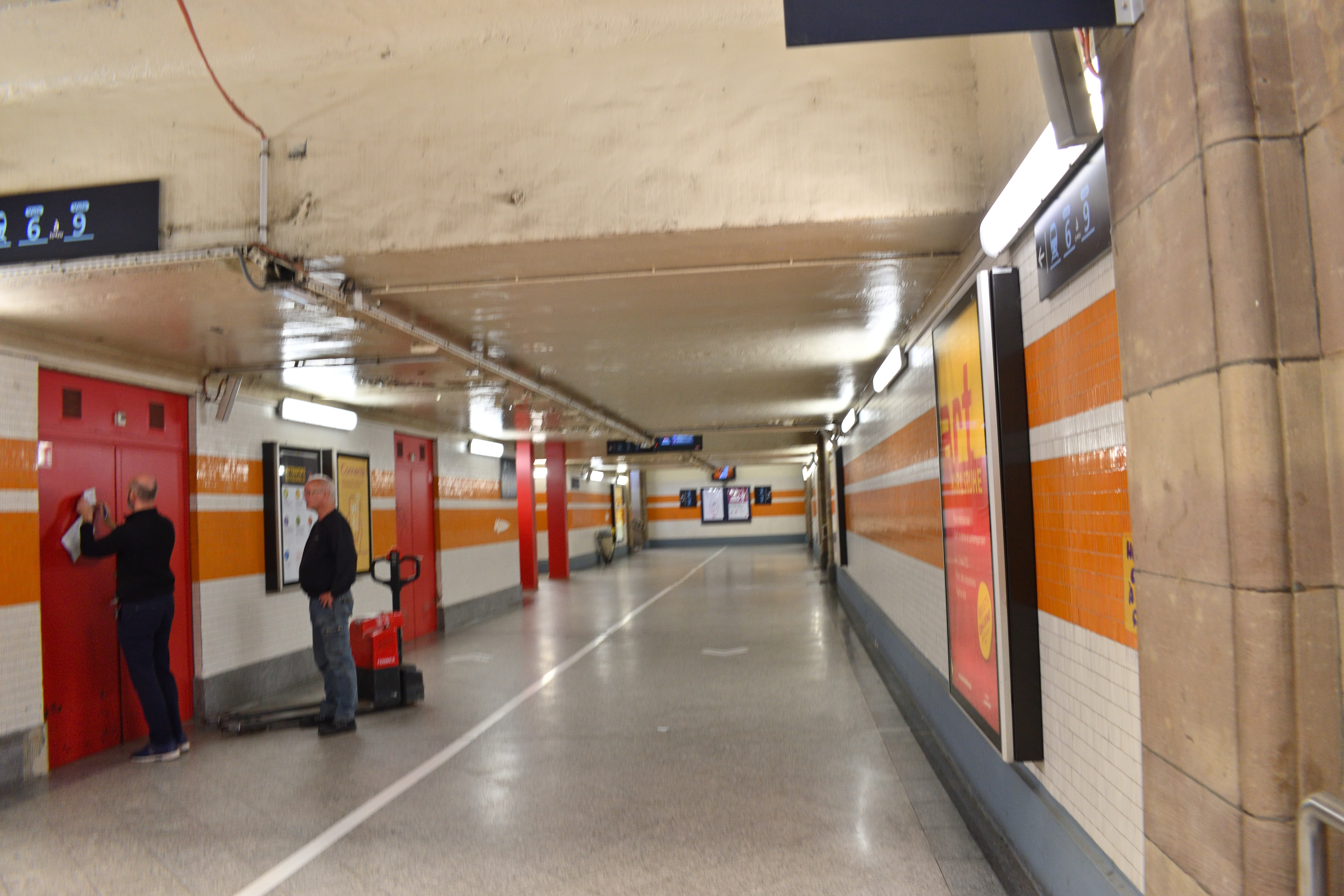 駅の出口へは地下道を通っていく。
