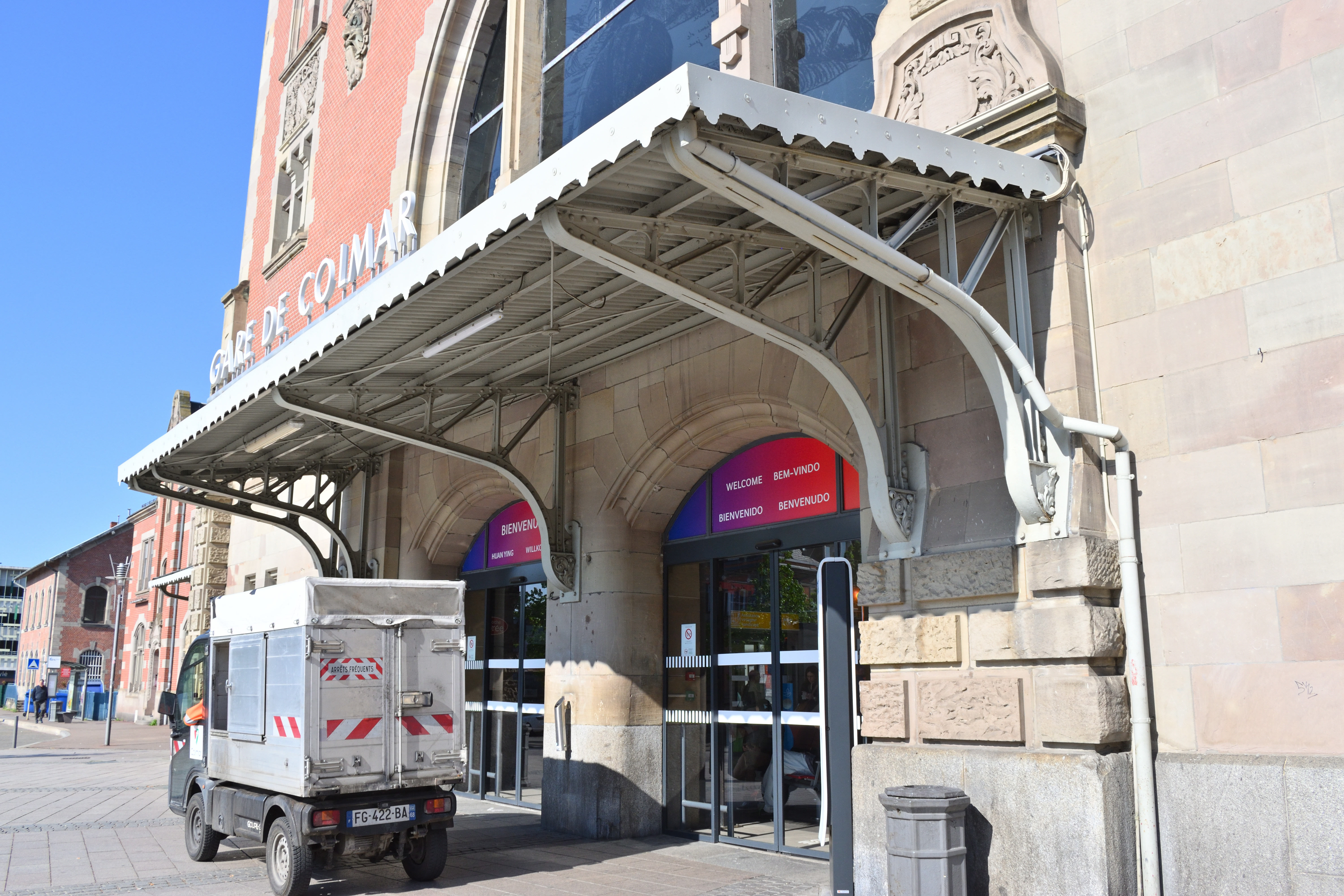 コルマールの駅はレンガ造りの建物で、正面には天井の高い大きなホールがある。 コルマールに到着した時は駅舎の中を通らずに、脇にある出口から外に出たのだが、電車に乗るときは駅舎の正面から入って切符を買い、ホームに入っていく。