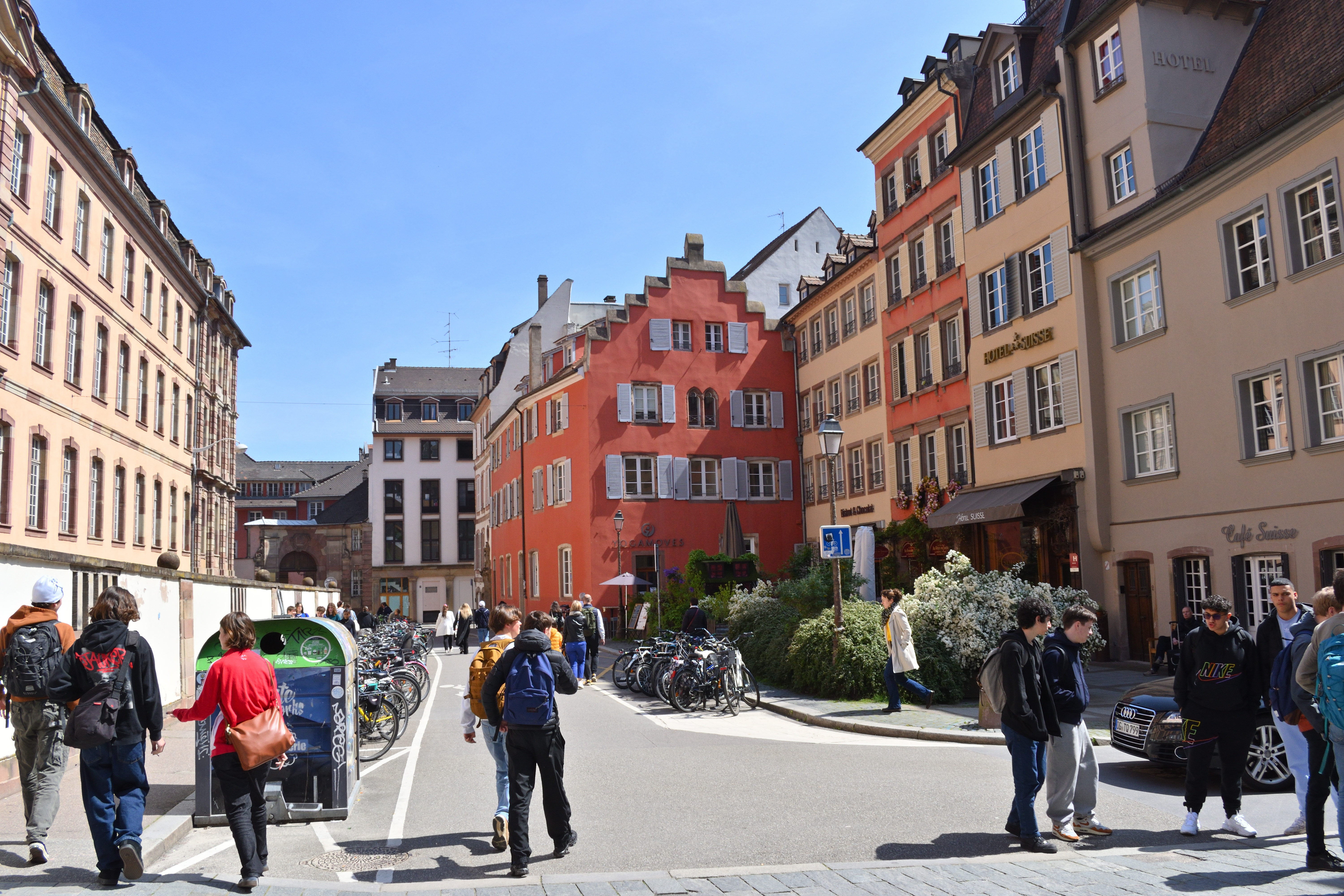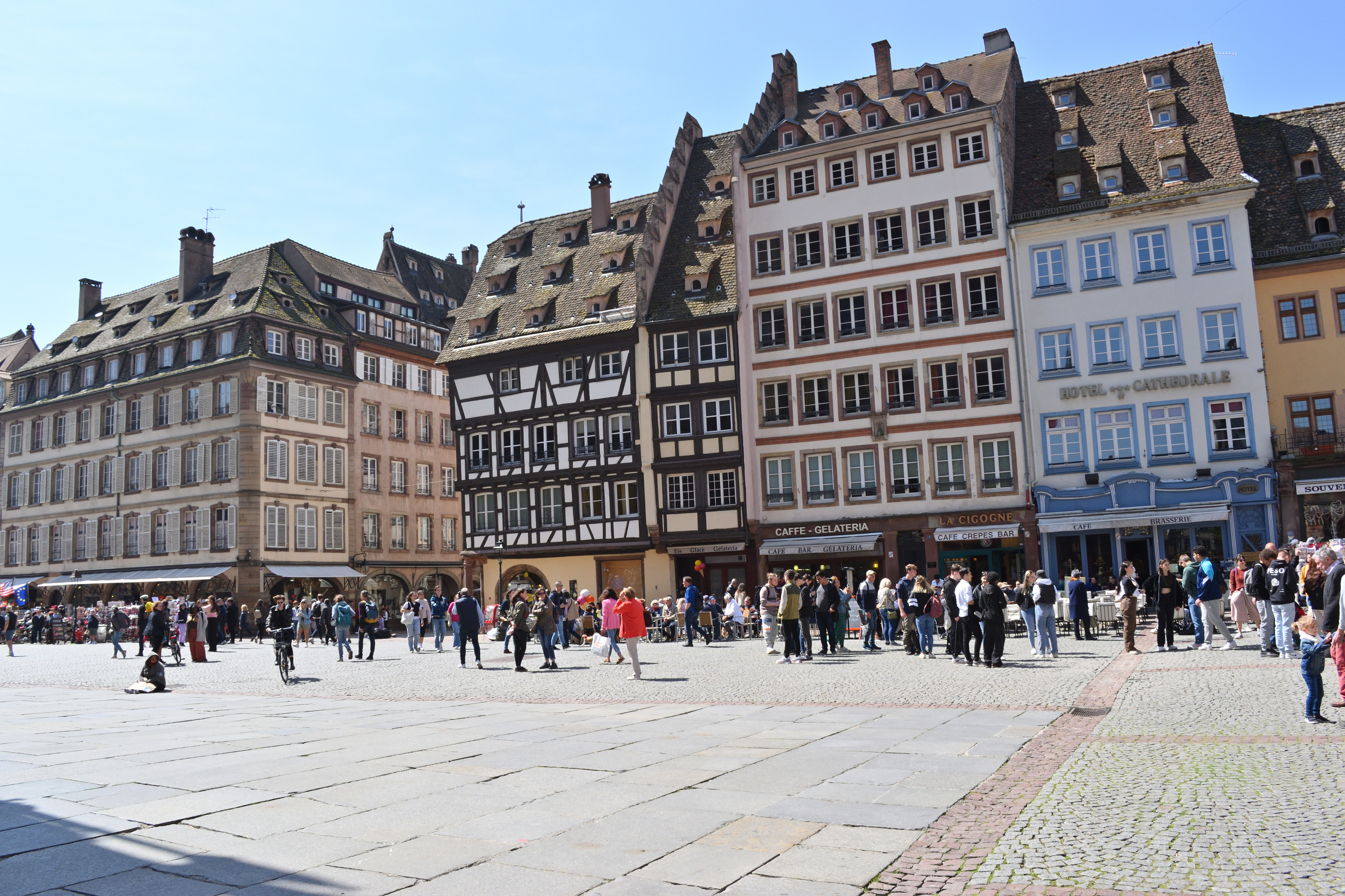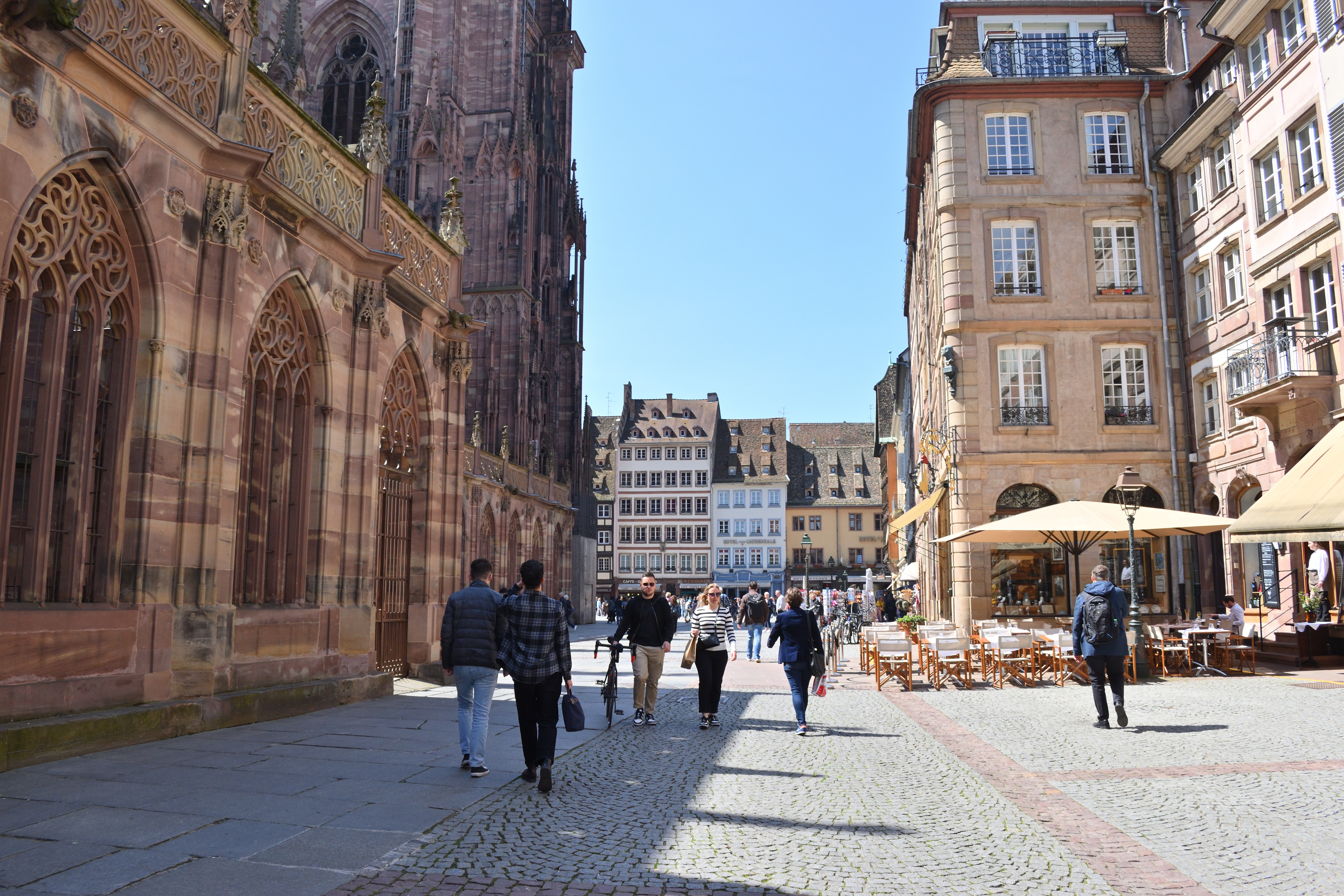 巨大なストラスブール大聖堂の周囲にある道を一周した