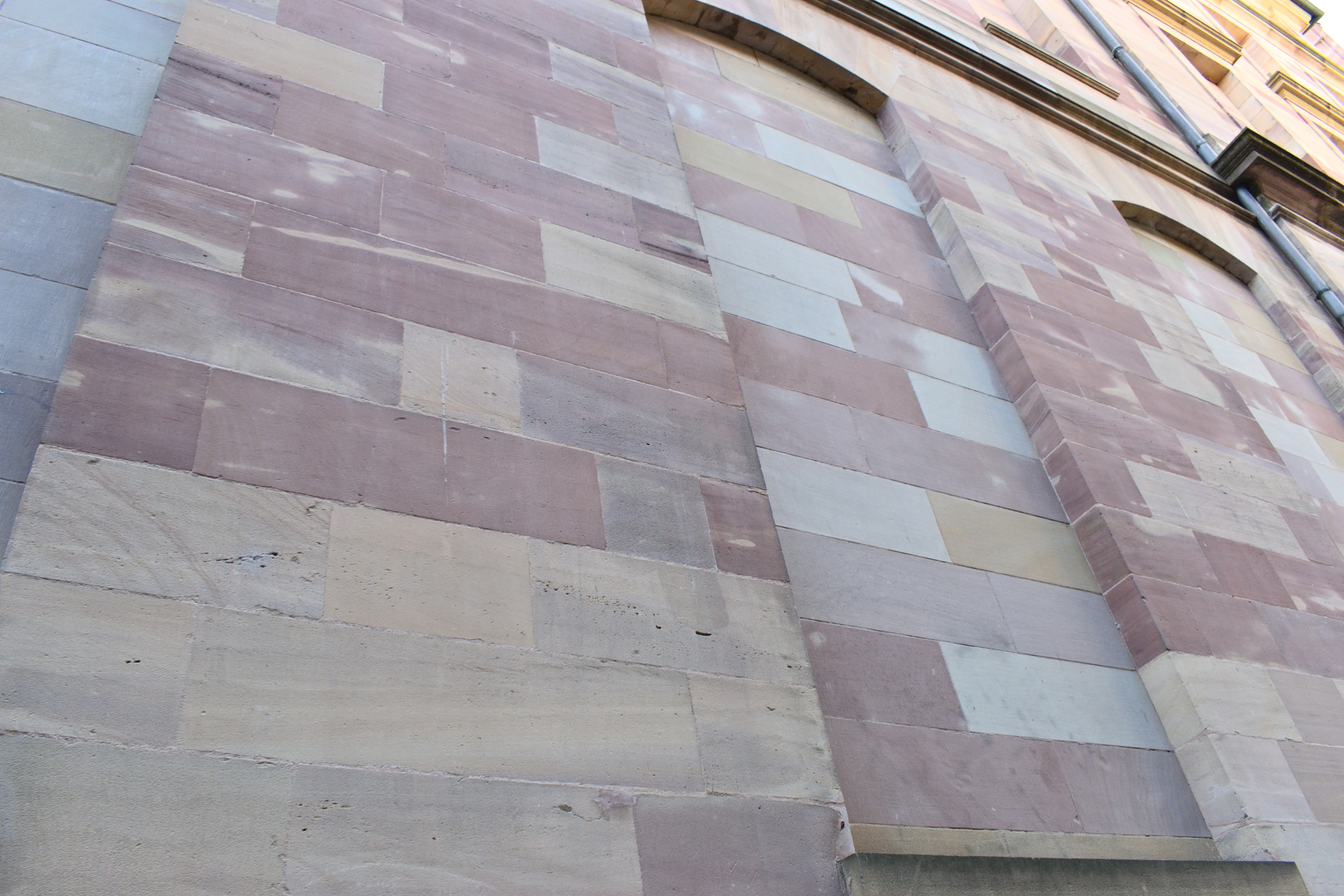左手の建物は神学校なのだが、色違いのレンガが平らに積み上げられて作られた模様が綺麗だった。