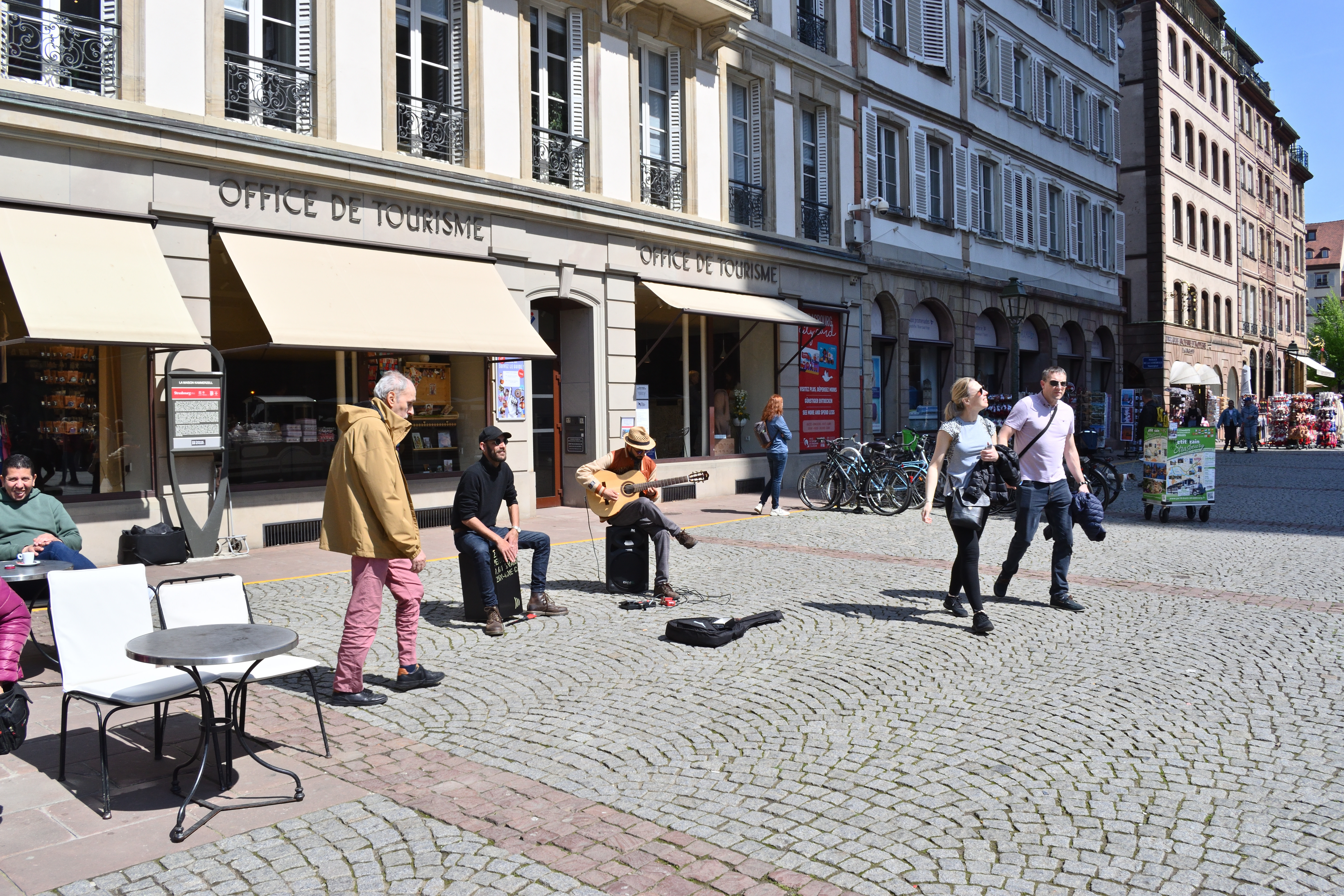 広場の左手にはストリートミュージシャンが演奏をしており、まるでお祭りのような賑やかさだった。