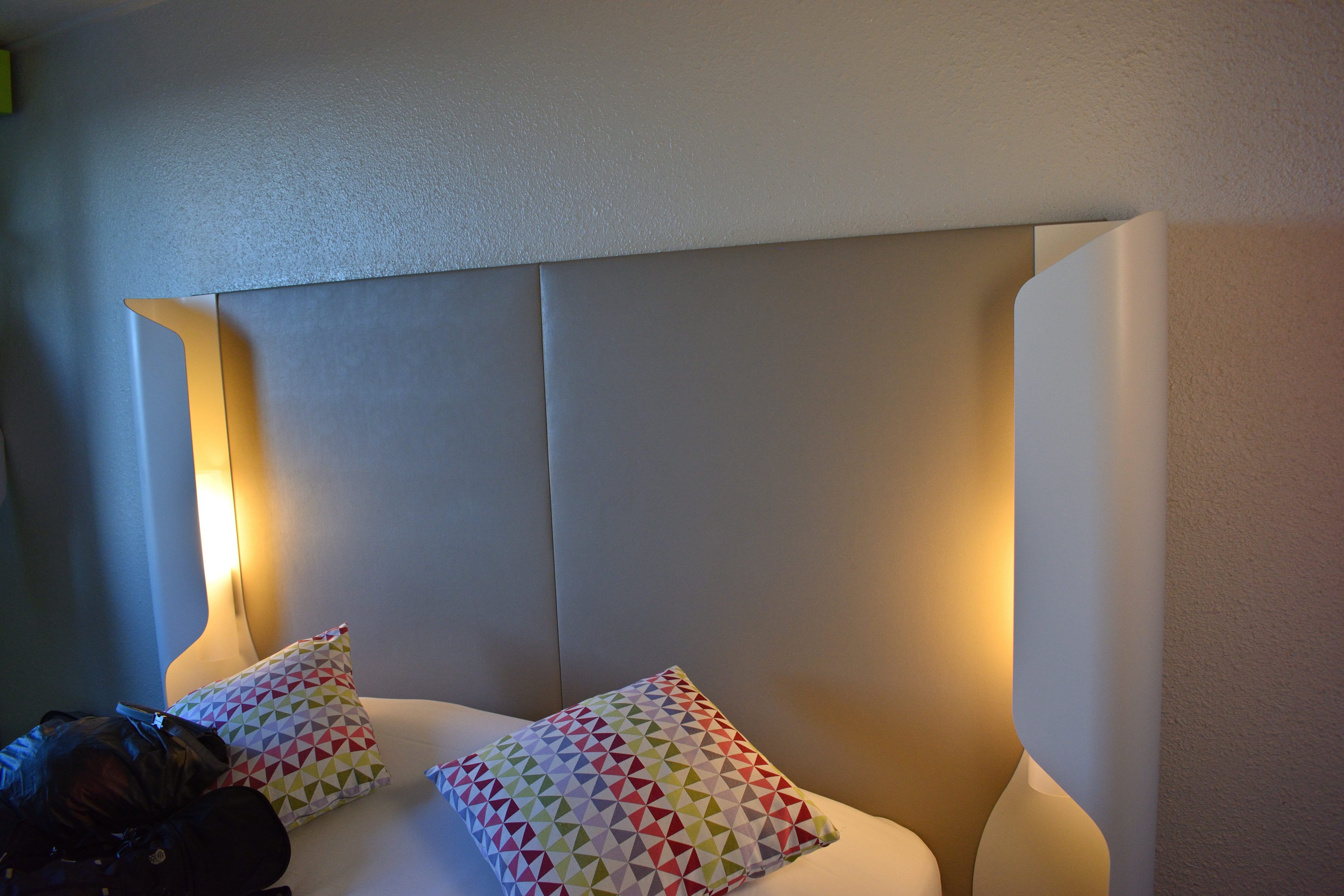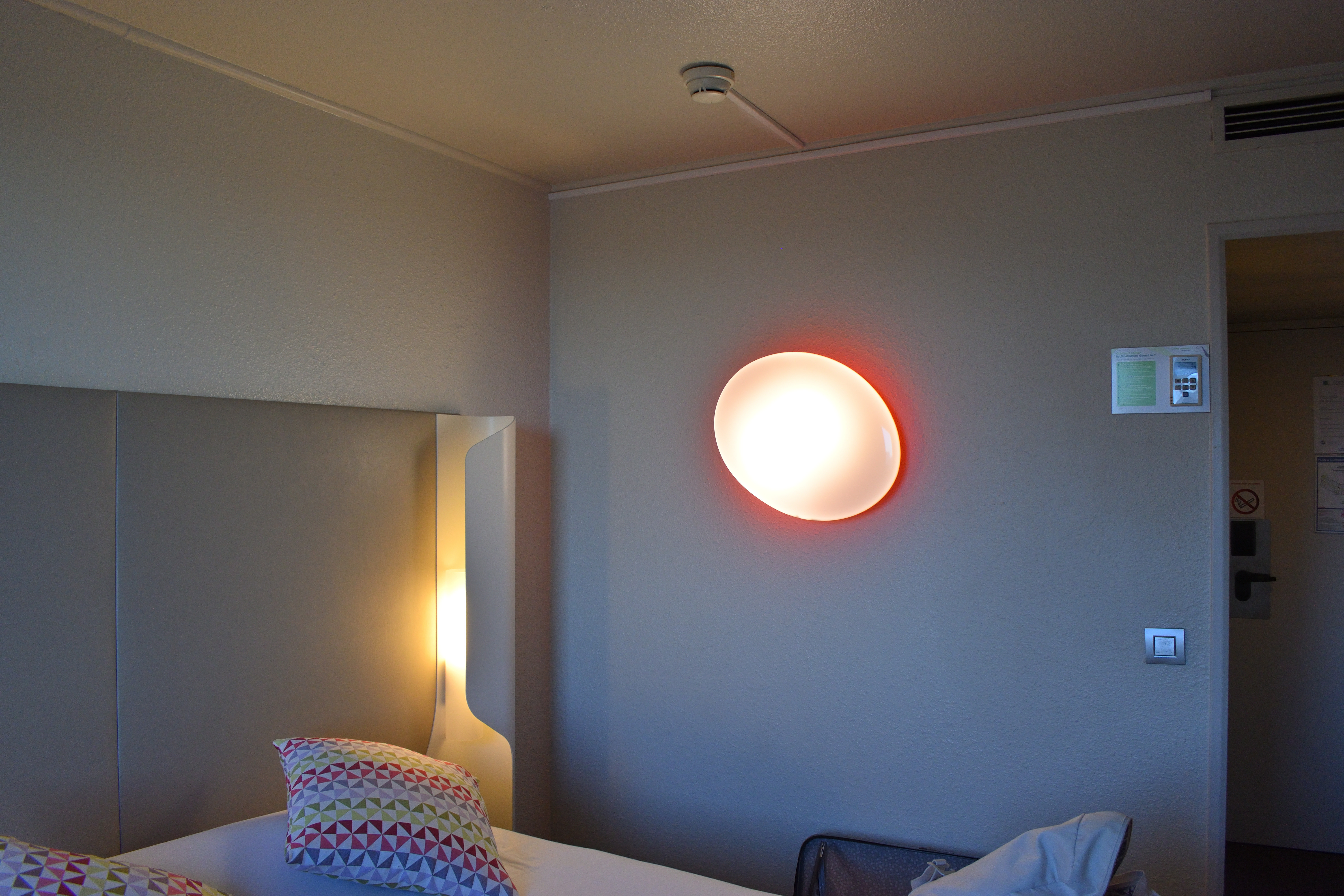 天井には照明がなく、代わりに壁に謎の楕円形の照明がついていた。