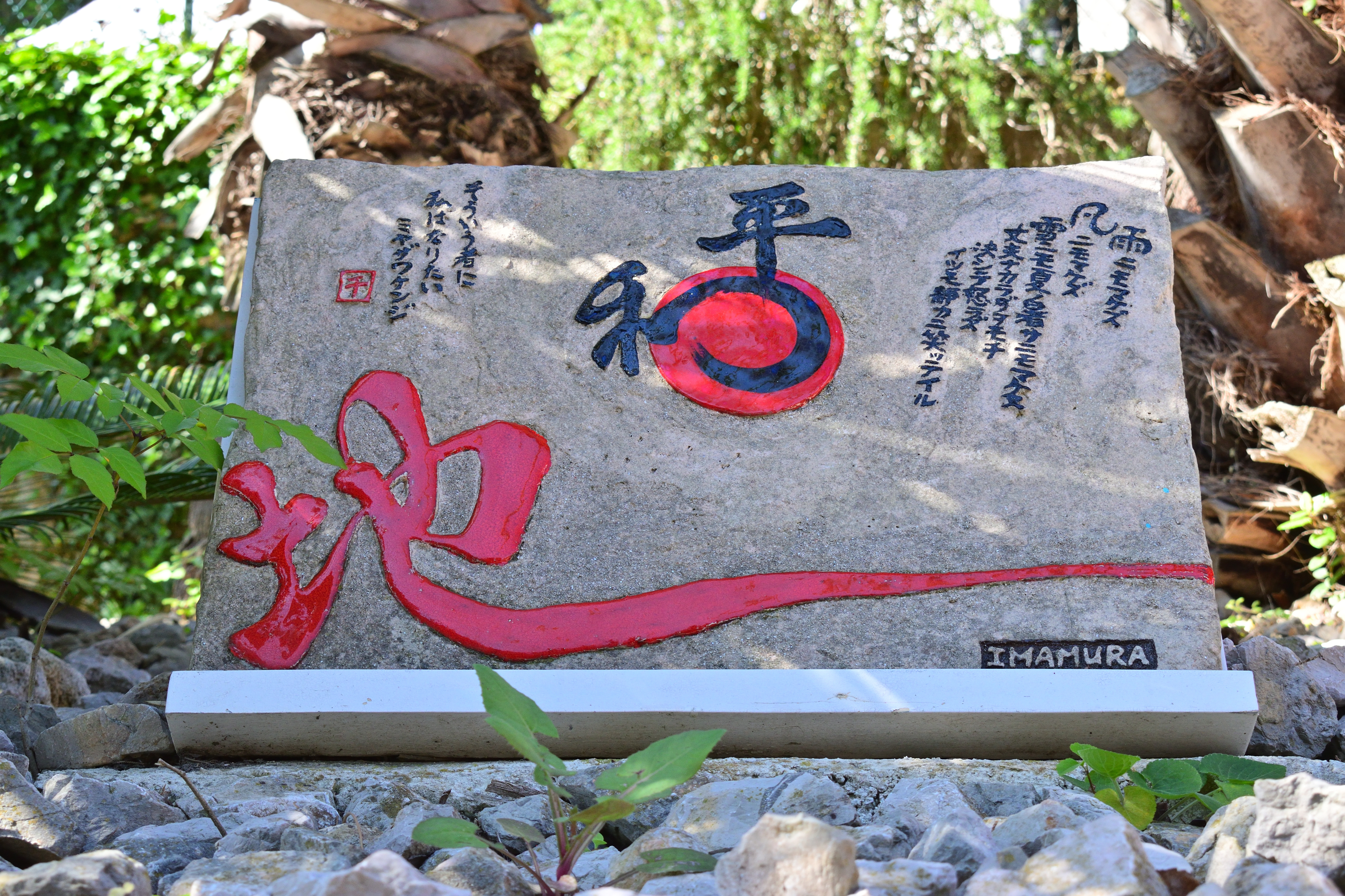 右側の石垣の上には、なんと宮沢賢治の詩が書かれた石碑が飾られていた。 まさかここで宮沢賢治と出会うとは思ってもみなかったので驚きだ。