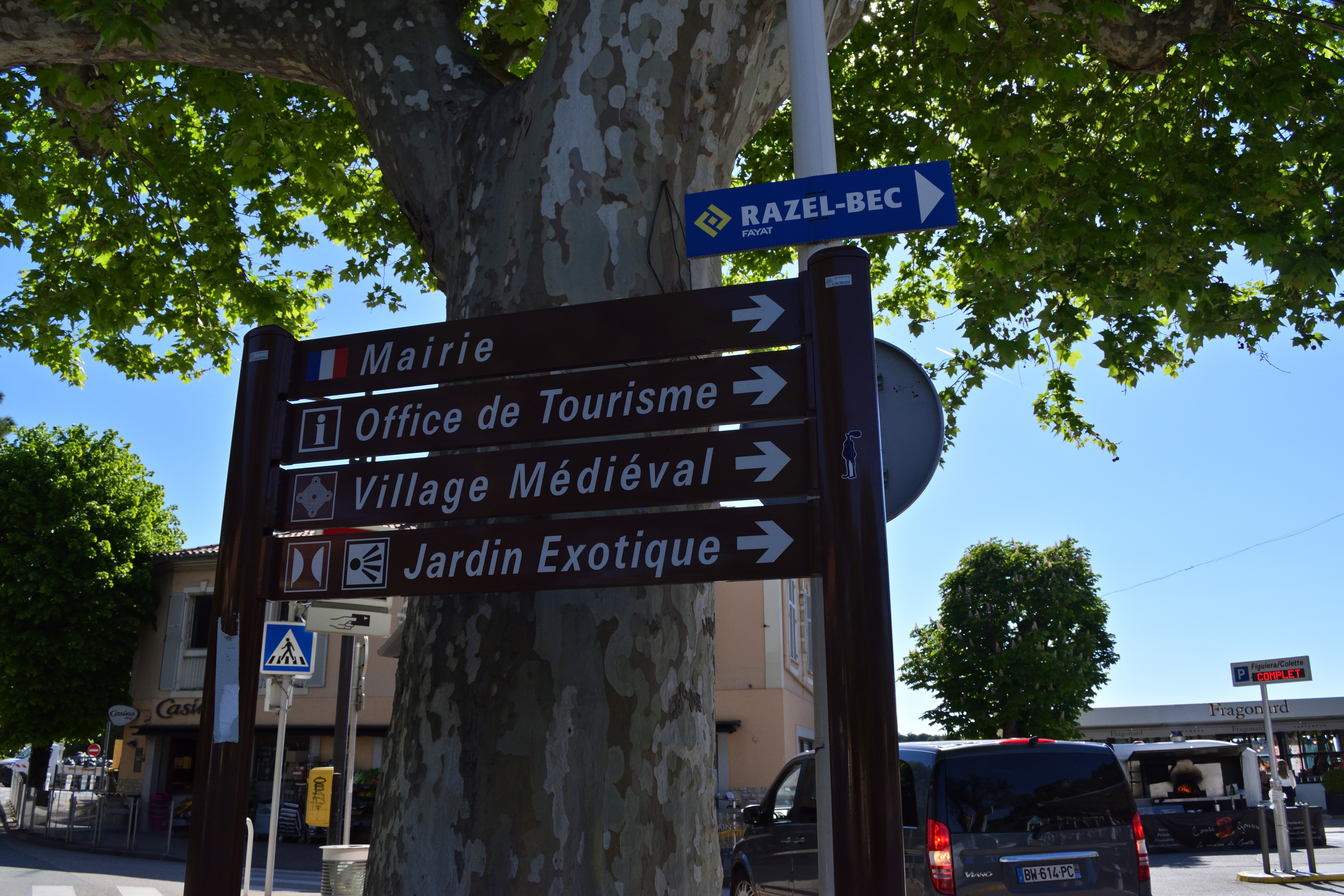 矢印の方向へ行くとエズ村の中心へ向かうことができる。