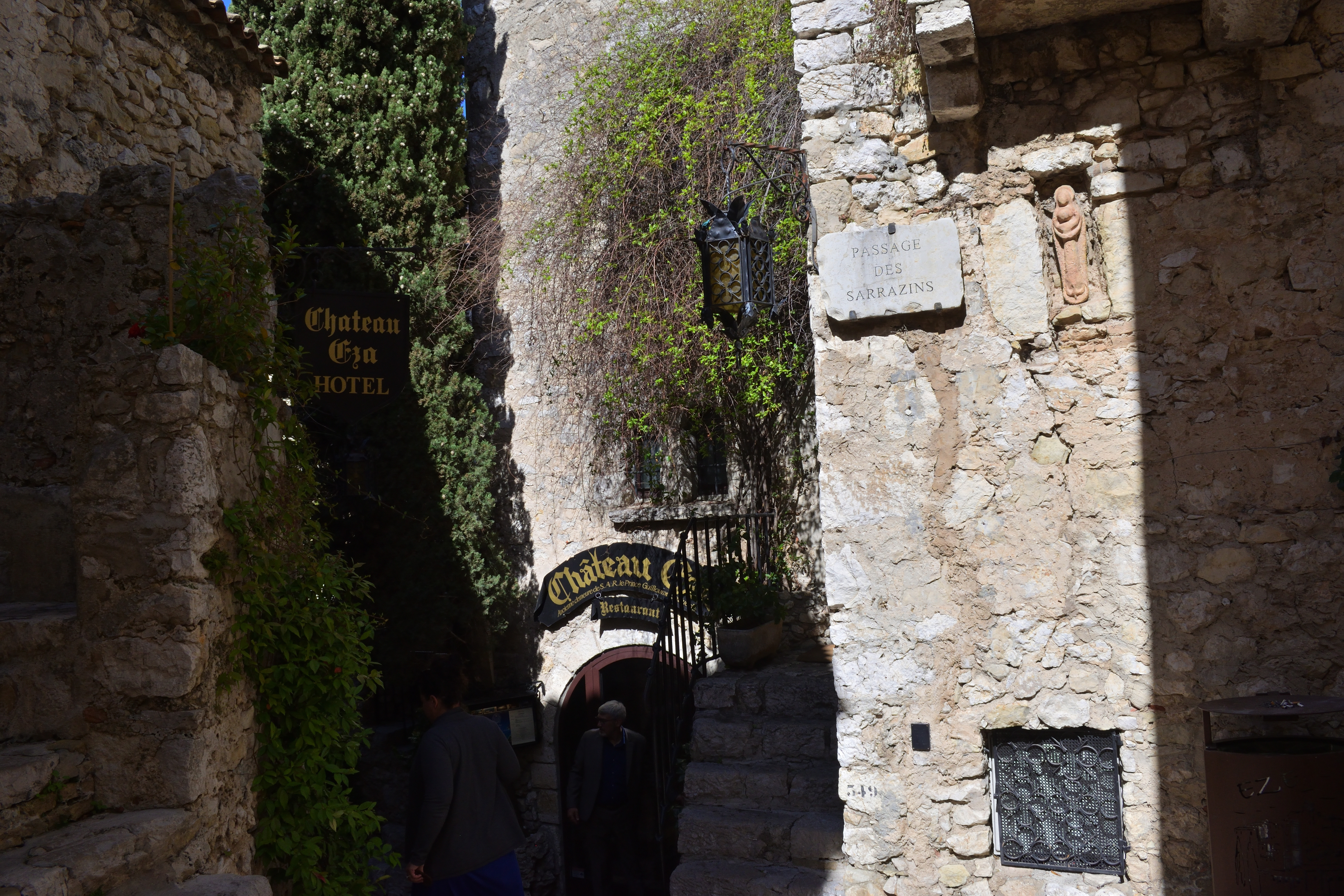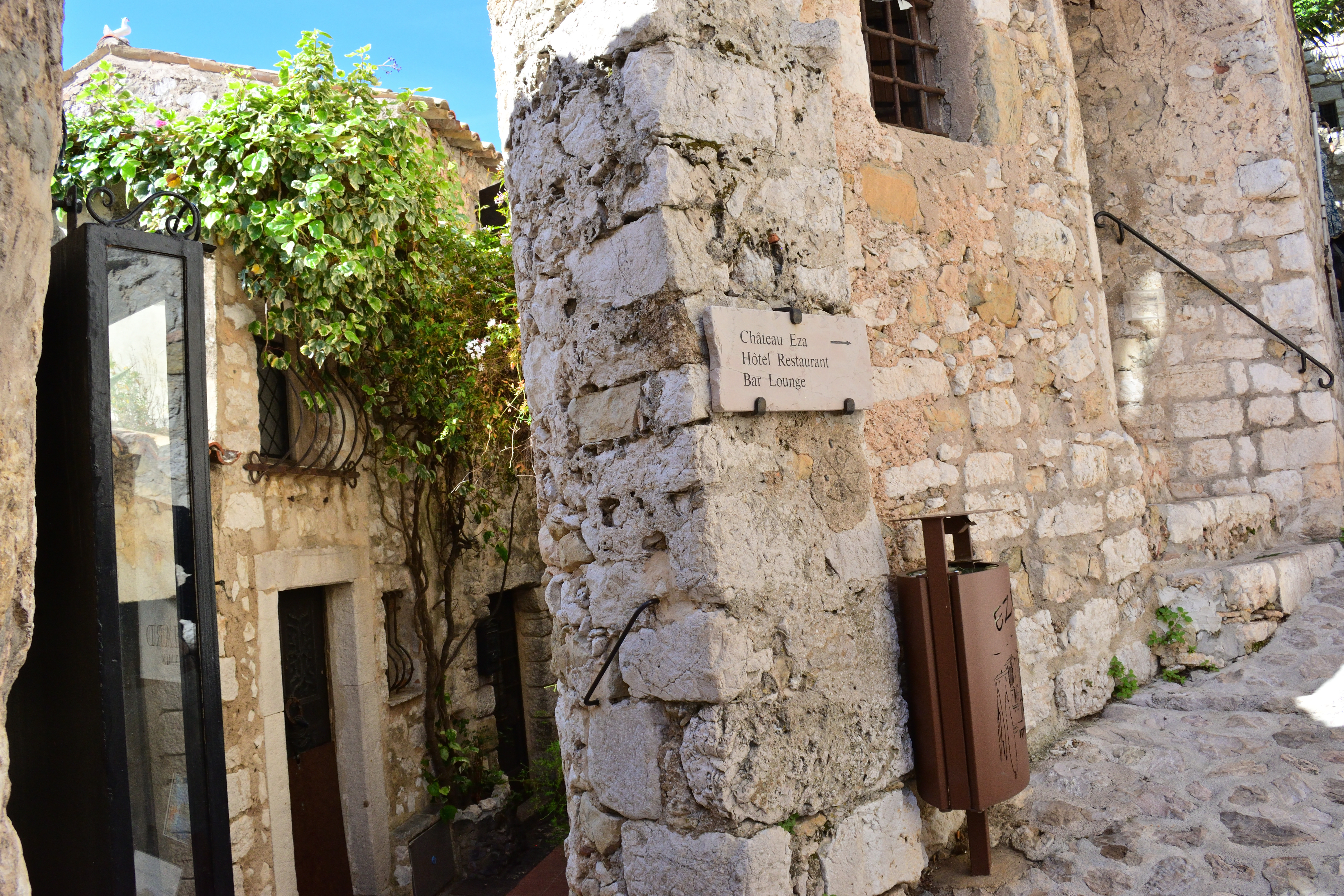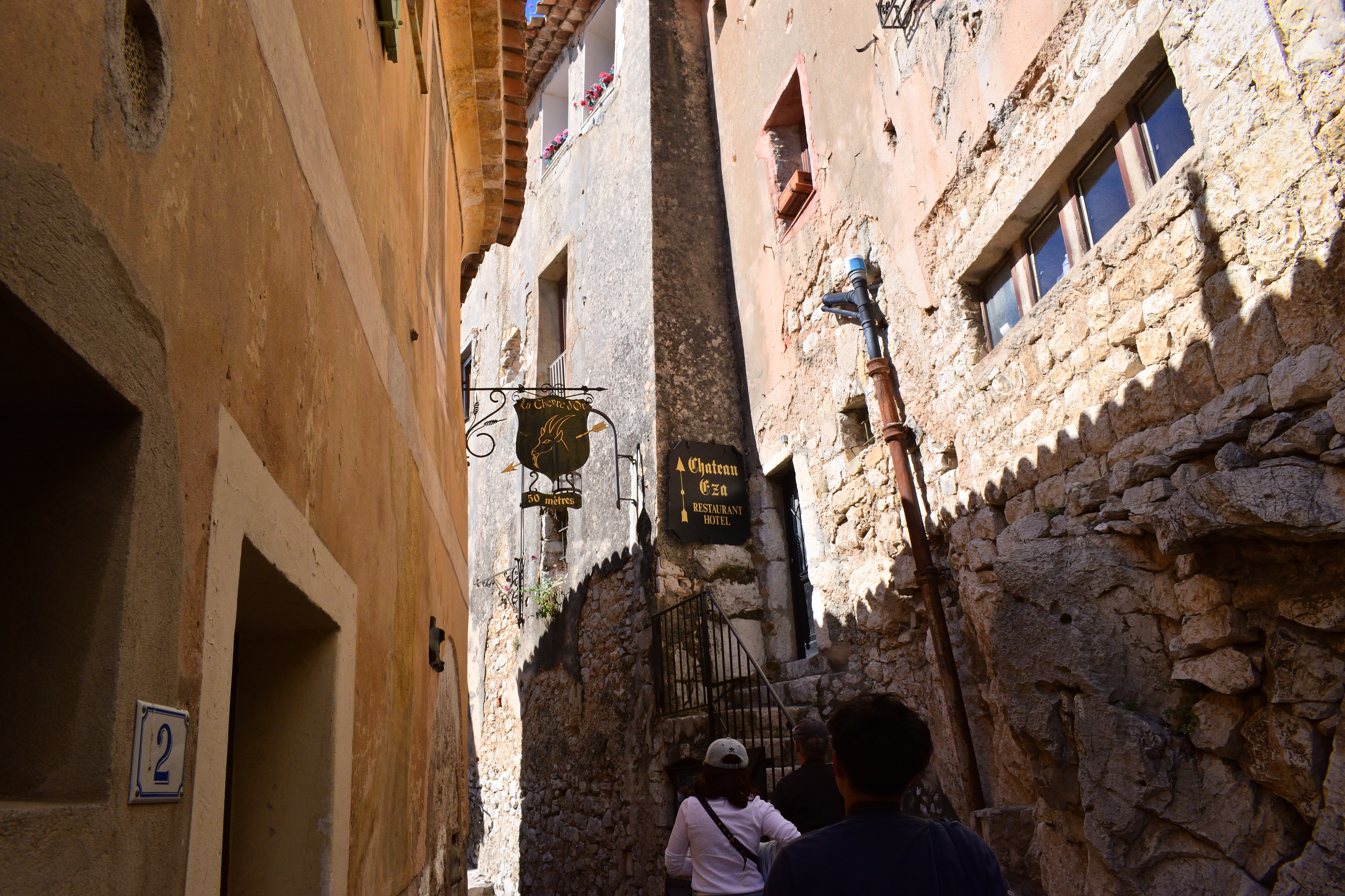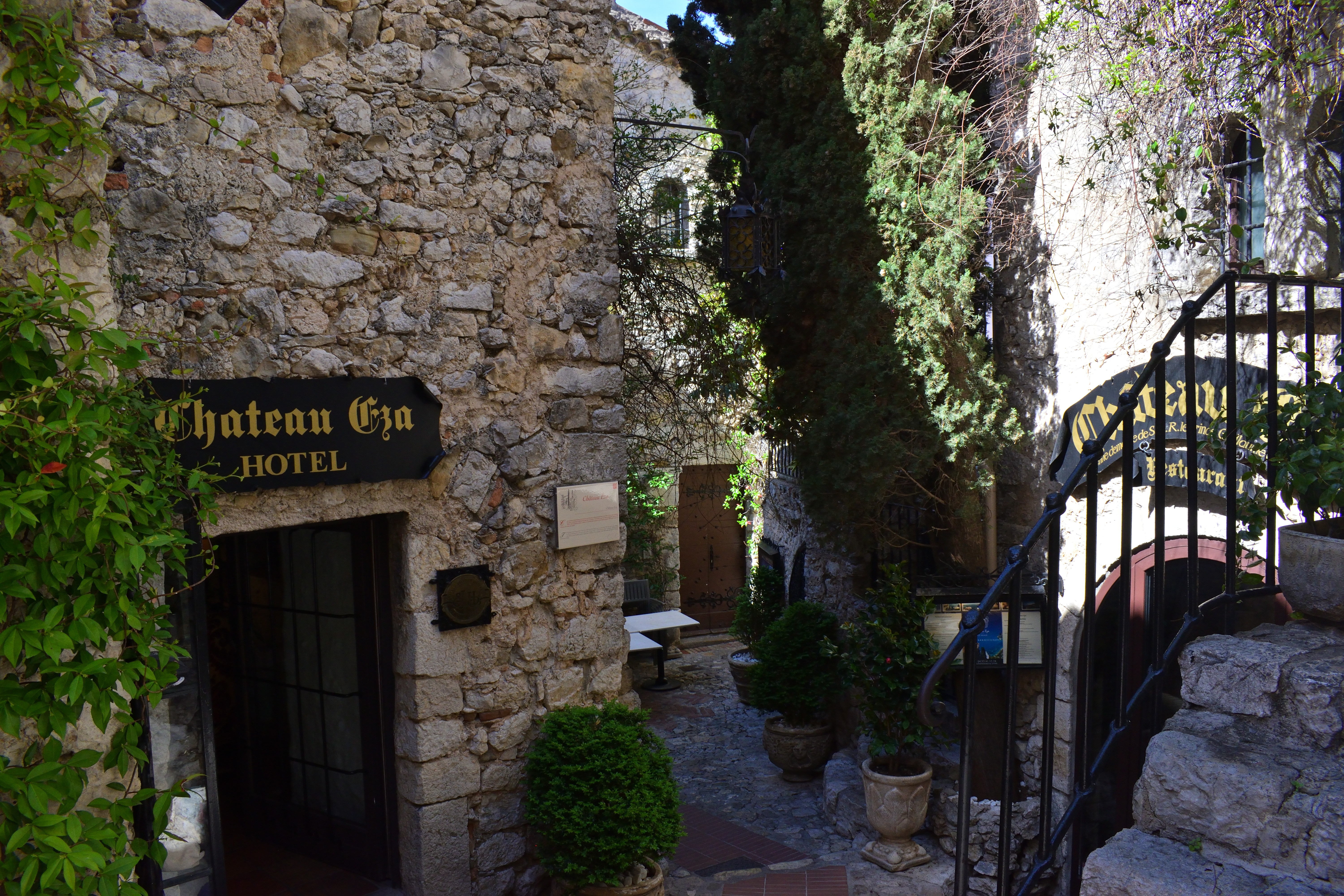 石壁に行き先表示があり、シャトー・エザと書いてあった。 明日ランチを予約している高級レストランである。 いったいどんな外観をしているのか気になったので、まずはシャトー・エザへ向かってみることにした。