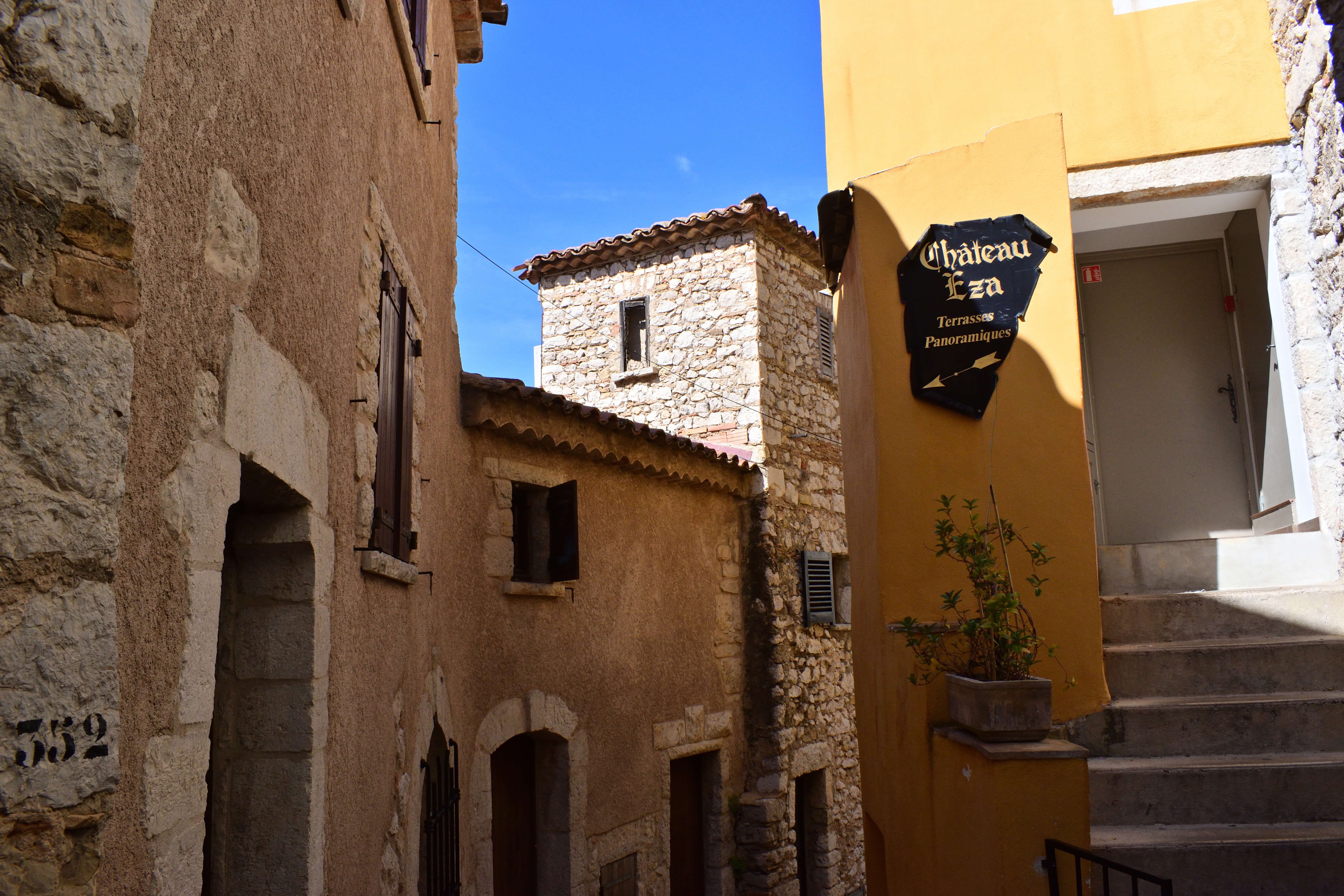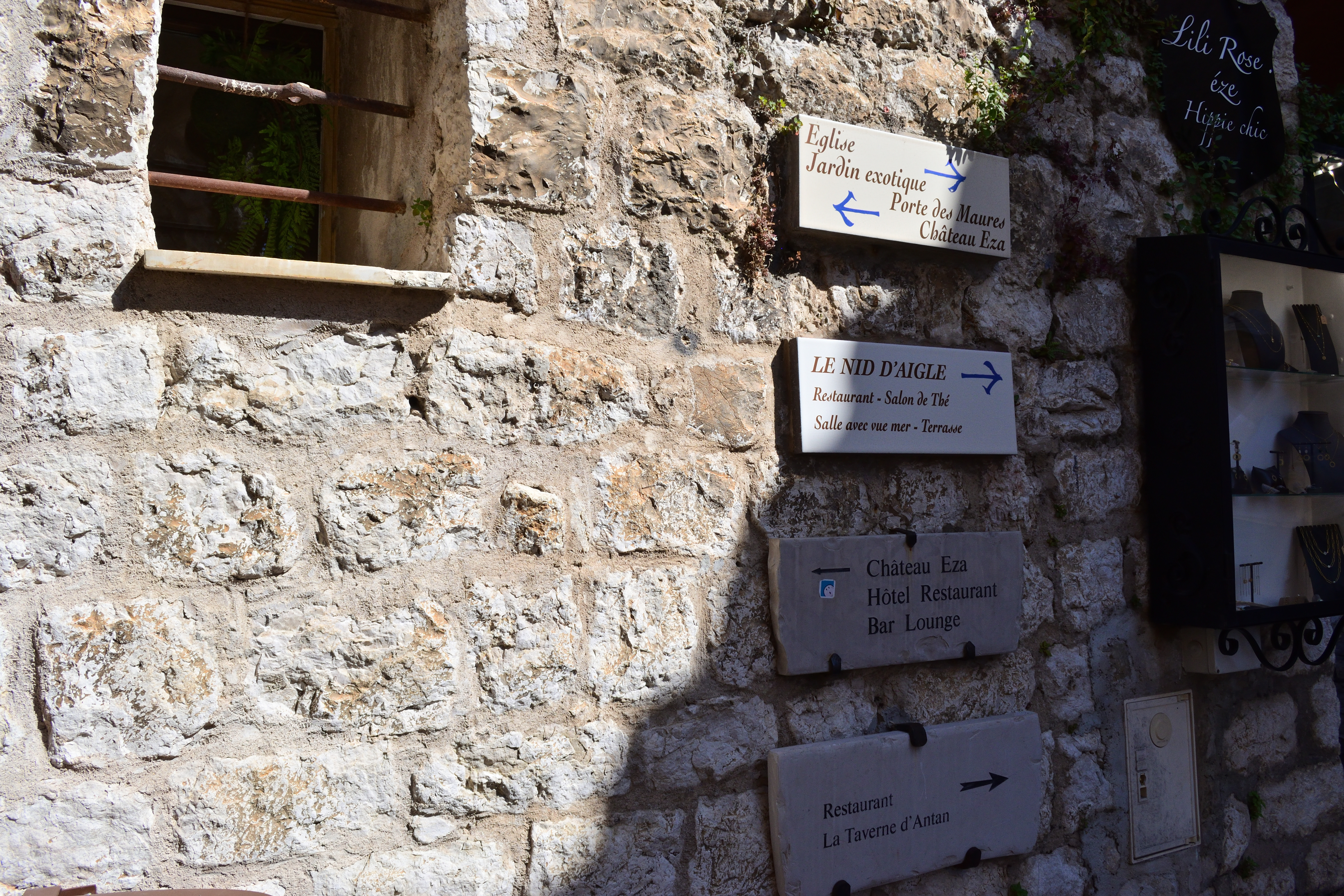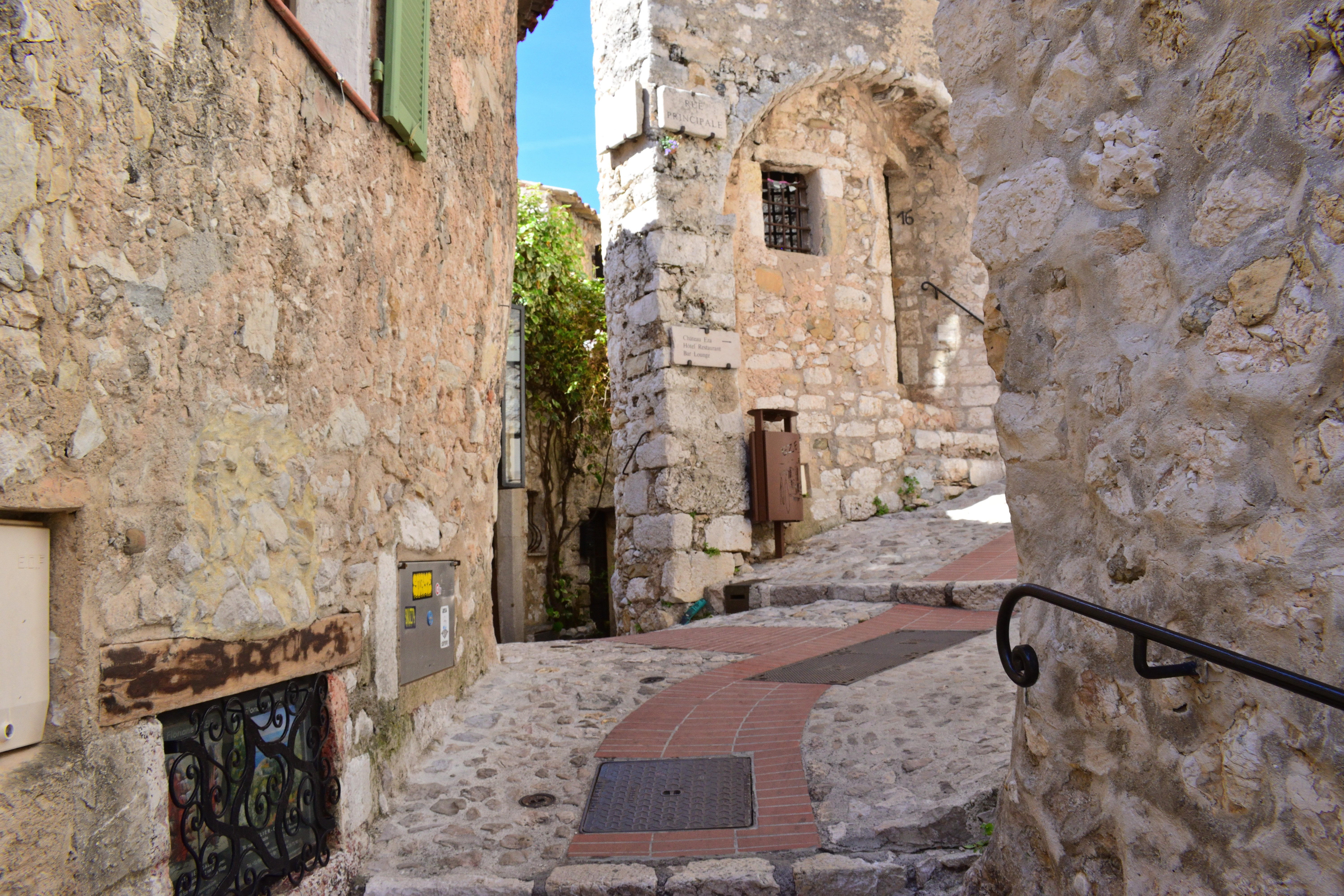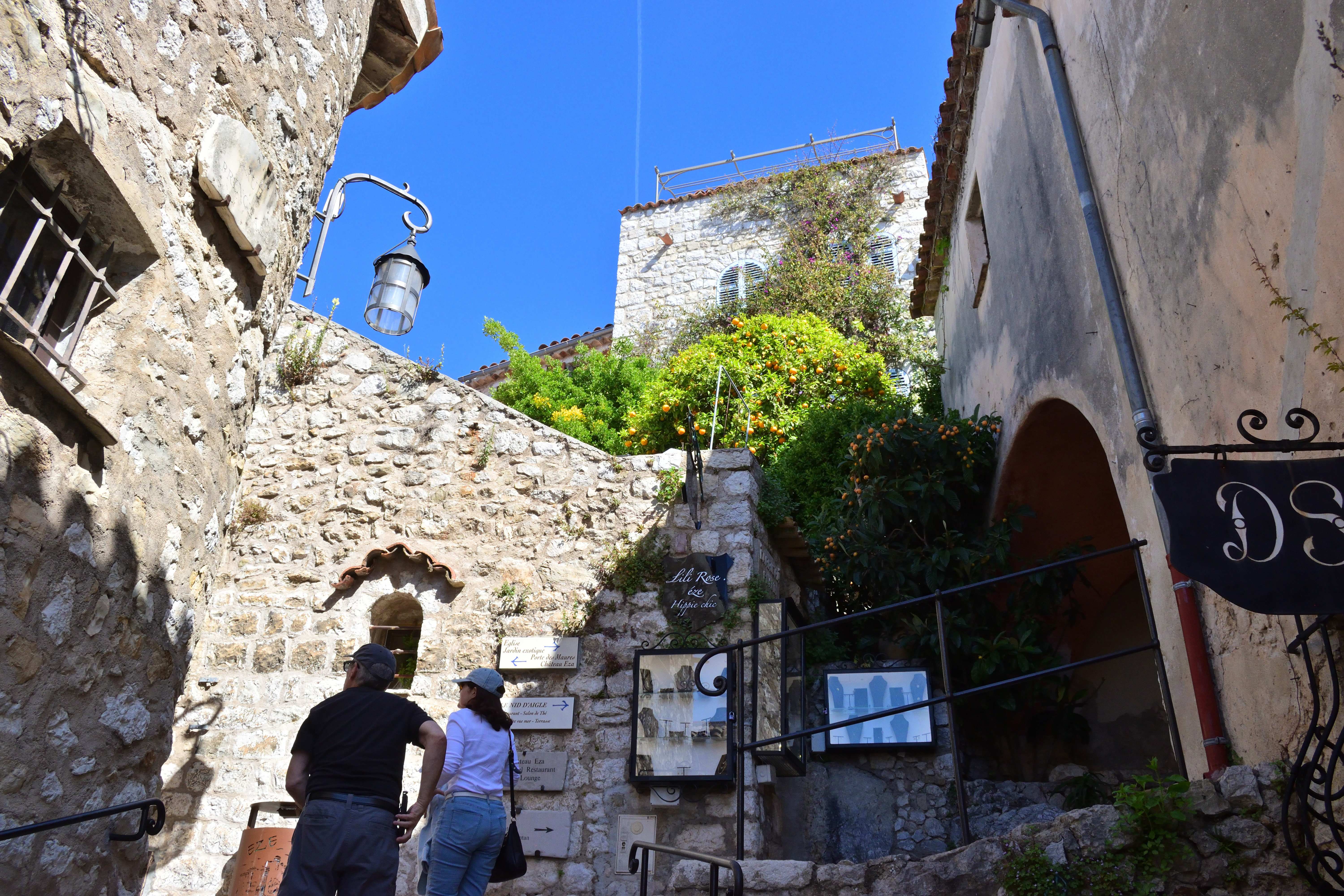 石壁に行き先表示があり、シャトー・エザと書いてあった。 明日ランチを予約している高級レストランである。 いったいどんな外観をしているのか気になったので、まずはシャトー・エザへ向かってみることにした。