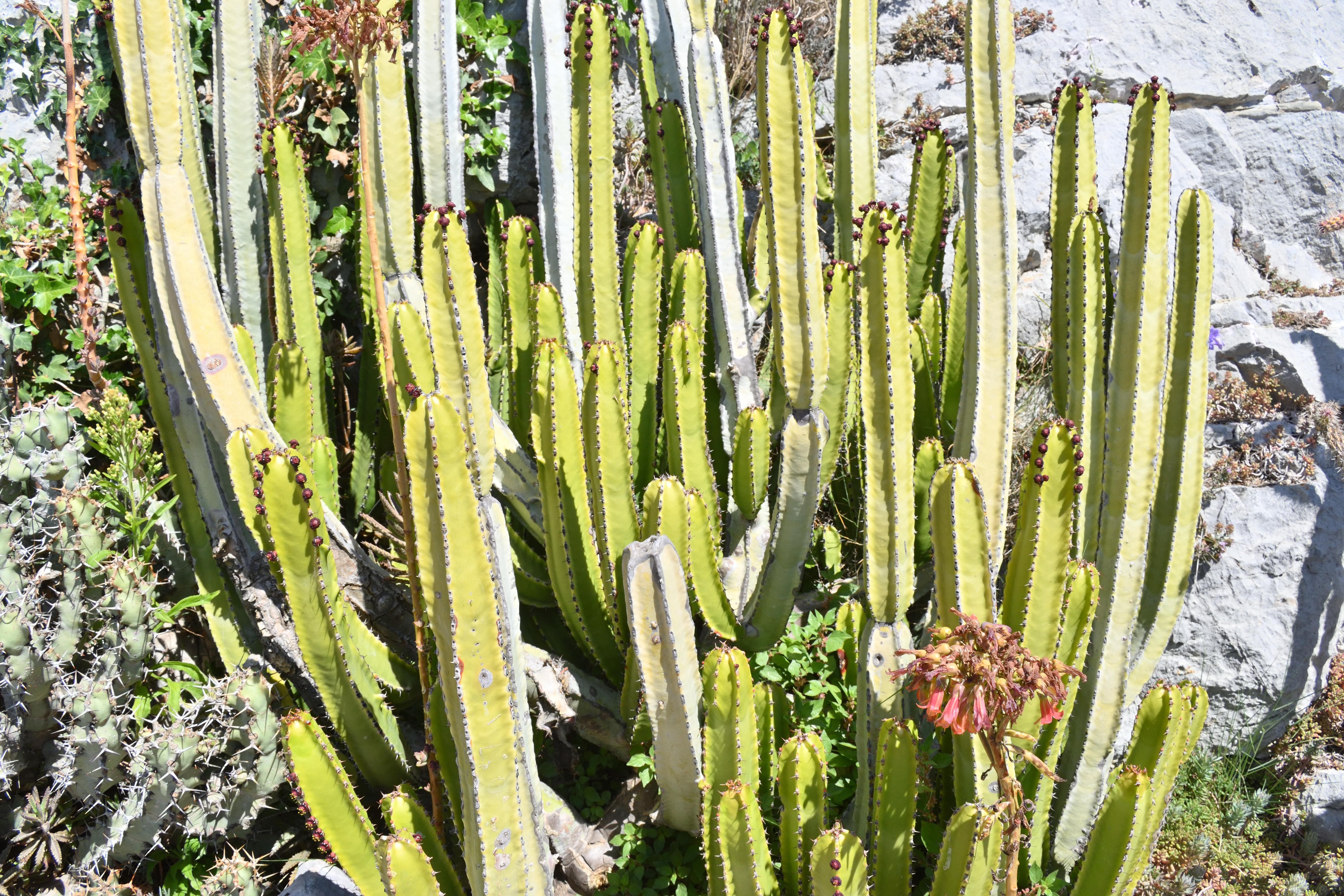 この背の高いサボテンはおそらく「エキノプシス・テルスチェッキ」という名前だ。 なんとマイナス10度まで耐えることができるということで、とてもたくましい。