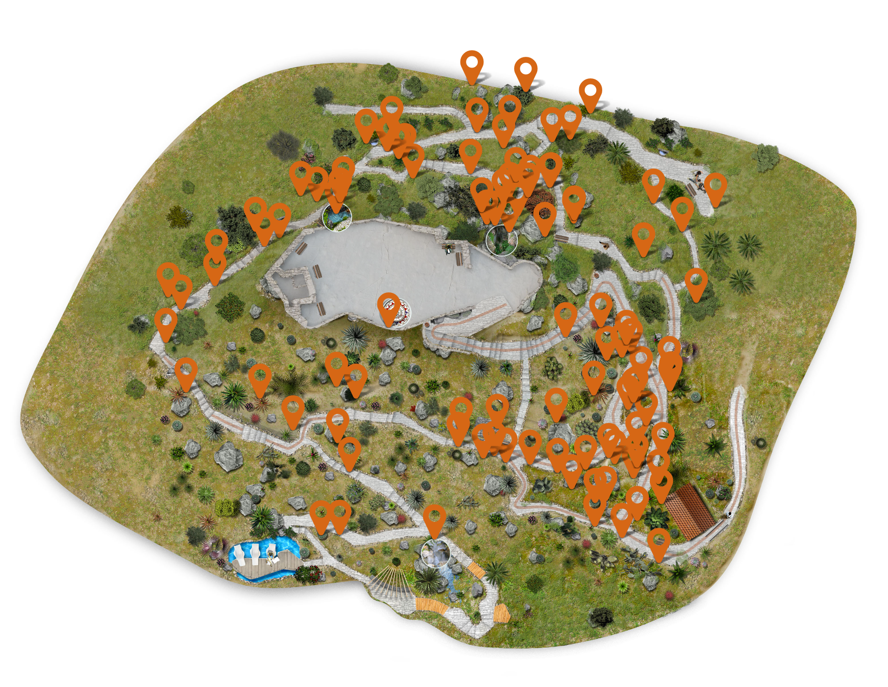 植物園の頂上で景色を楽しんだ後は、植物園の中を歩いて鑑賞することにした。 植物園は山頂をぐるりと囲むように作られ、遊歩道で一周できるようになっている。
