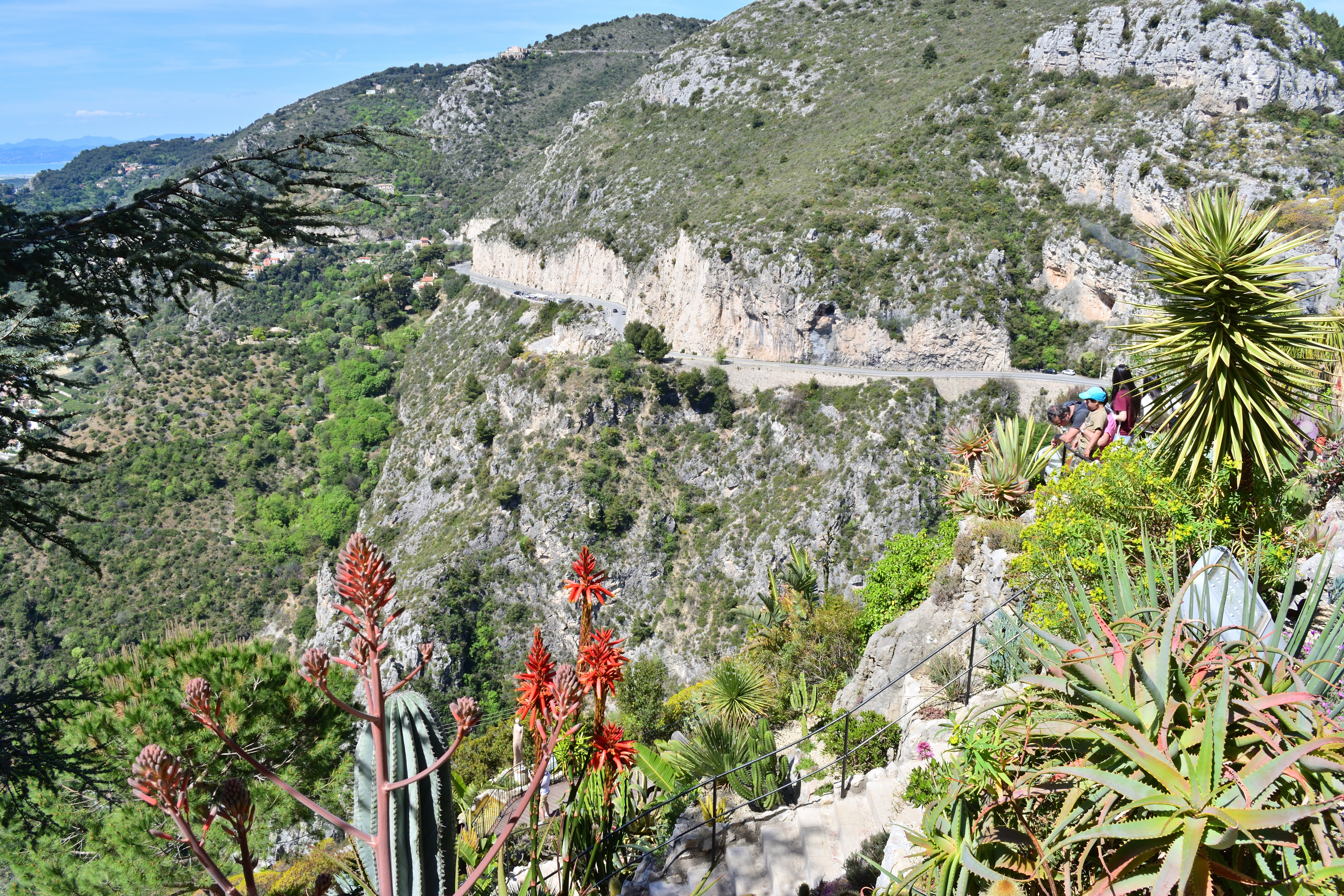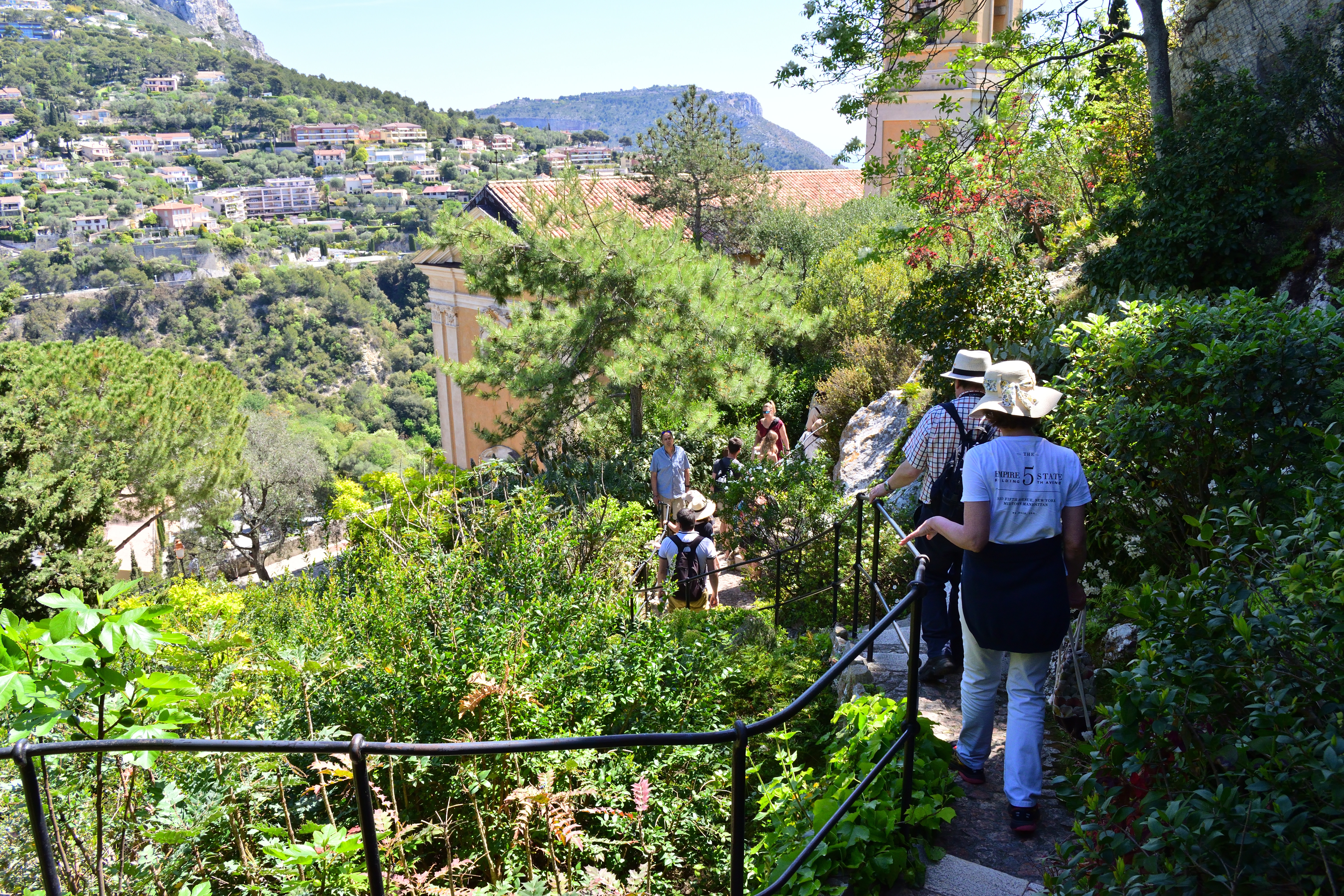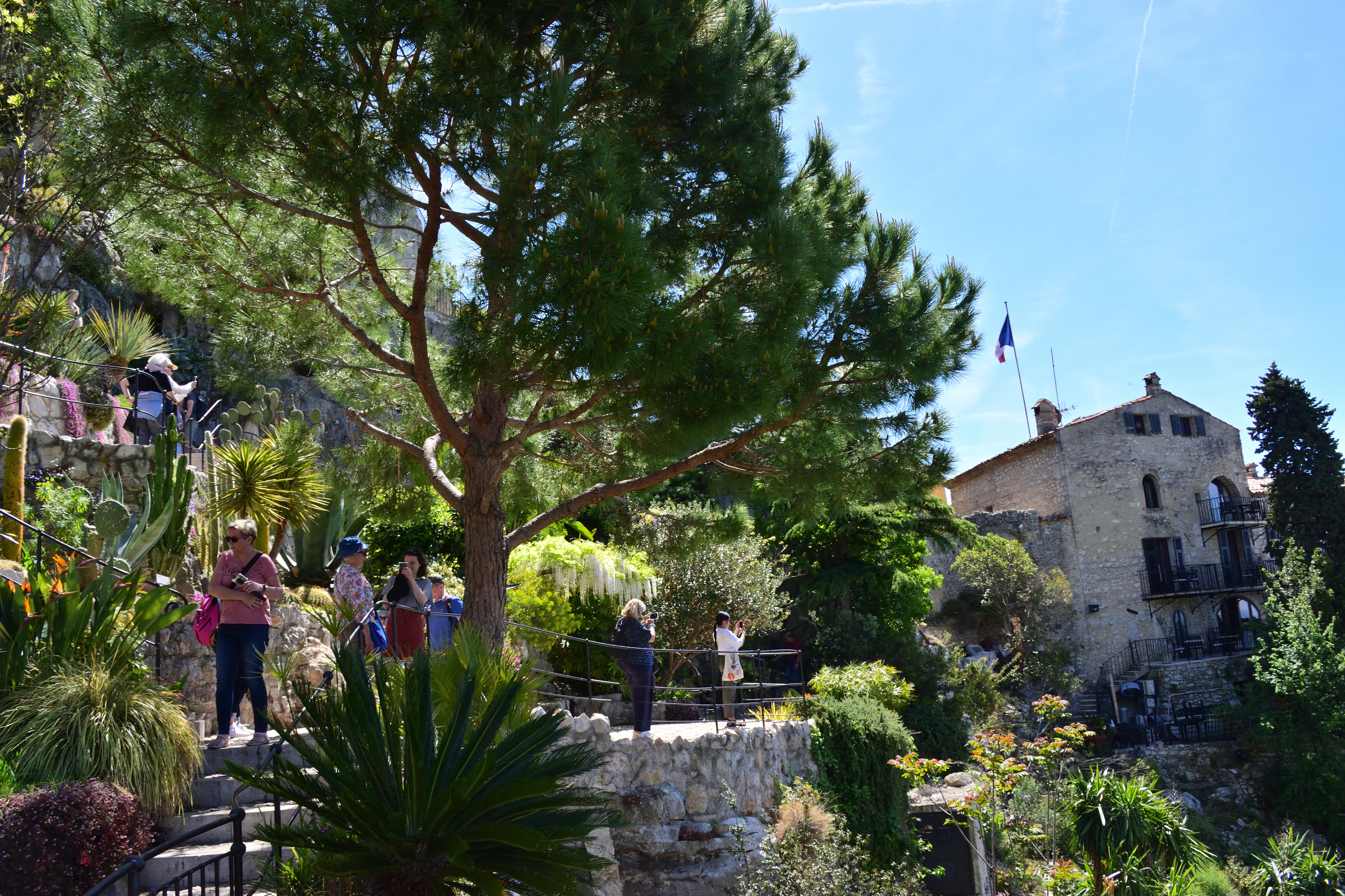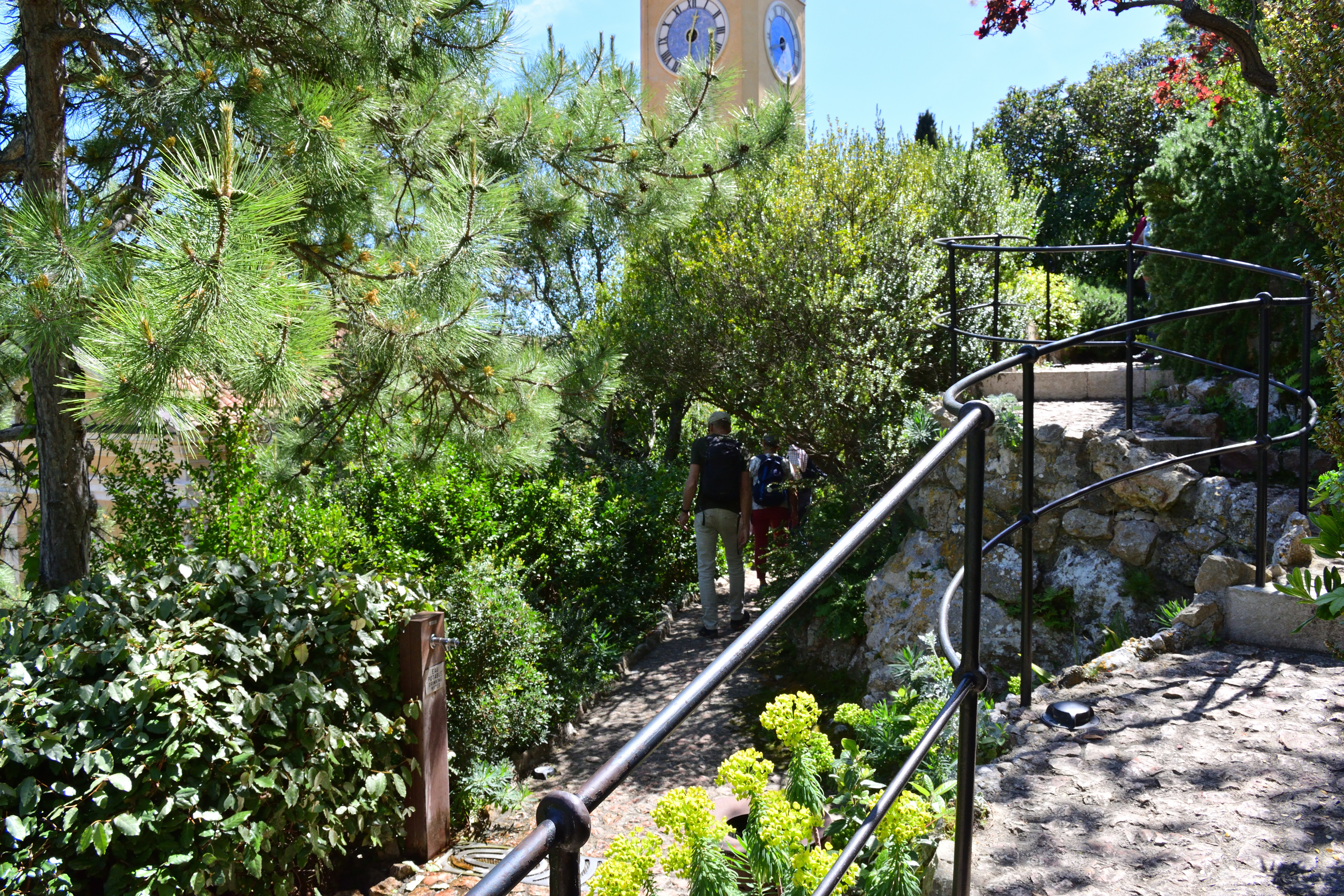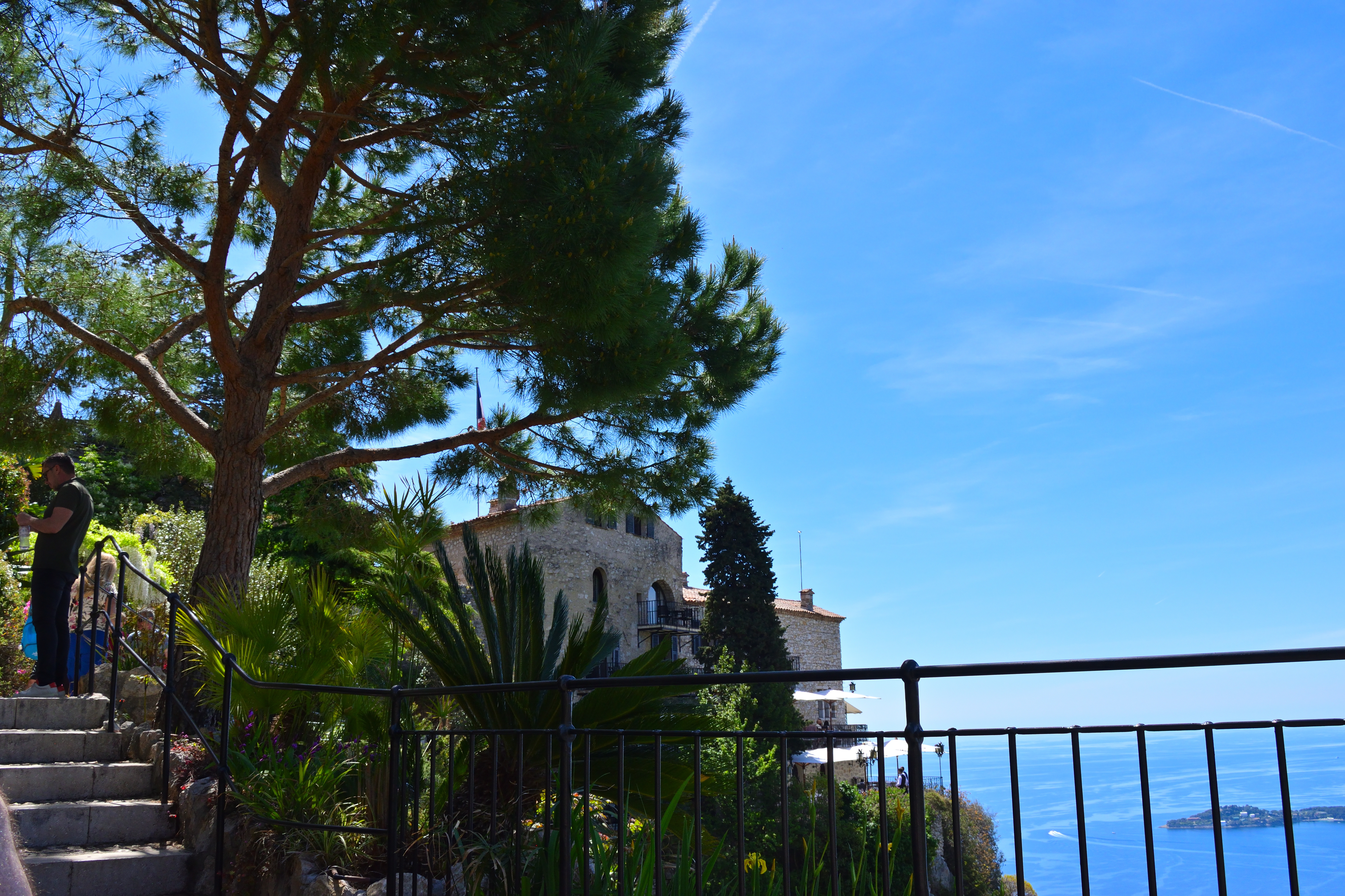 目の前に見えている白いテラスがあるところがシャトー・エザだ。 頂上から見た時よりもずっと近くに見えた。