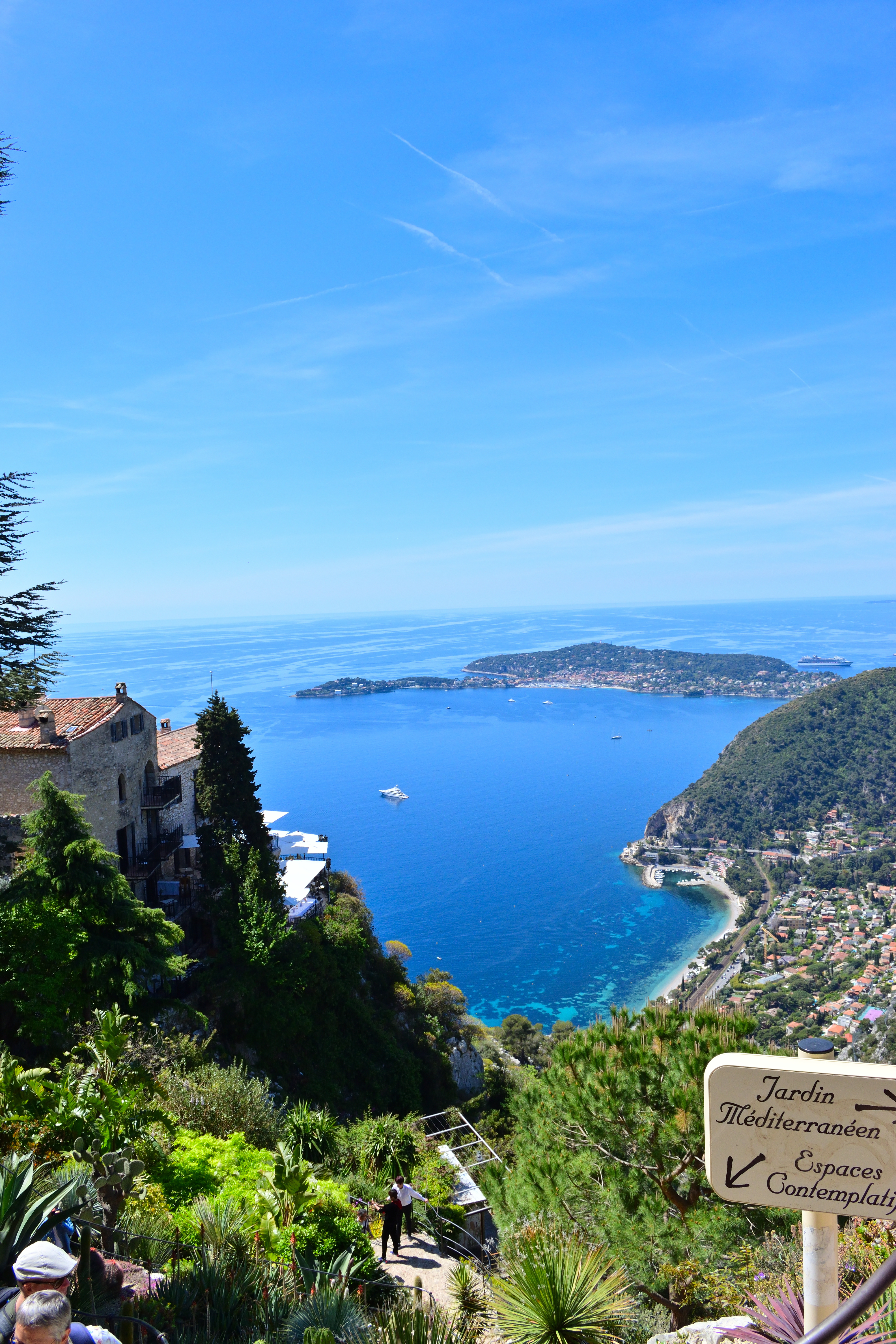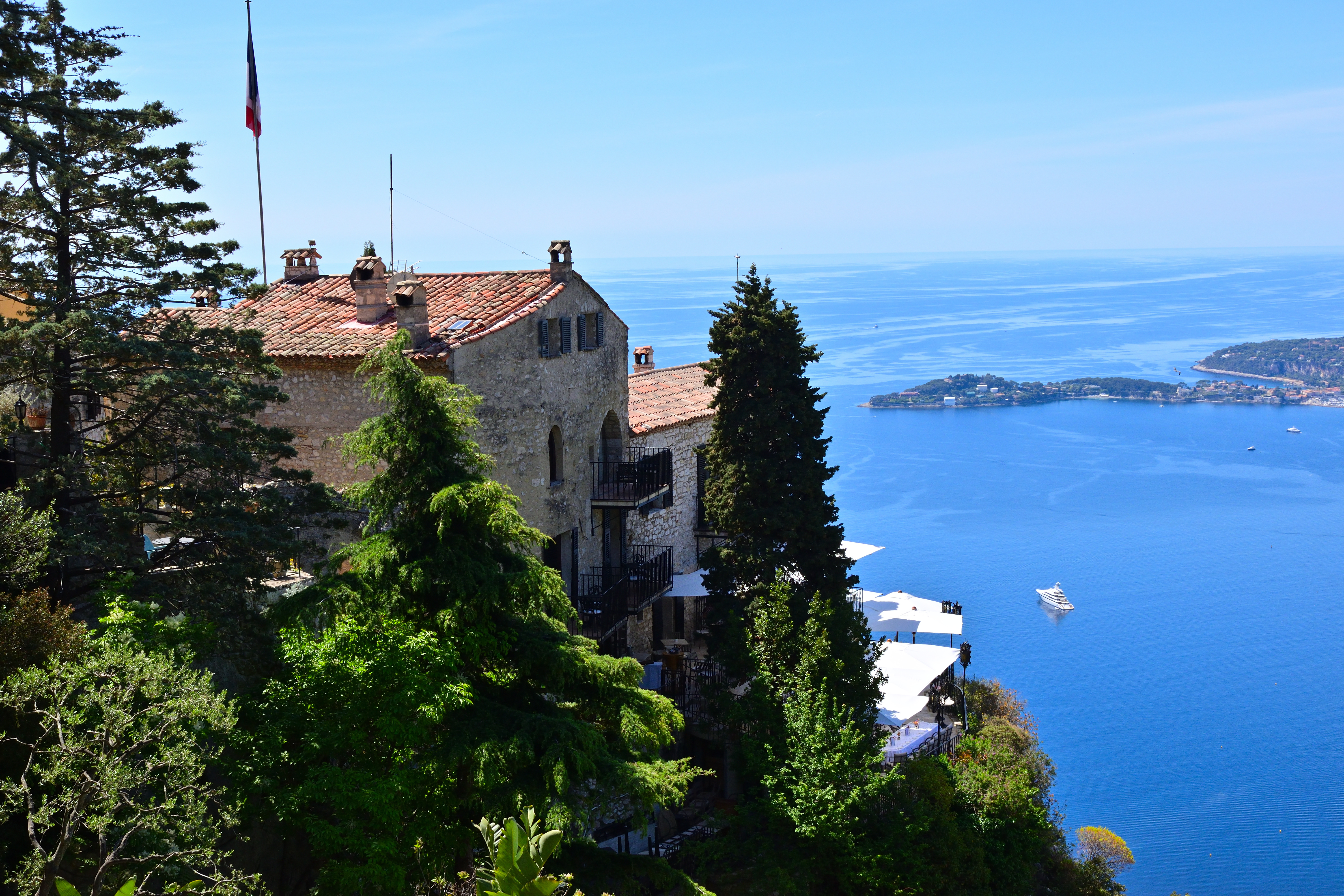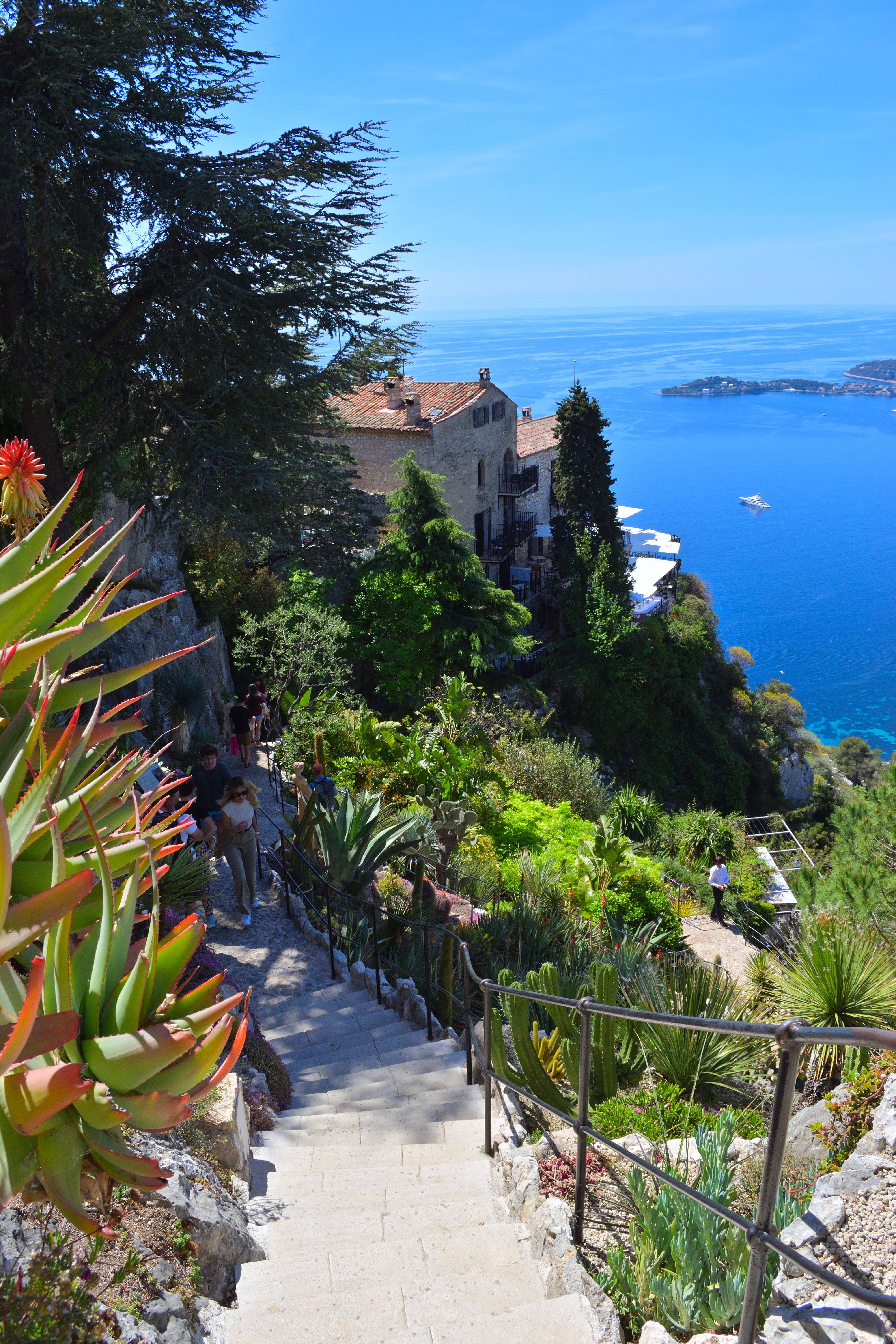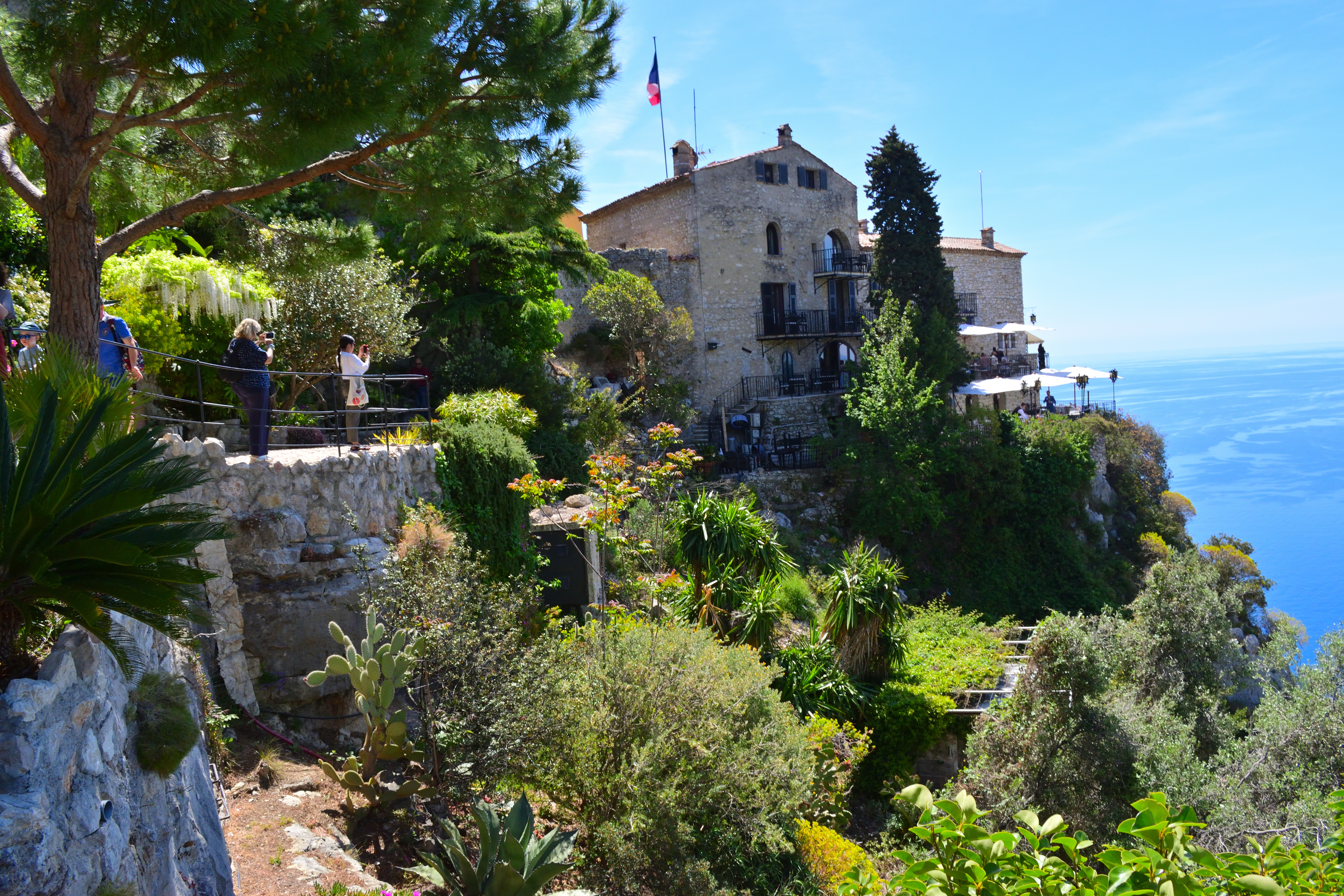 目の前に見えている白いテラスがあるところがシャトー・エザだ。 頂上から見た時よりもずっと近くに見えた。