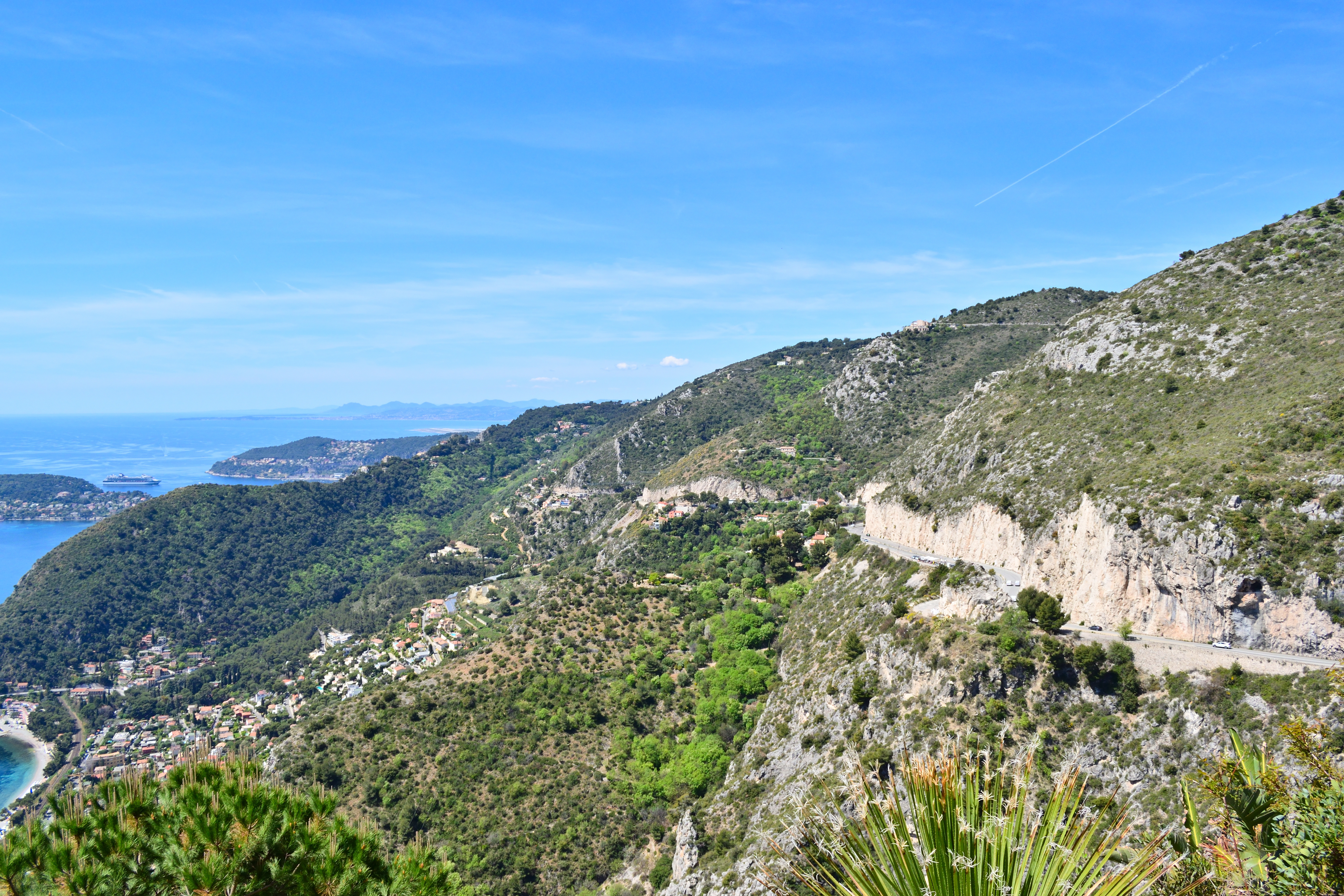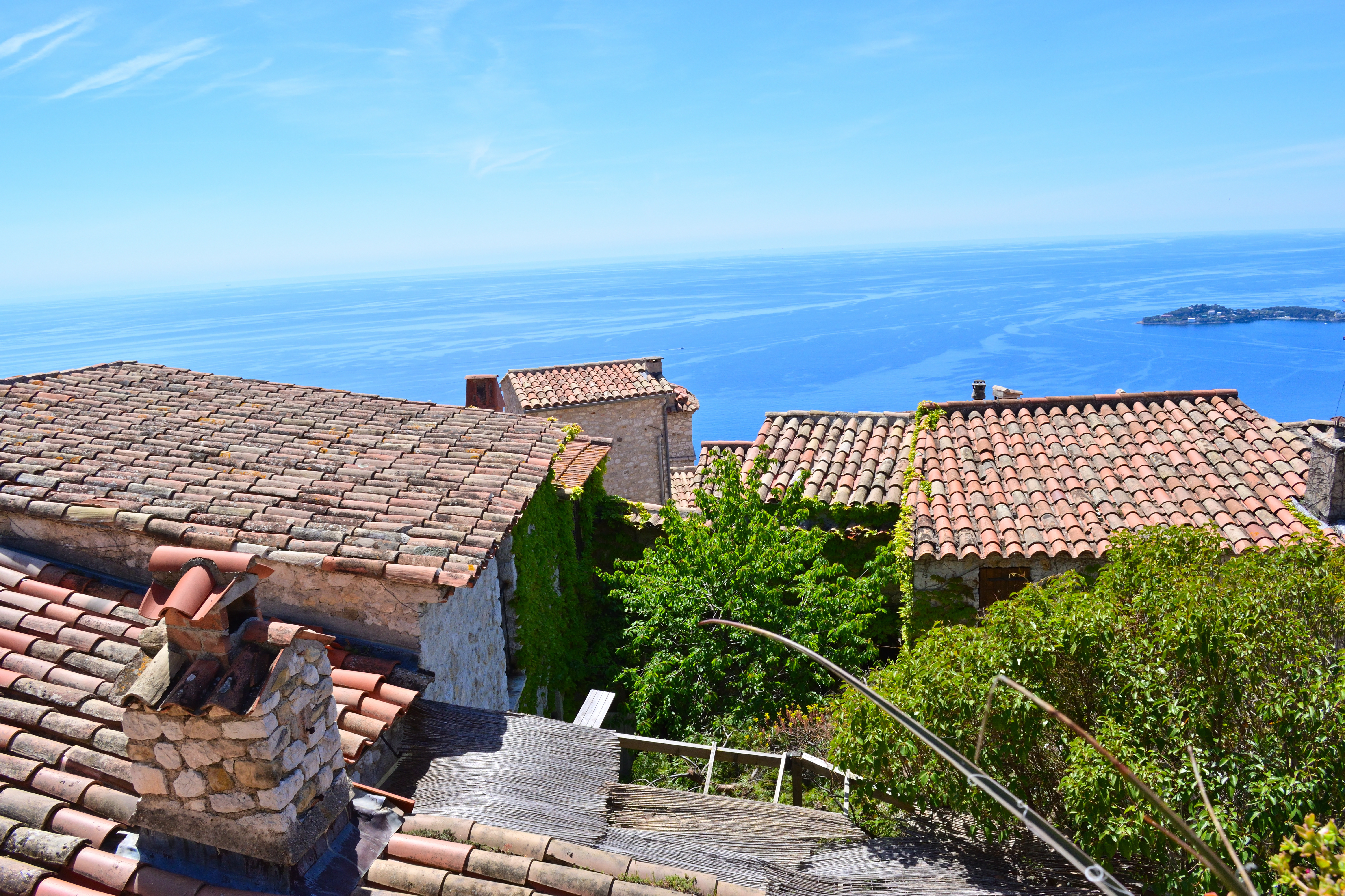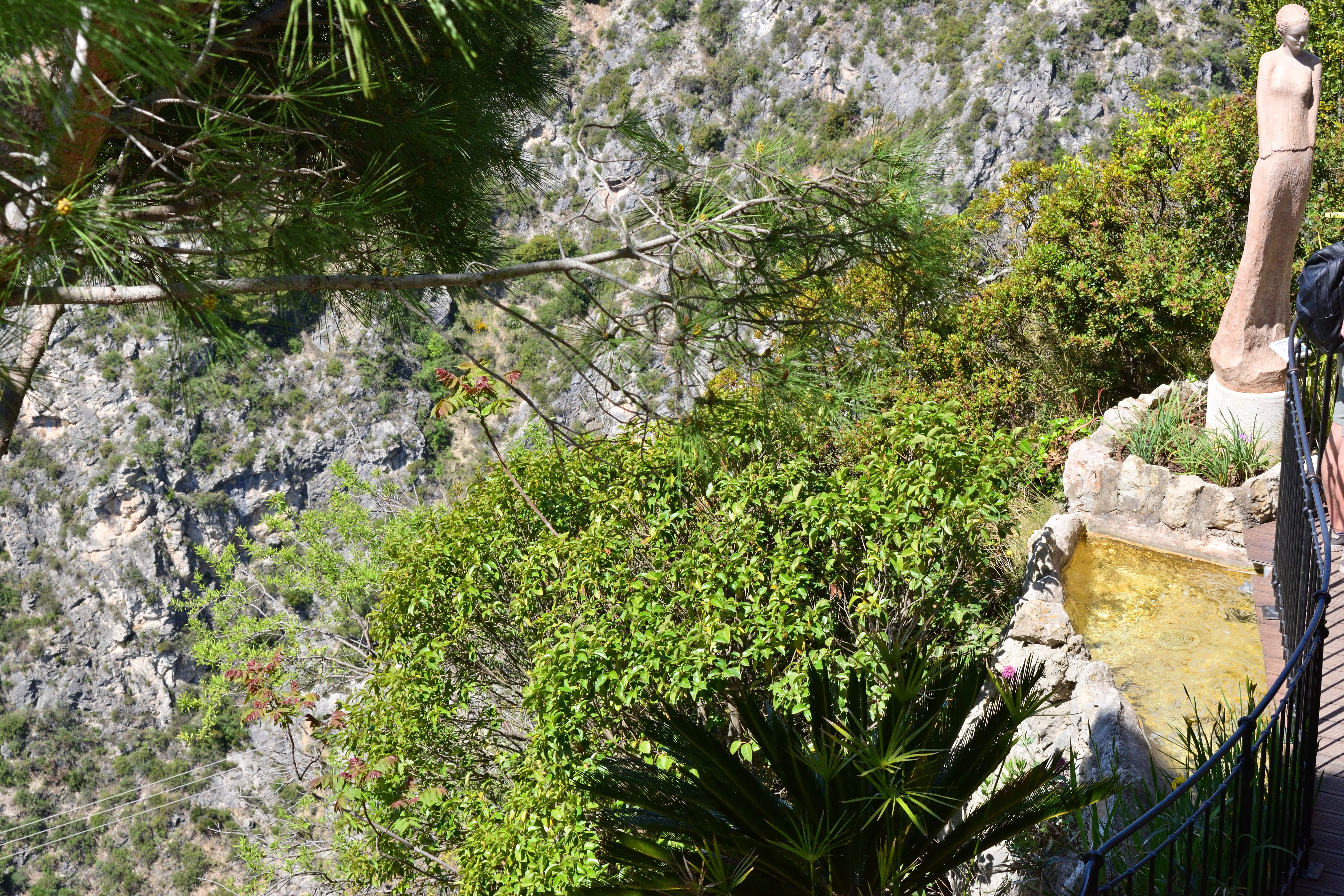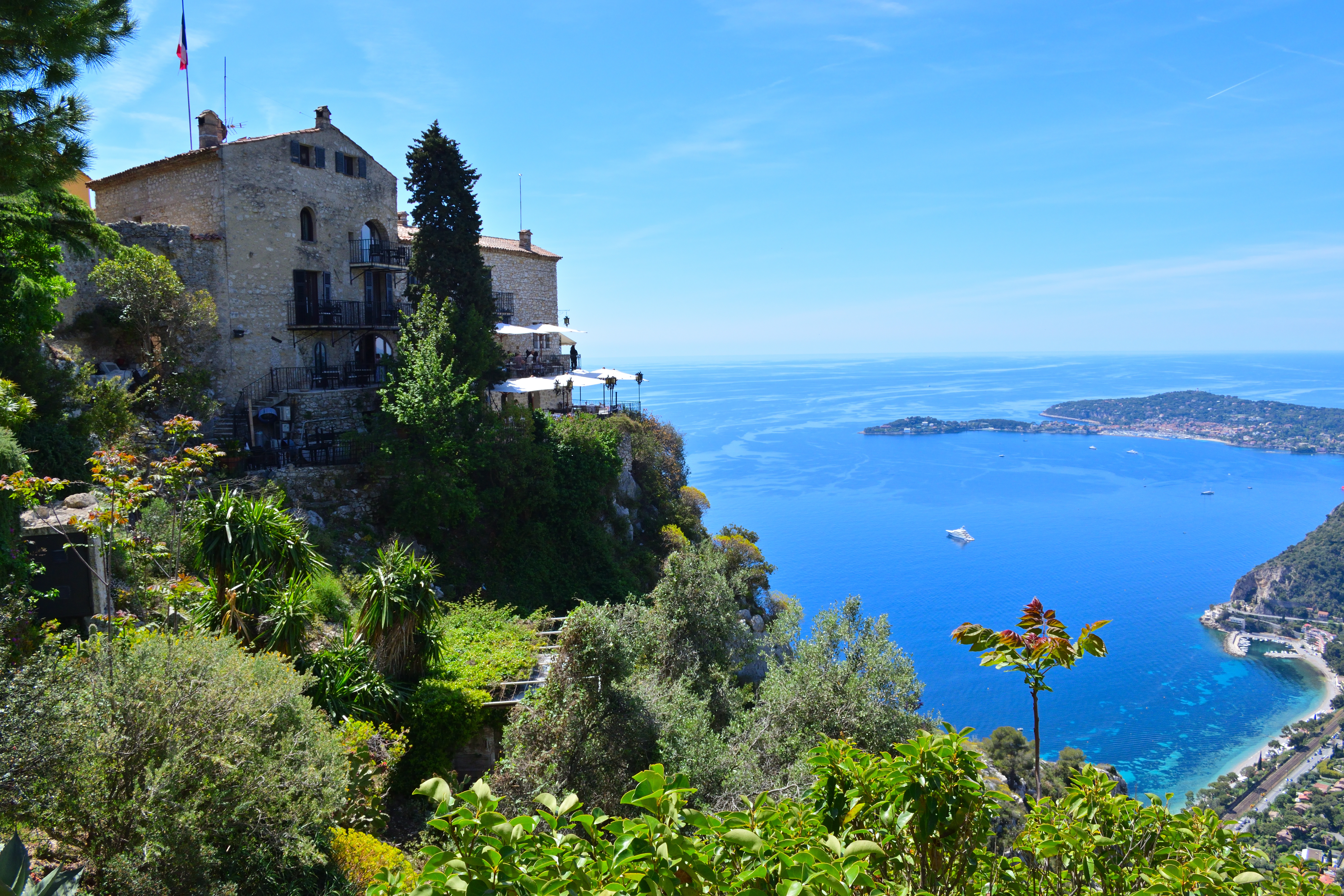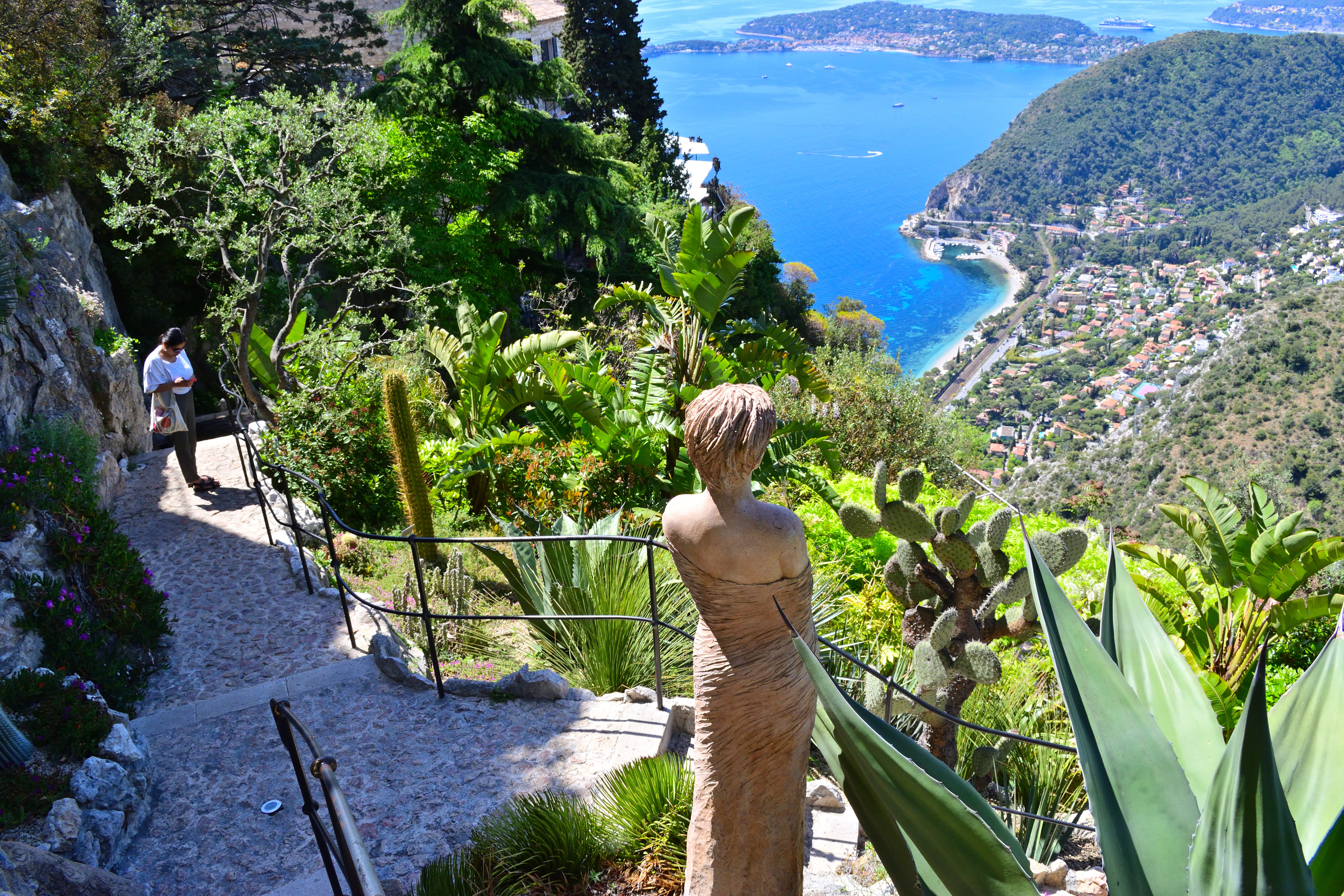 目の前に見えている白いテラスがあるところがシャトー・エザだ。 頂上から見た時よりもずっと近くに見えた。